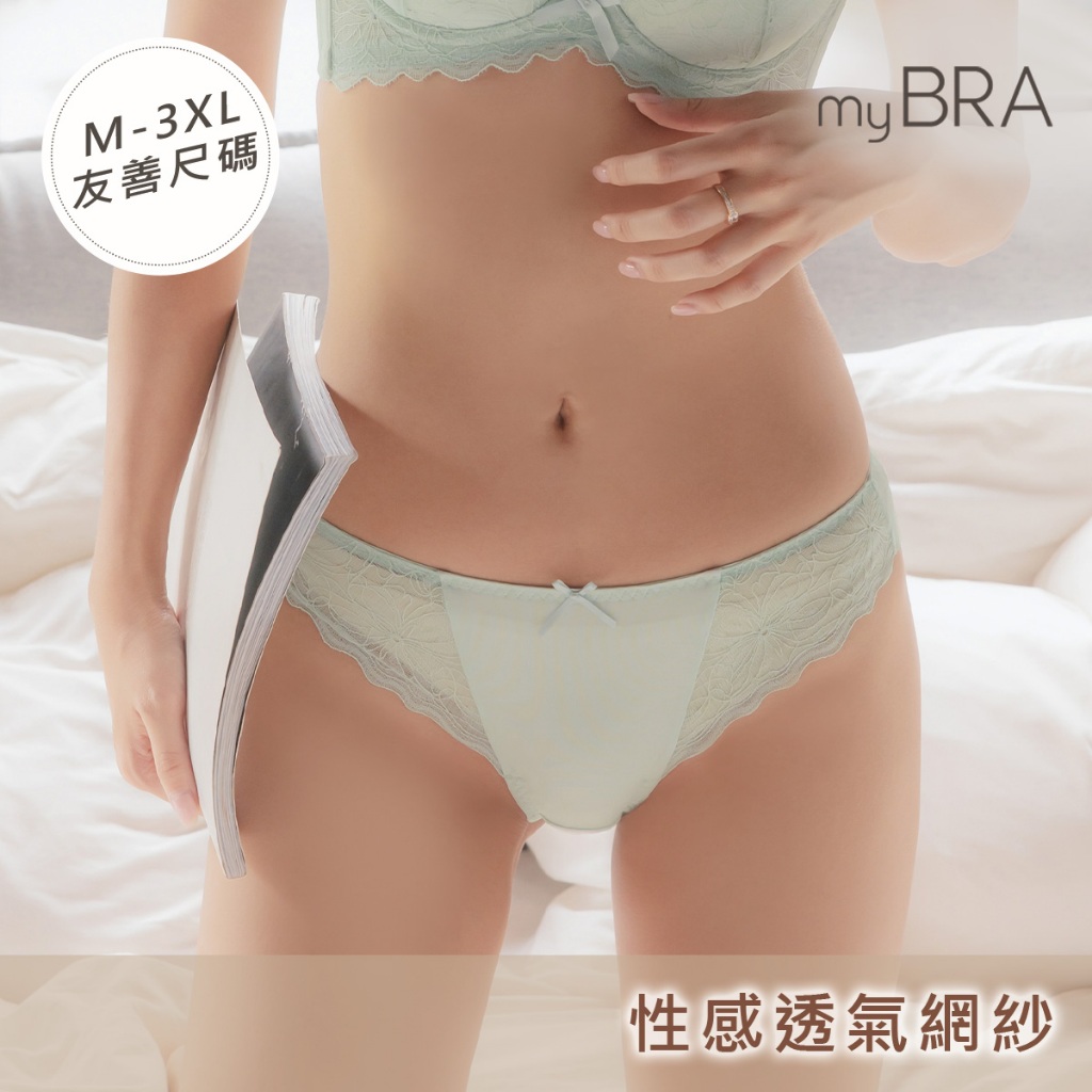 • 【myBRA】QQ美波-輕甜款 M-3XL 性感透氣網紗三角褲 藍/膚/綠/黑/白/粉 女蕾絲內褲 舒適大尺碼 熱銷推薦