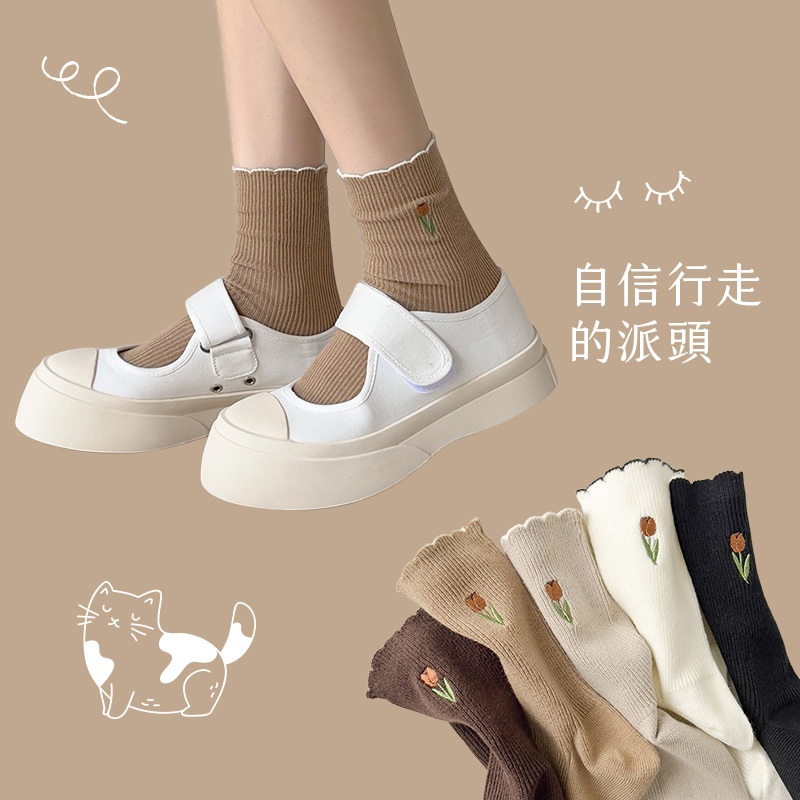 • 花邊氣質長襪【台灣現貨】D656中筒襪 輕薄透氣 長襪 堆堆襪 學生襪 休閒襪 彈性襪 少女襪