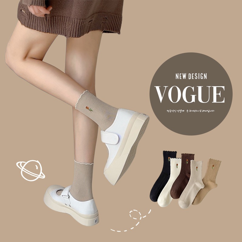 花邊氣質長襪【台灣現貨】D656中筒襪 輕薄透氣 長襪 堆堆襪 學生襪 休閒襪 彈性襪 少女襪