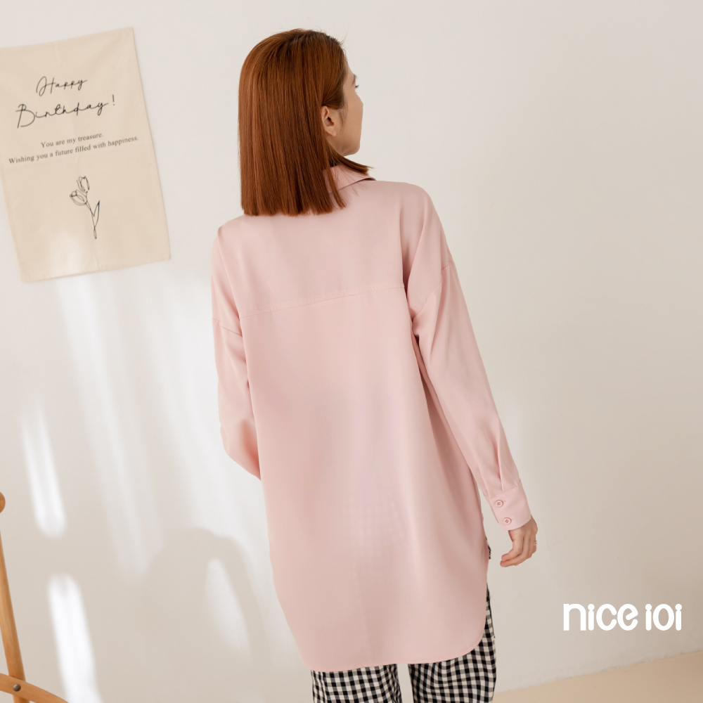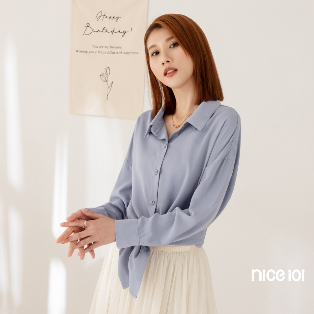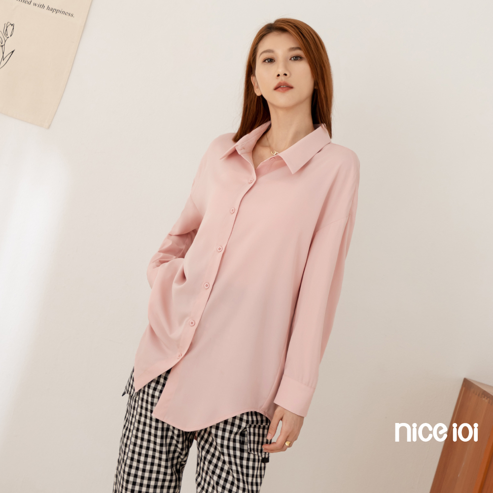 niceioi【特惠】落肩襯衫 長袖 翻領上衣 藍色 [莫蘭迪色前短後長落肩襯衫] 女裝落肩襯衫-藍,F|落肩襯衫-粉,FShirts & Blousesniceioi 官方旗艦店