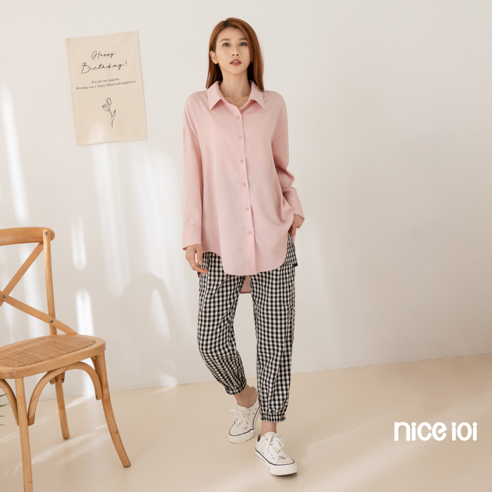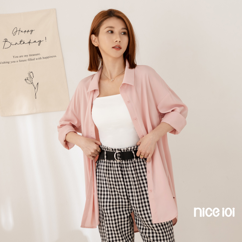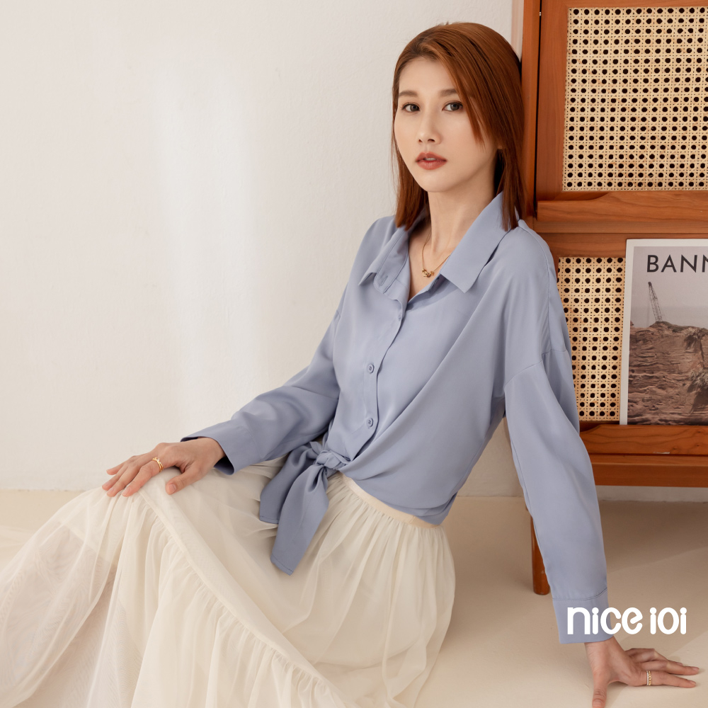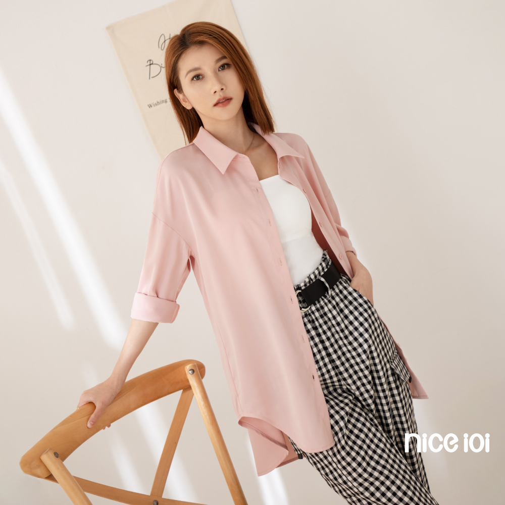 niceioi【特惠】落肩襯衫 長袖 翻領上衣 藍色 [莫蘭迪色前短後長落肩襯衫] 女裝落肩襯衫-藍,F|落肩襯衫-粉,FShirts & Blousesniceioi 官方旗艦店