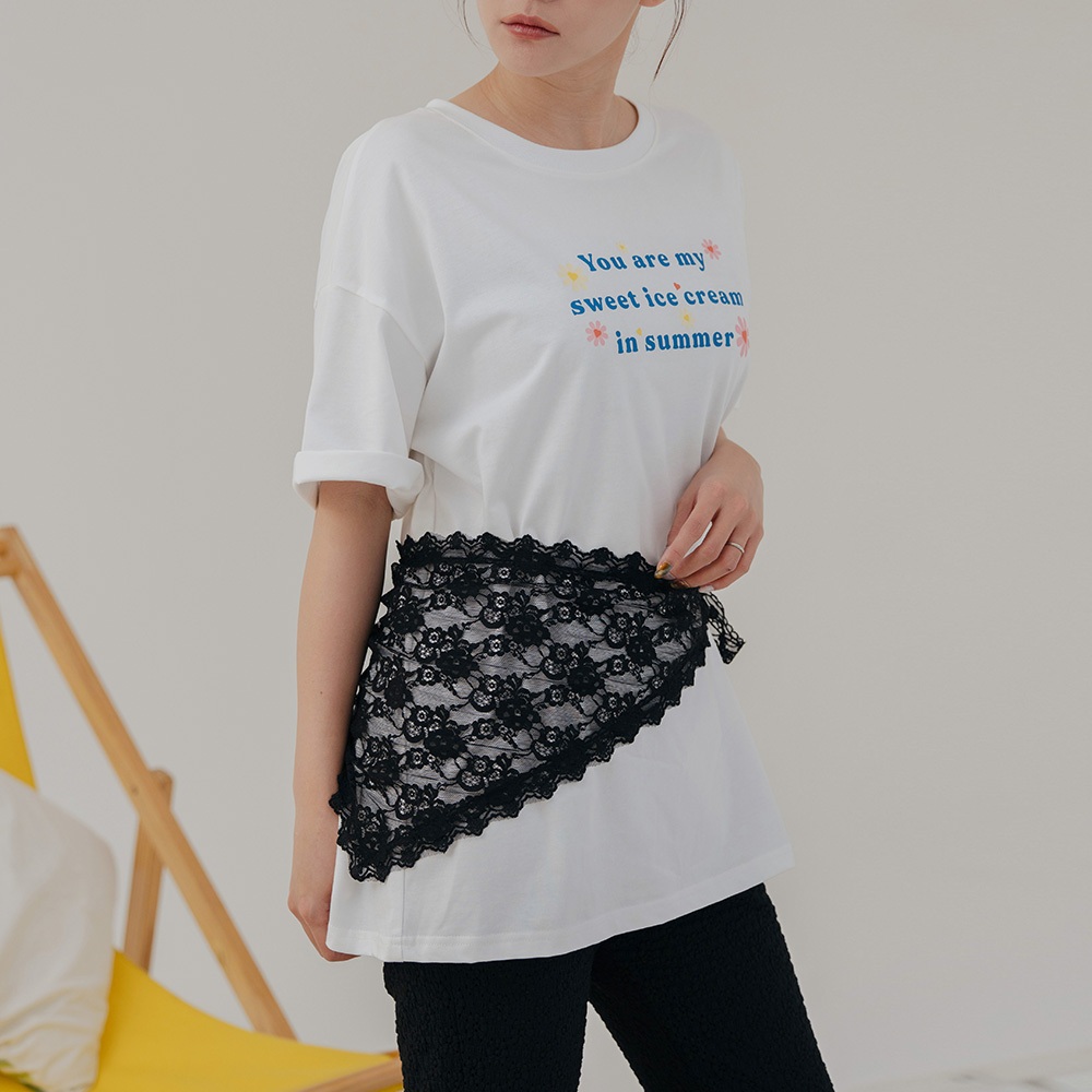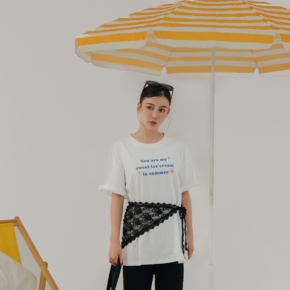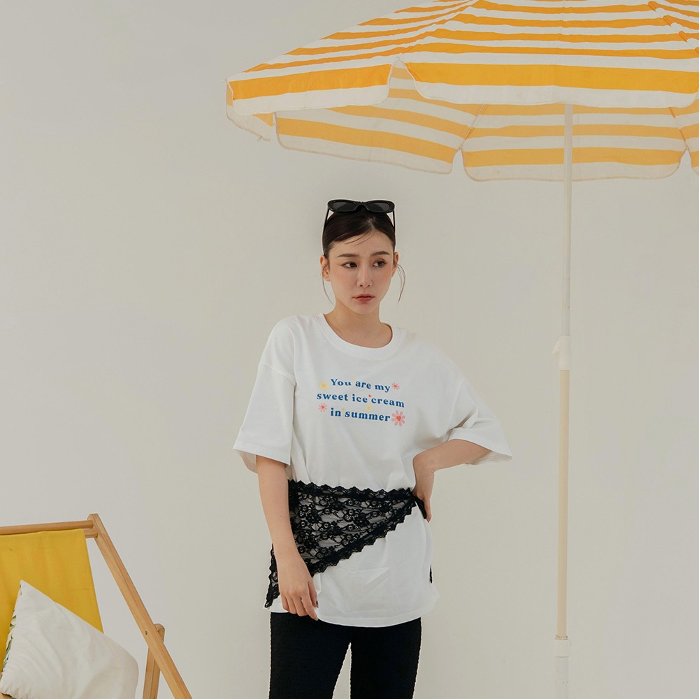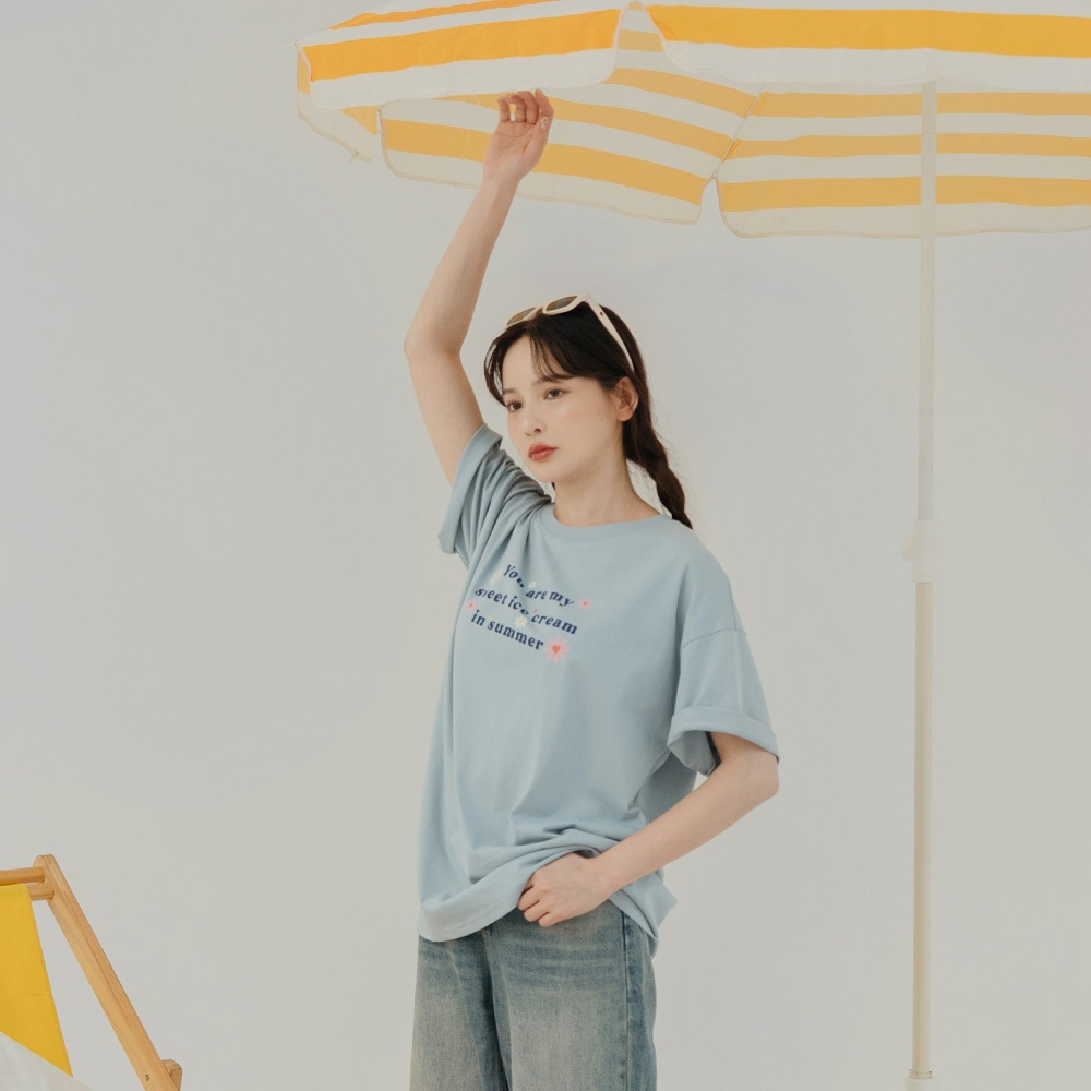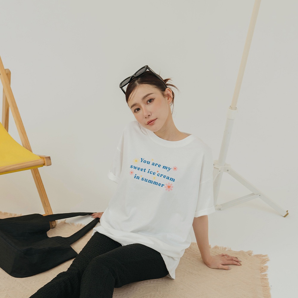 QUEENSHOP_ S 女裝 短袖 涼感小花印字寬版上衣 兩色售 現+預 【01190235】白|藍T-shirtsQUEENSHOP