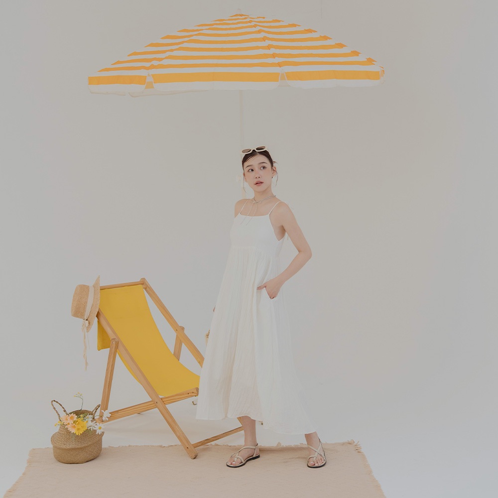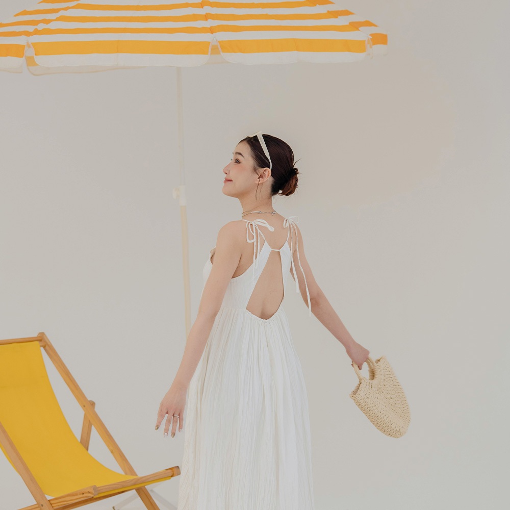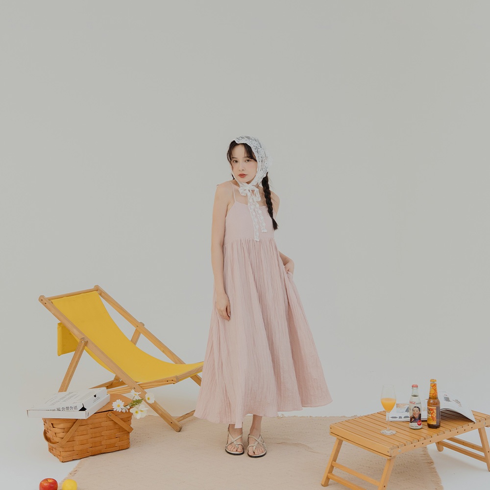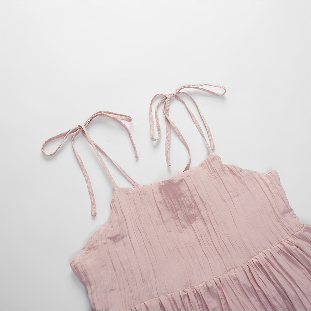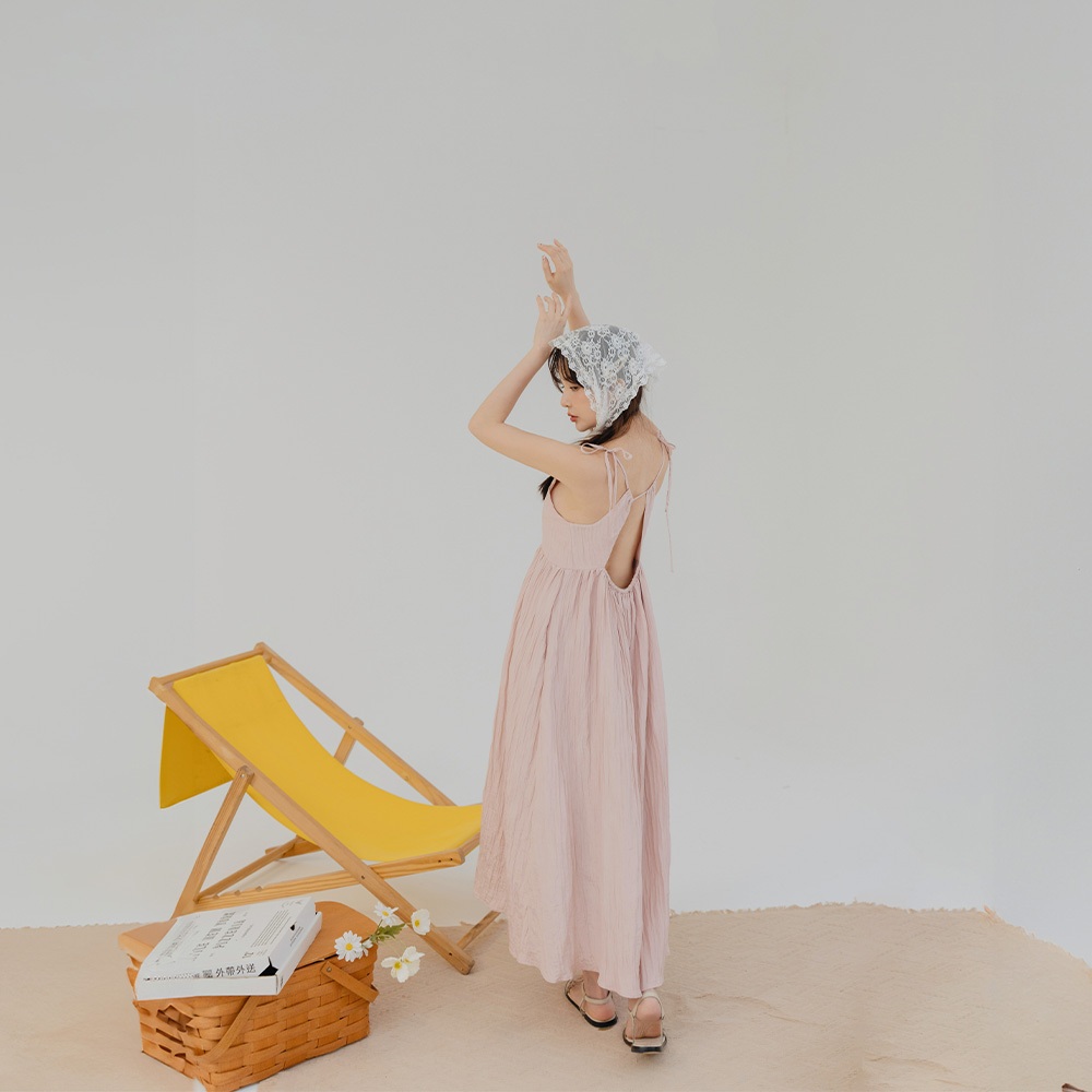 QUEENSHOP_ S 女裝 後鏤空綁帶光澤皺皺細肩長洋裝 三色售 現+預 【01086978】粉|杏|黑QUEENSHOP