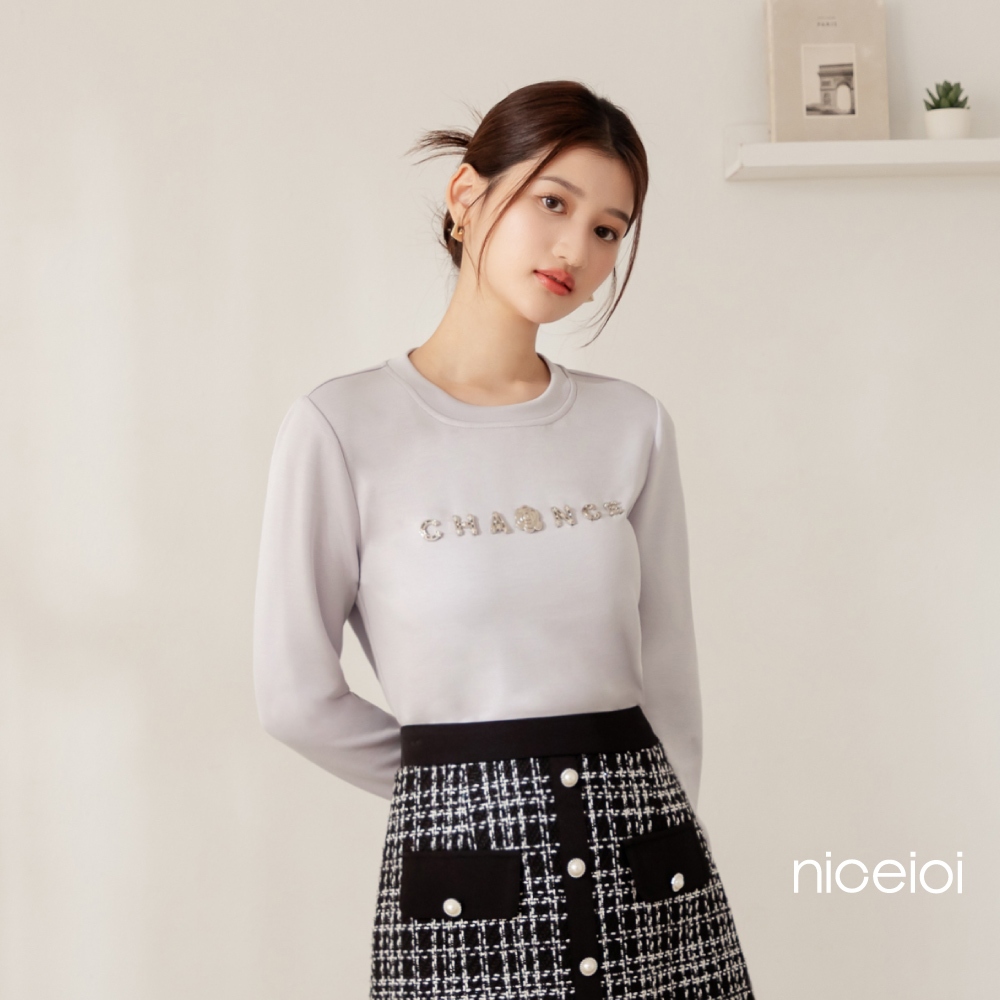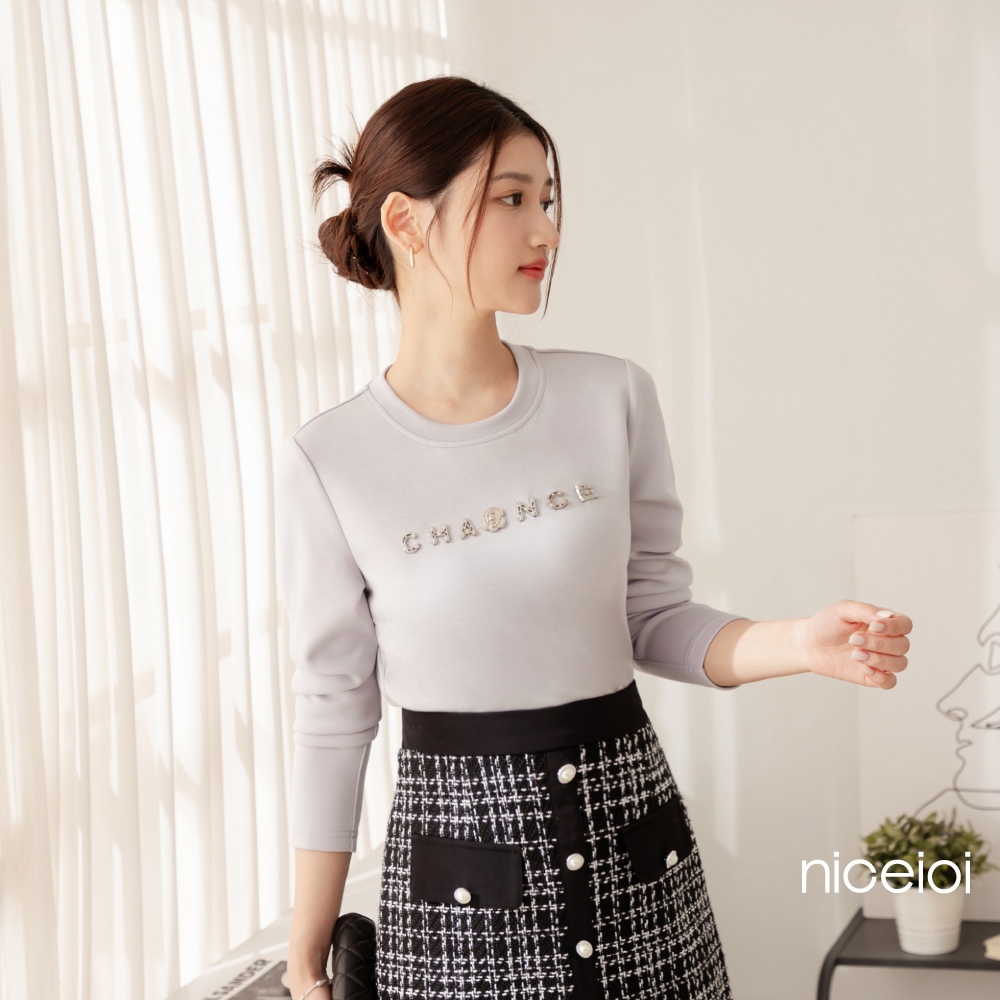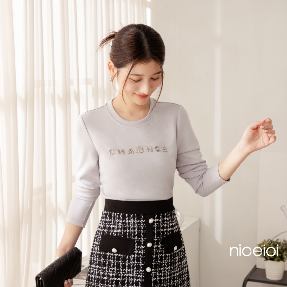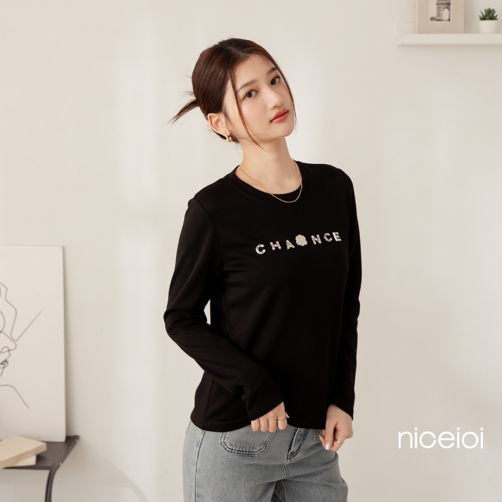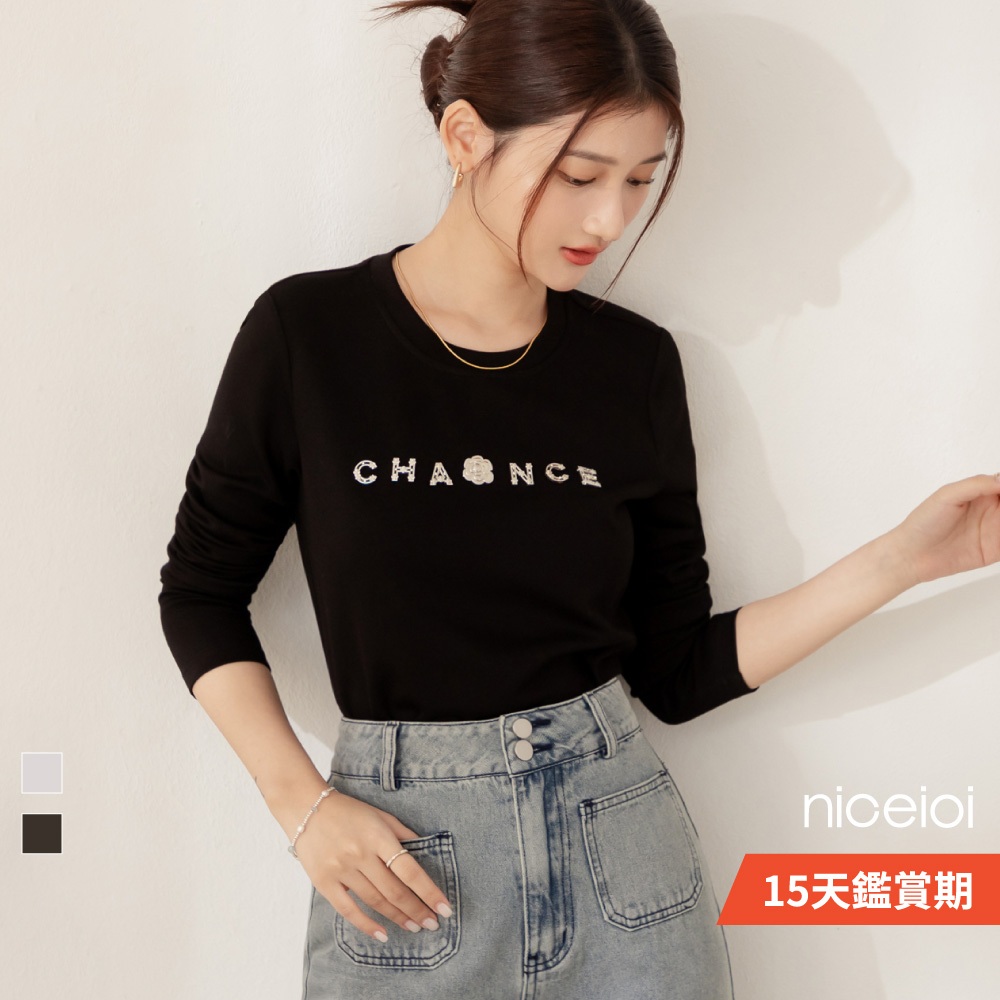 niceioi【特惠】小香風山茶花立體字母空氣棉上衣 (共2色) 女裝藍紫,S|藍紫,M|藍紫,L|藍紫,XL|黑,S|黑,M|黑,L|黑,XLT-shirtsniceioi 官方旗艦店