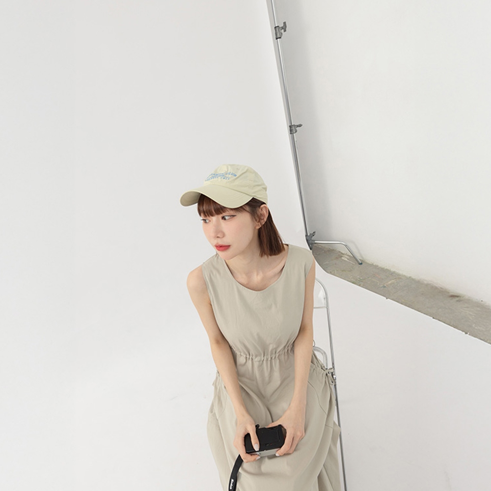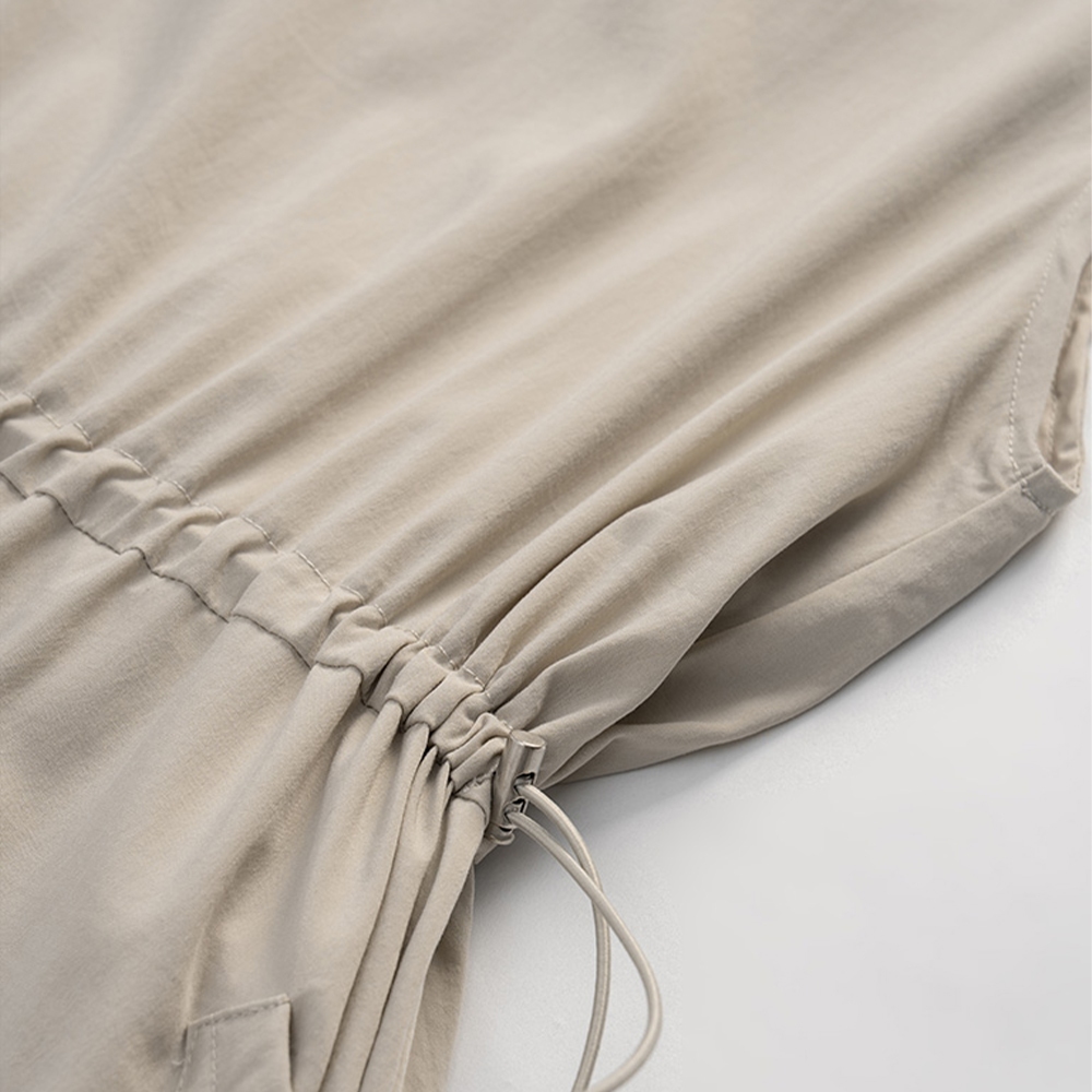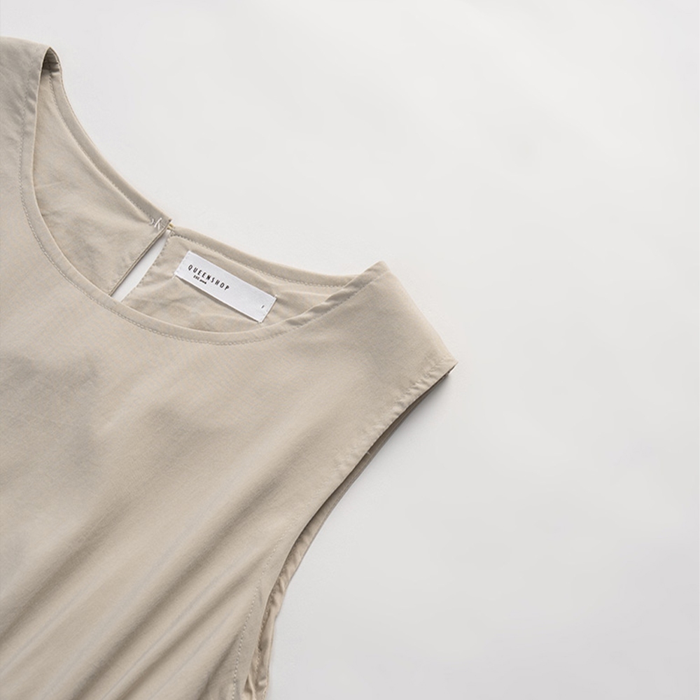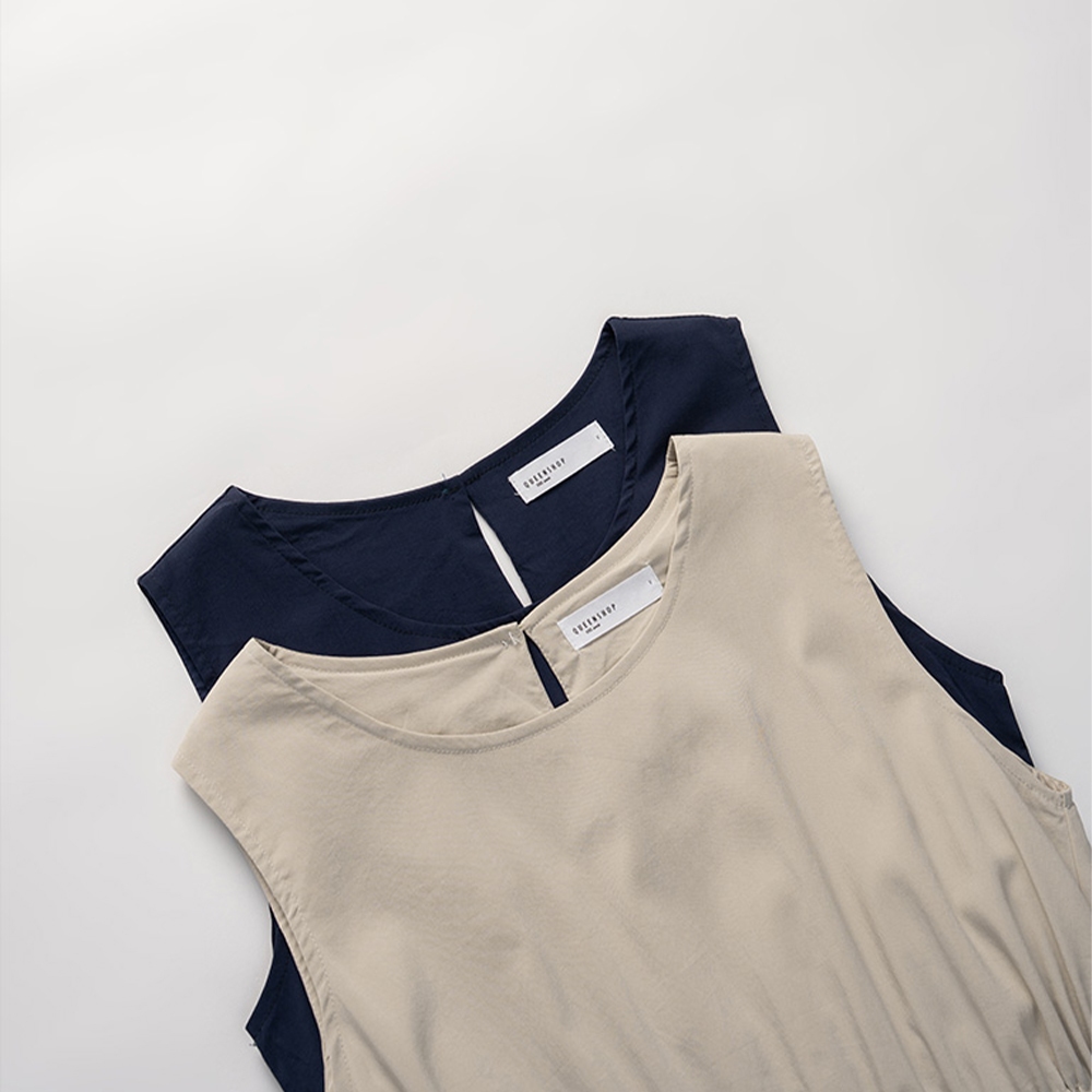 QUEENSHOP_ S 女裝 涼感抽繩大口袋無袖長洋裝 兩色售 現+預 【01087094】深藍|卡其QUEENSHOP