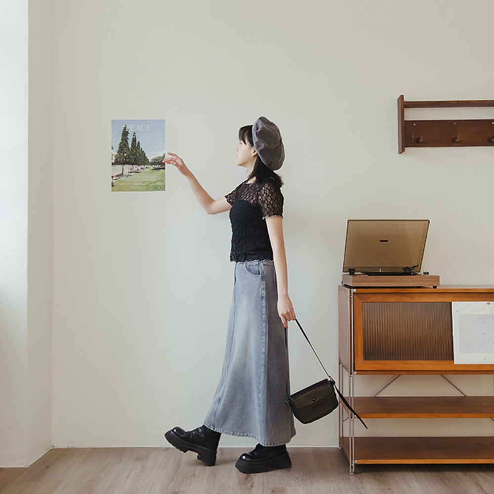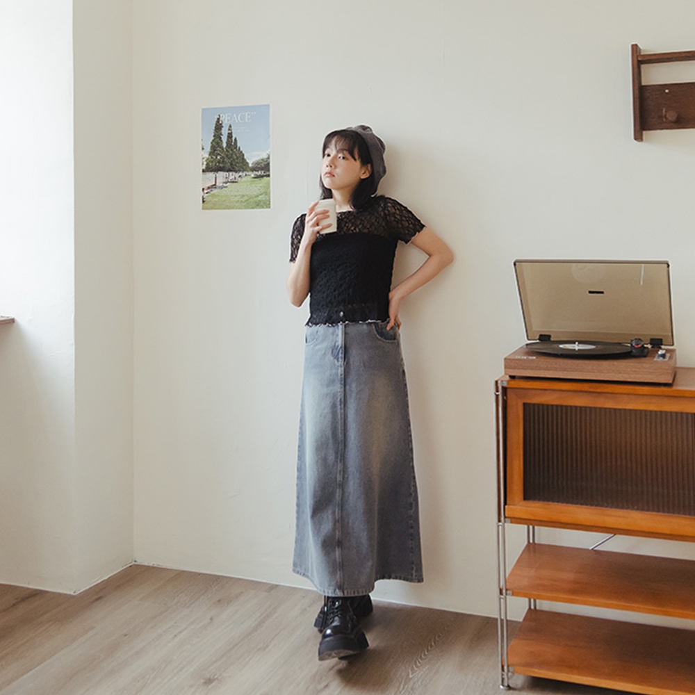 QUEENSHOP_ S 女裝 復古刷色A字牛仔長裙 S/M 現+預 【03021597】S|MQUEENSHOP