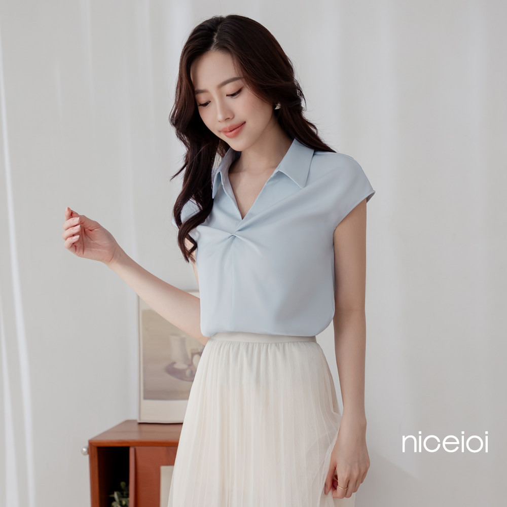 niceioi 霧光柔美微蓋袖扭結襯衫上衣 (共2色) 女裝白,M|藍,S|藍,M|藍,L|藍,XL|白,S|白,XL|白,LShirts & Blousesniceioi 官方旗艦店