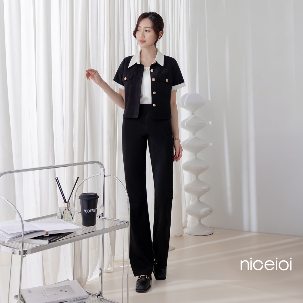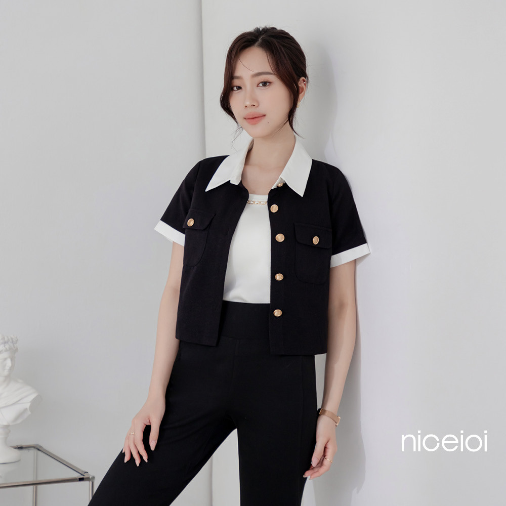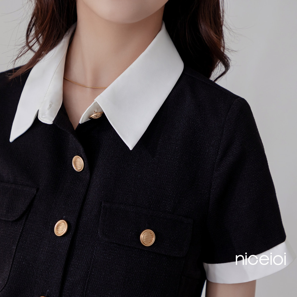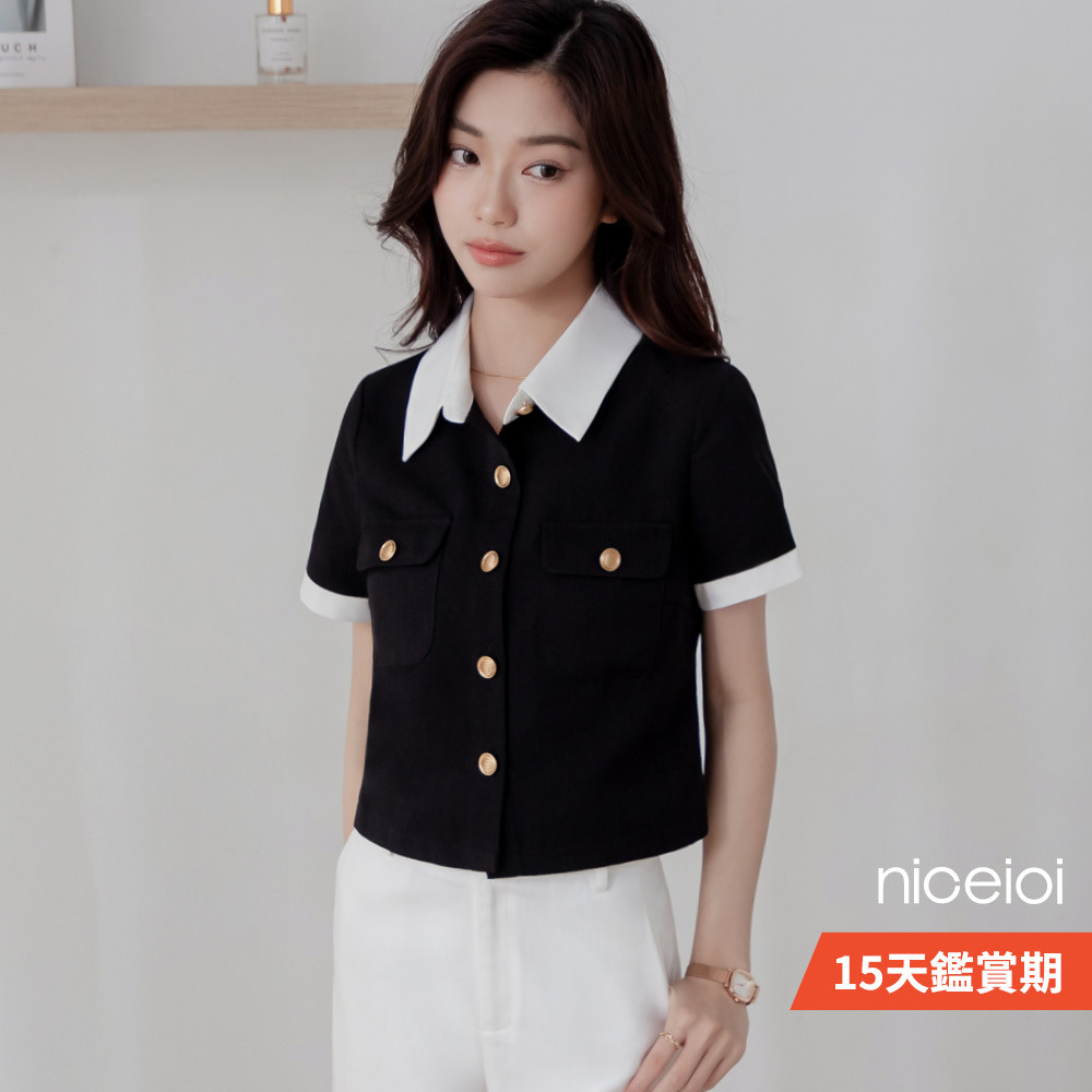 niceioi 富家千金小香風撞色翻領上衣 女裝黑,S|黑,M|黑,L|黑,XLOthersniceioi 官方旗艦店