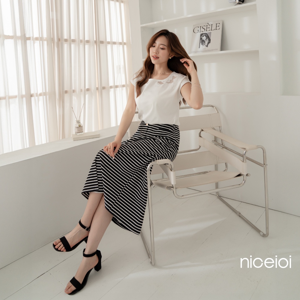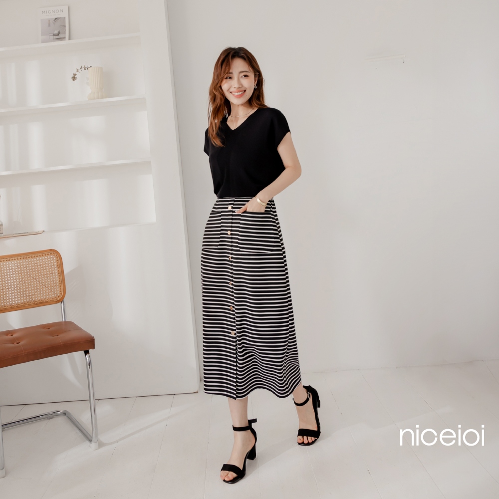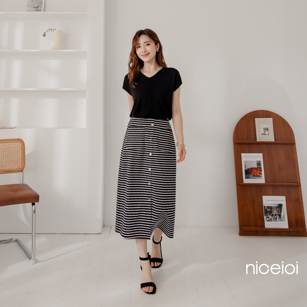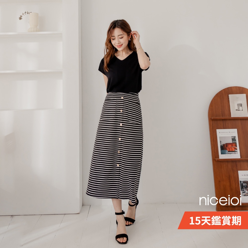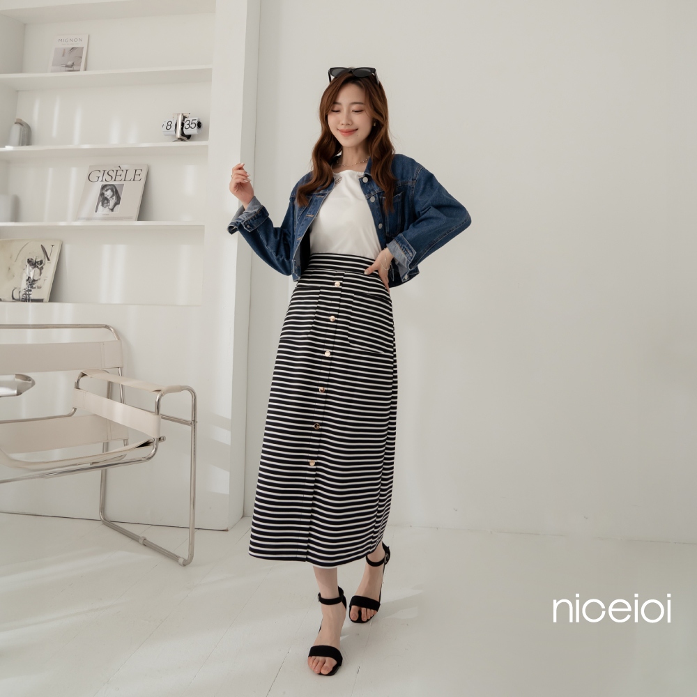 niceioi【特惠】優雅金釦條紋前開衩長裙 女裝黑,S|黑,M|黑,L|黑,XL|黑,XXLniceioi 官方旗艦店