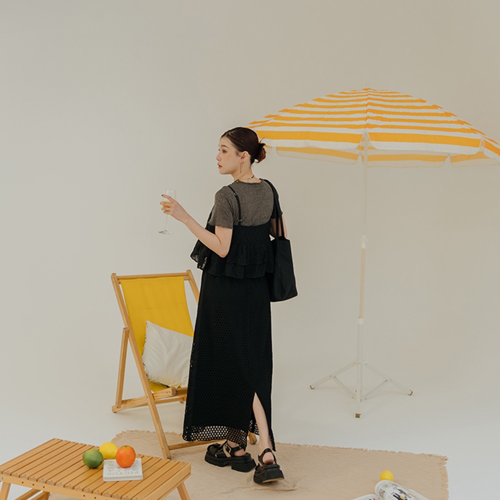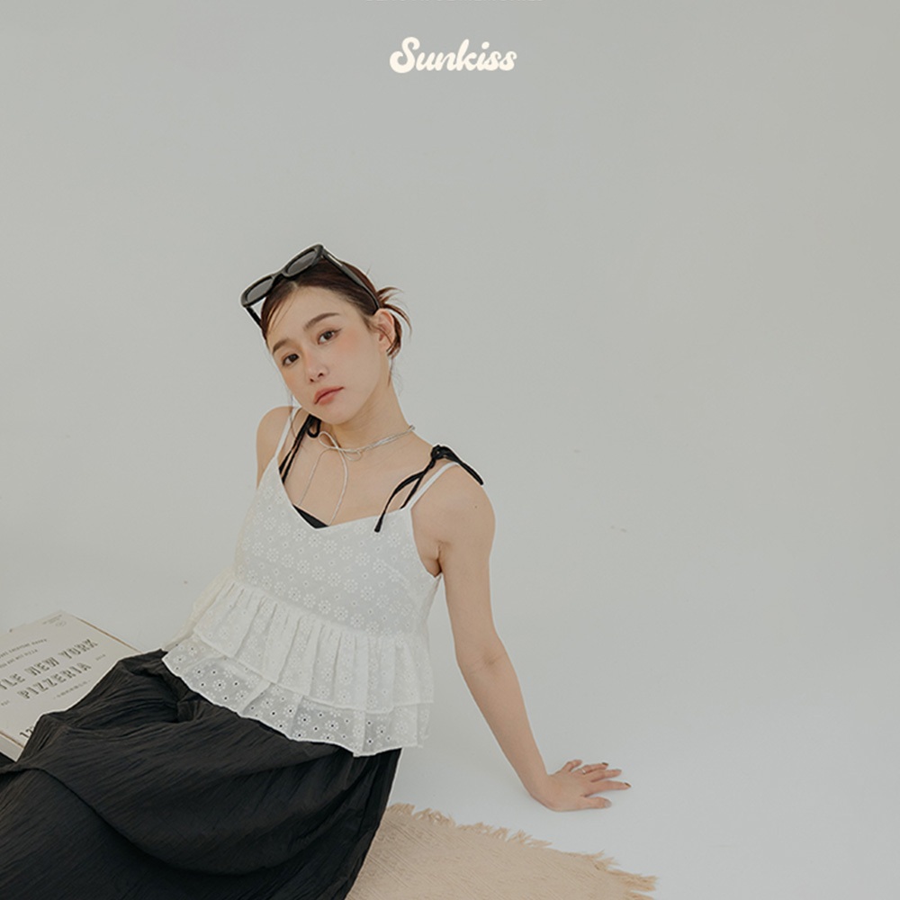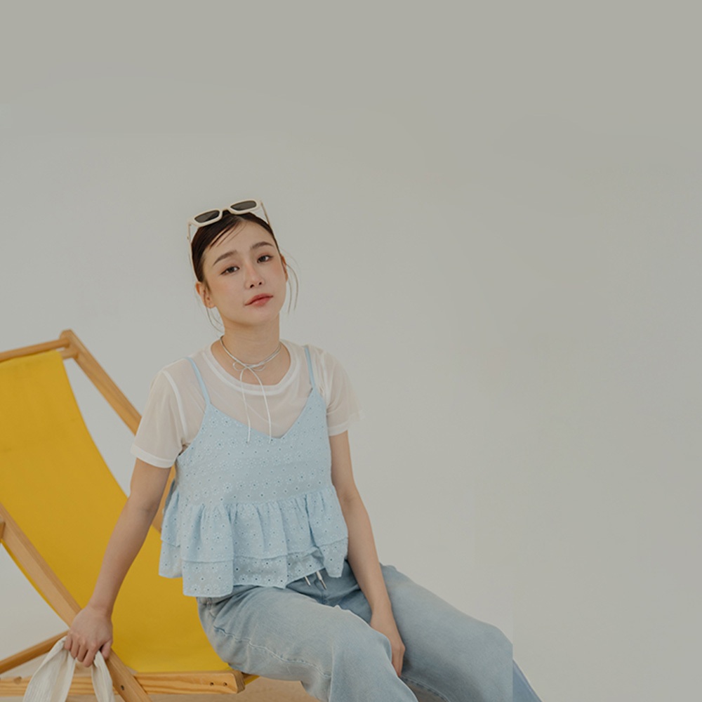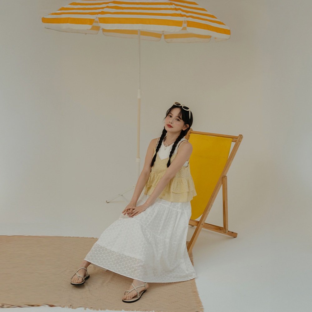 QUEENSHOP_ S 女裝 鏤空滿版花細肩傘擺背心 四色售 現+預 【01099077】黑|白|藍|黃Tanks & CamisolesQUEENSHOP