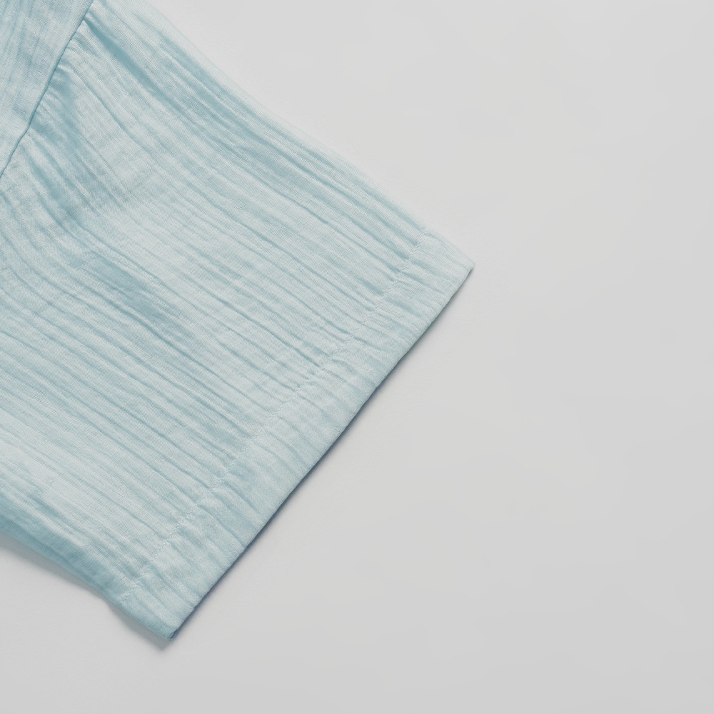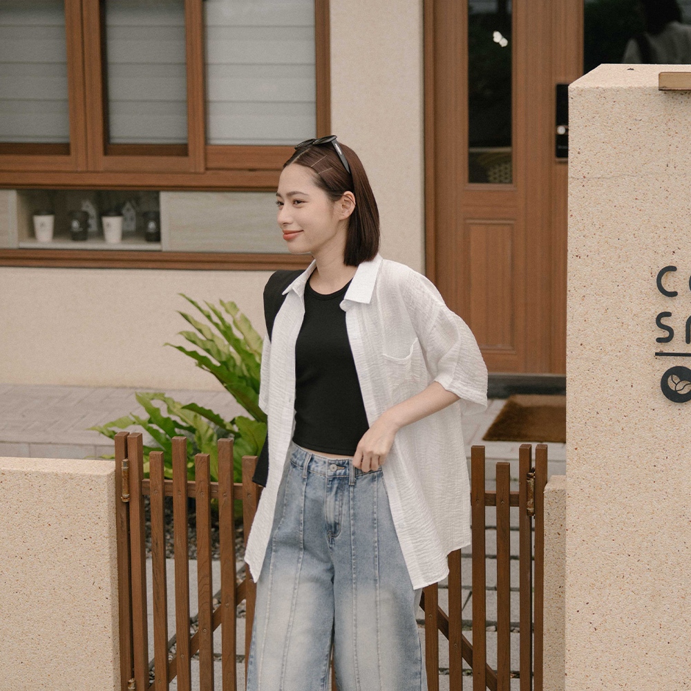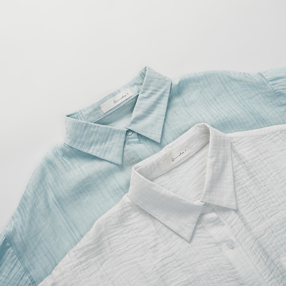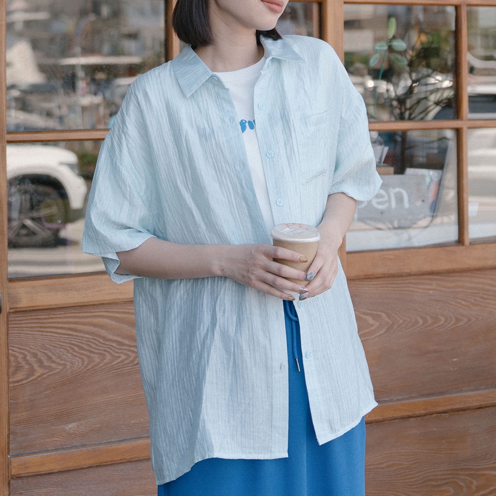 QUEENSHOP_ S 女裝 微透膚皺皺紋理短袖襯衫 兩色售 現+預 【01025602】白|藍Shirts & BlousesQUEENSHOP