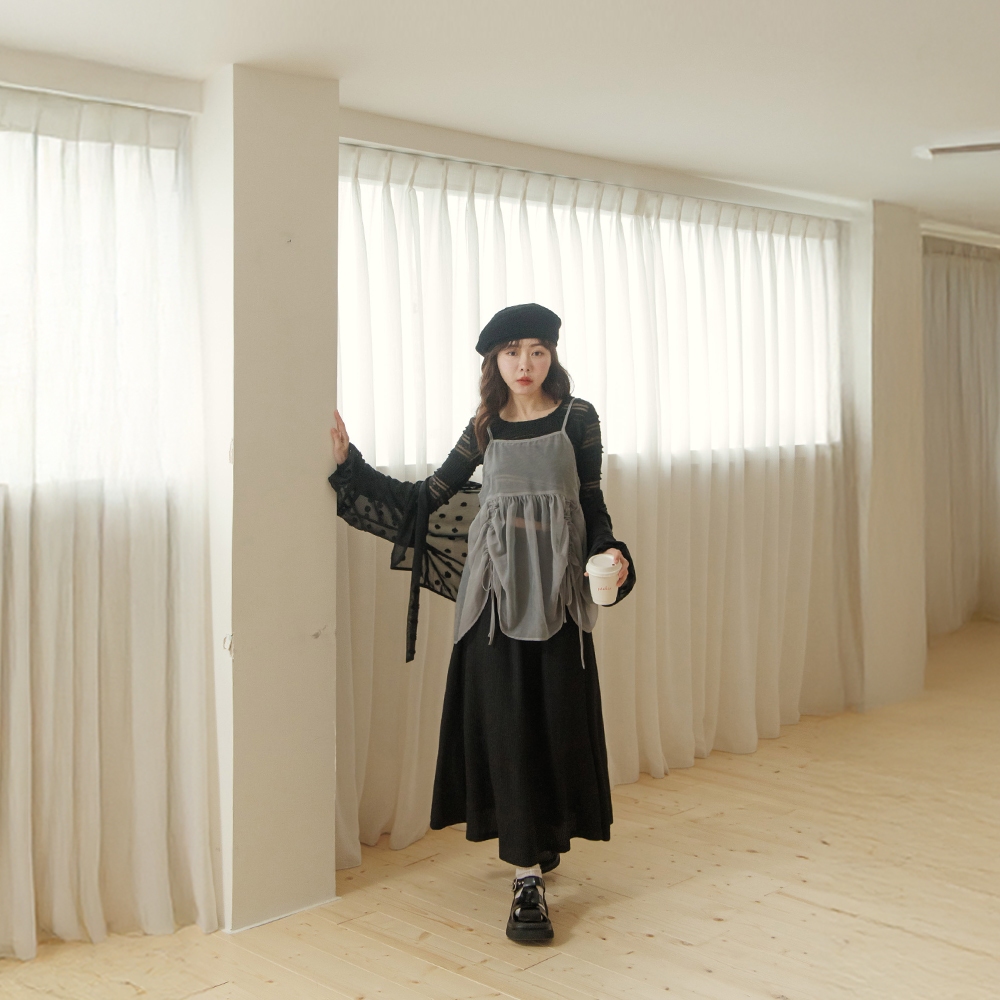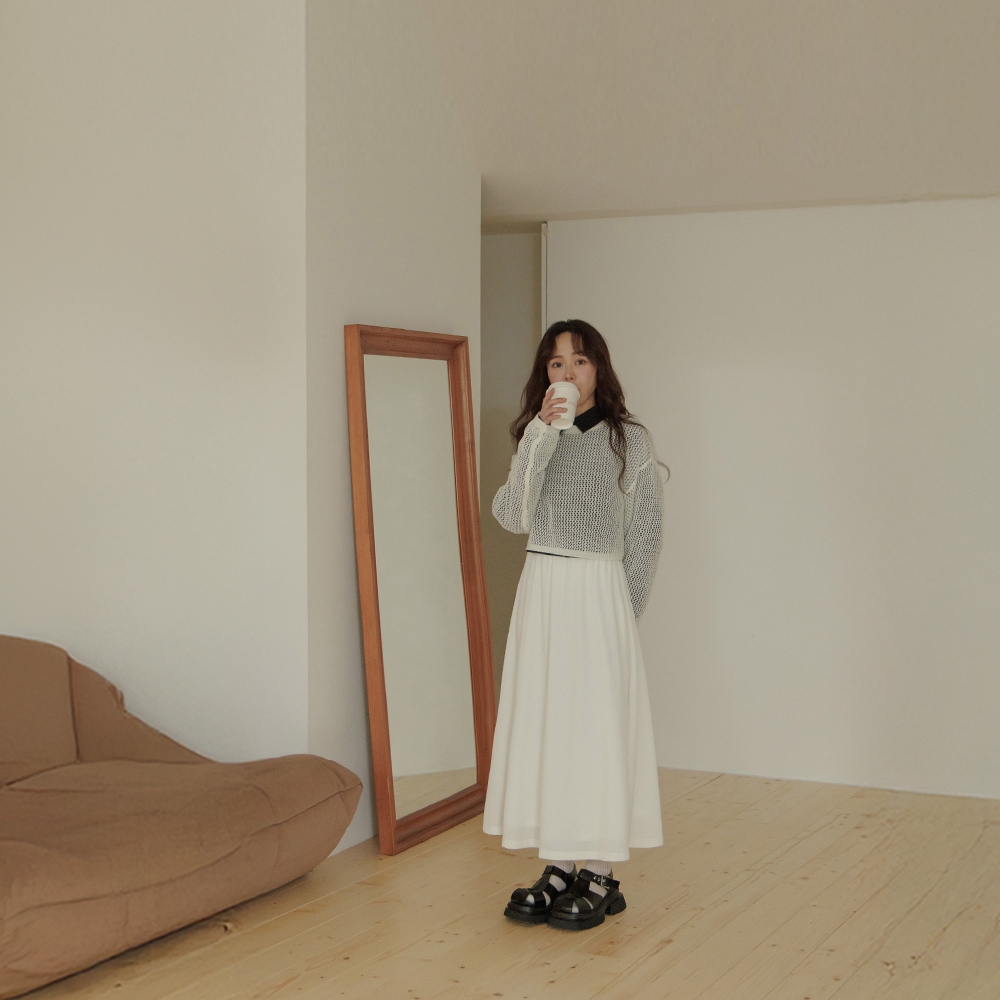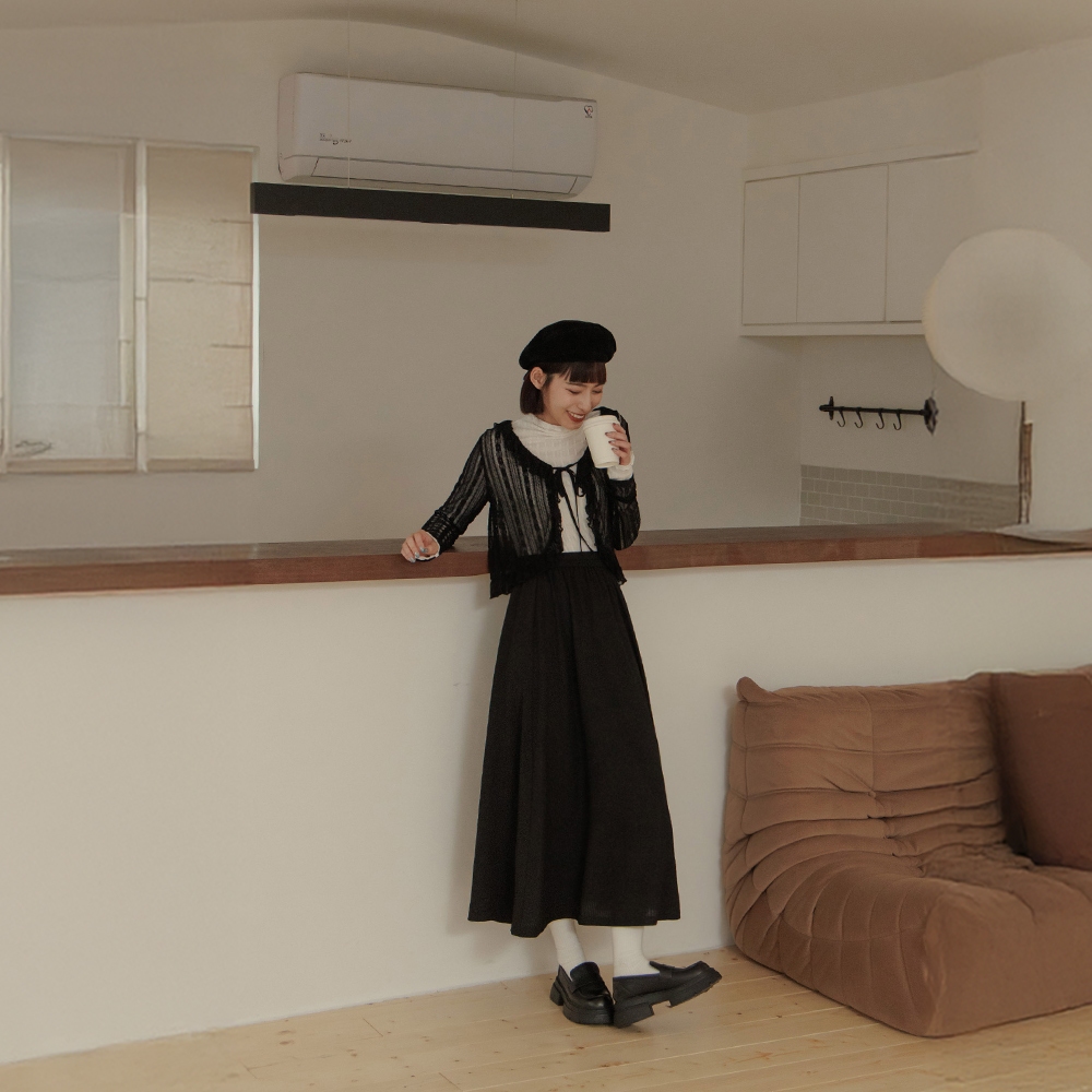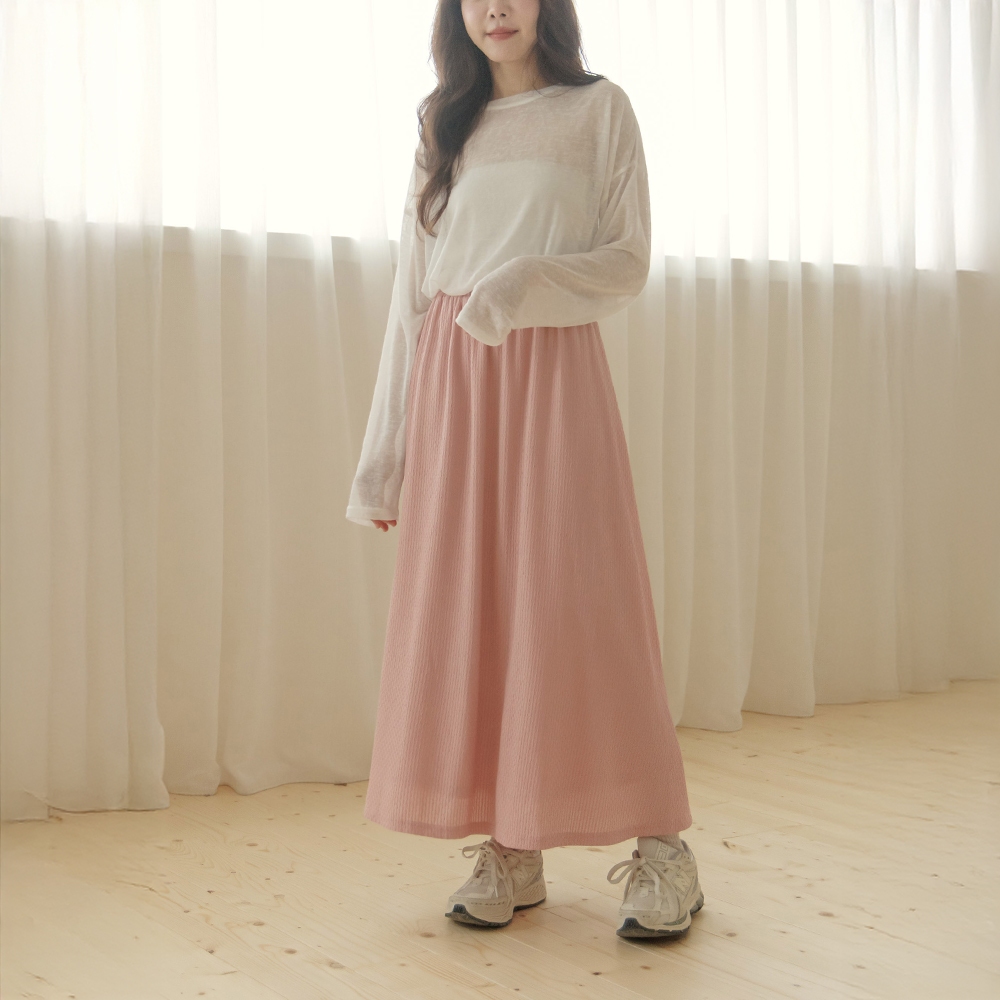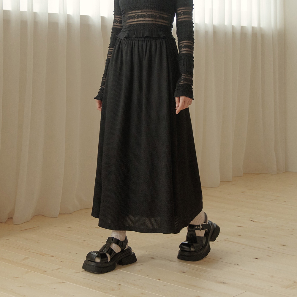 QUEENSHOP_ S 女裝 立體波浪紋理傘襬長裙 三色售 現+預 【03021496】黑|粉|米白QUEENSHOP
