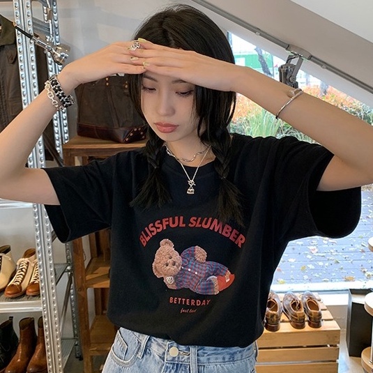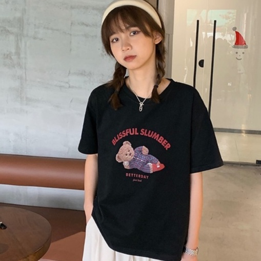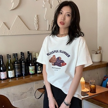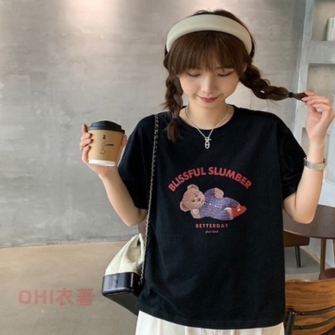【ohi】棉質短袖T恤 韓版上衣 女生衣著 卡通印花寬鬆顯瘦 圓領T恤 情侶裝 姐妹裝女短T短袖上衣(GTYK953)白色,S|白色,L|黑色,M|白色,M|白色,XL|白色,2XL|黑色,S|黑色,L|黑色,XL|黑色,2XLT-shirtsOHI衣著