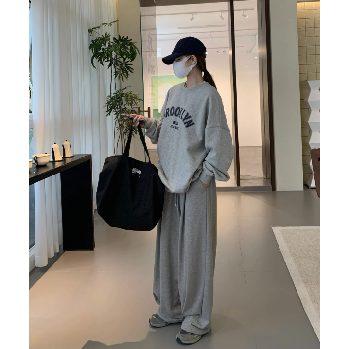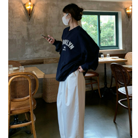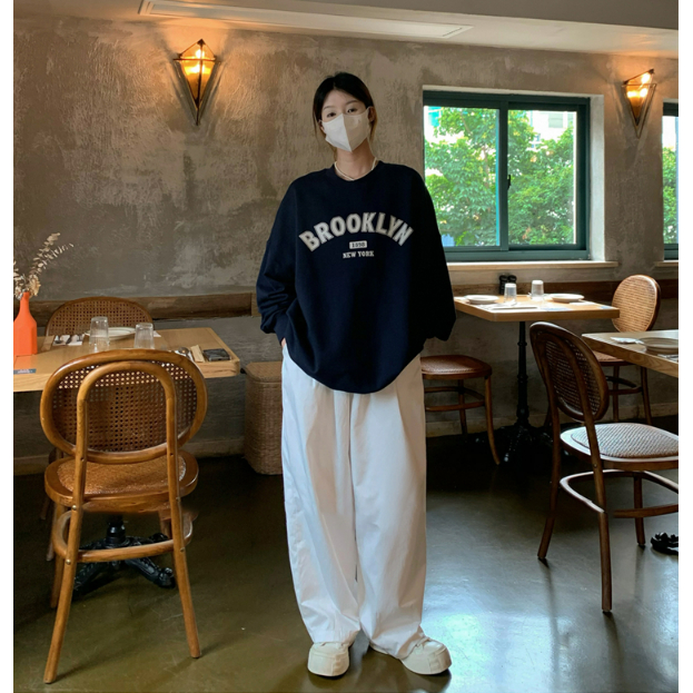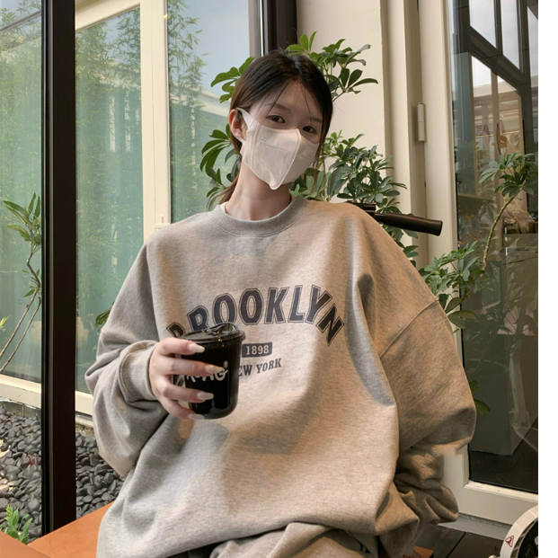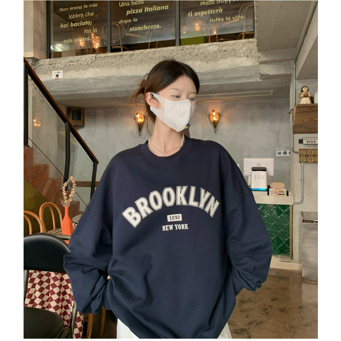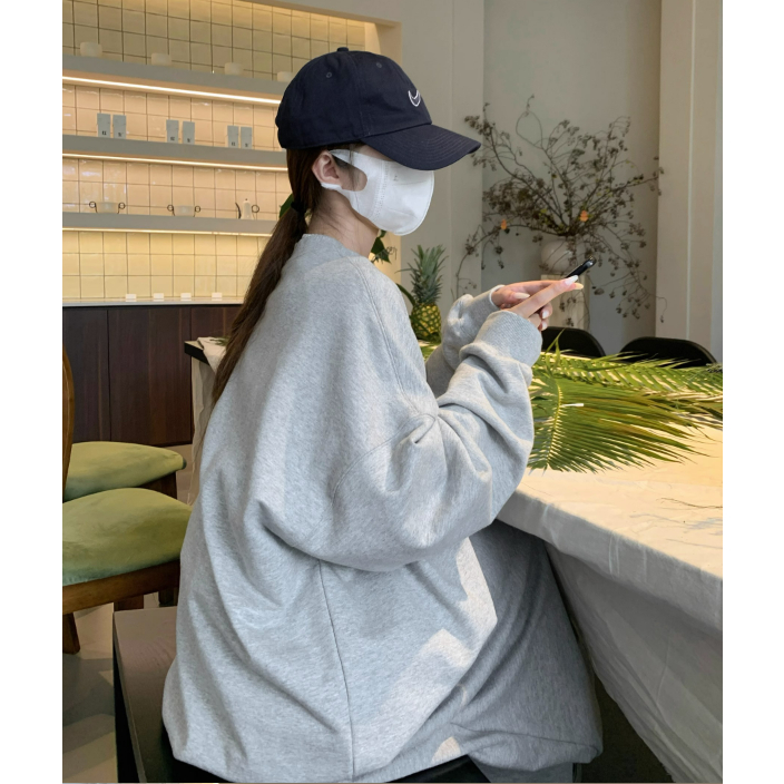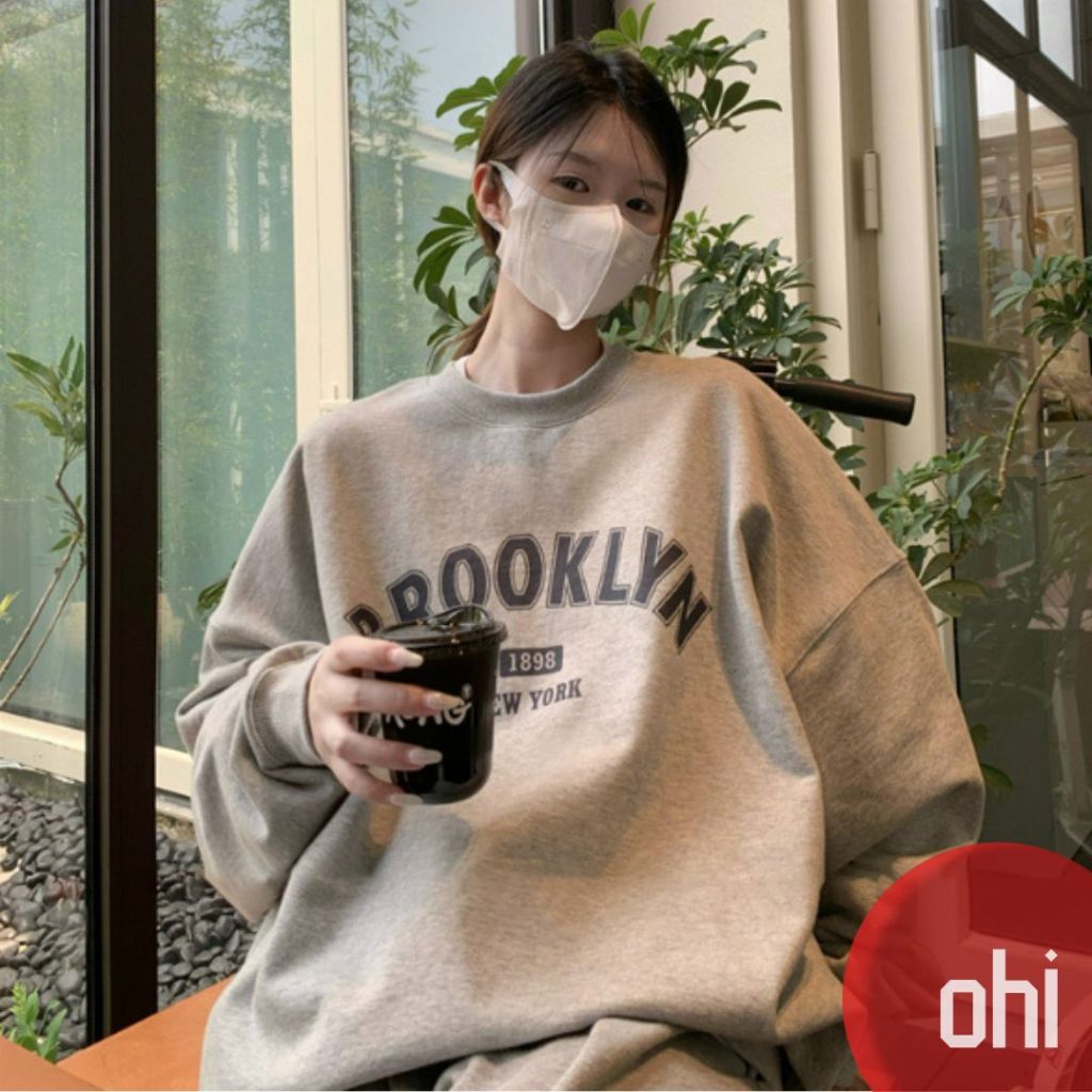 【ohi】2色可選字母印花長袖上衣 素色長袖大學T 長袖衛衣 圓領衛衣女t 女長t (GTD246)杏灰色,L|杏灰色,XL|杏灰色,2XL|藏青色,M|藏青色,L|藏青色,XL|藏青色,2XL|杏灰色,MSweatshirtsOHI衣著