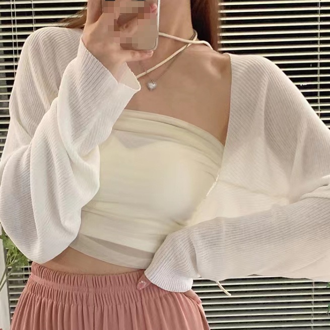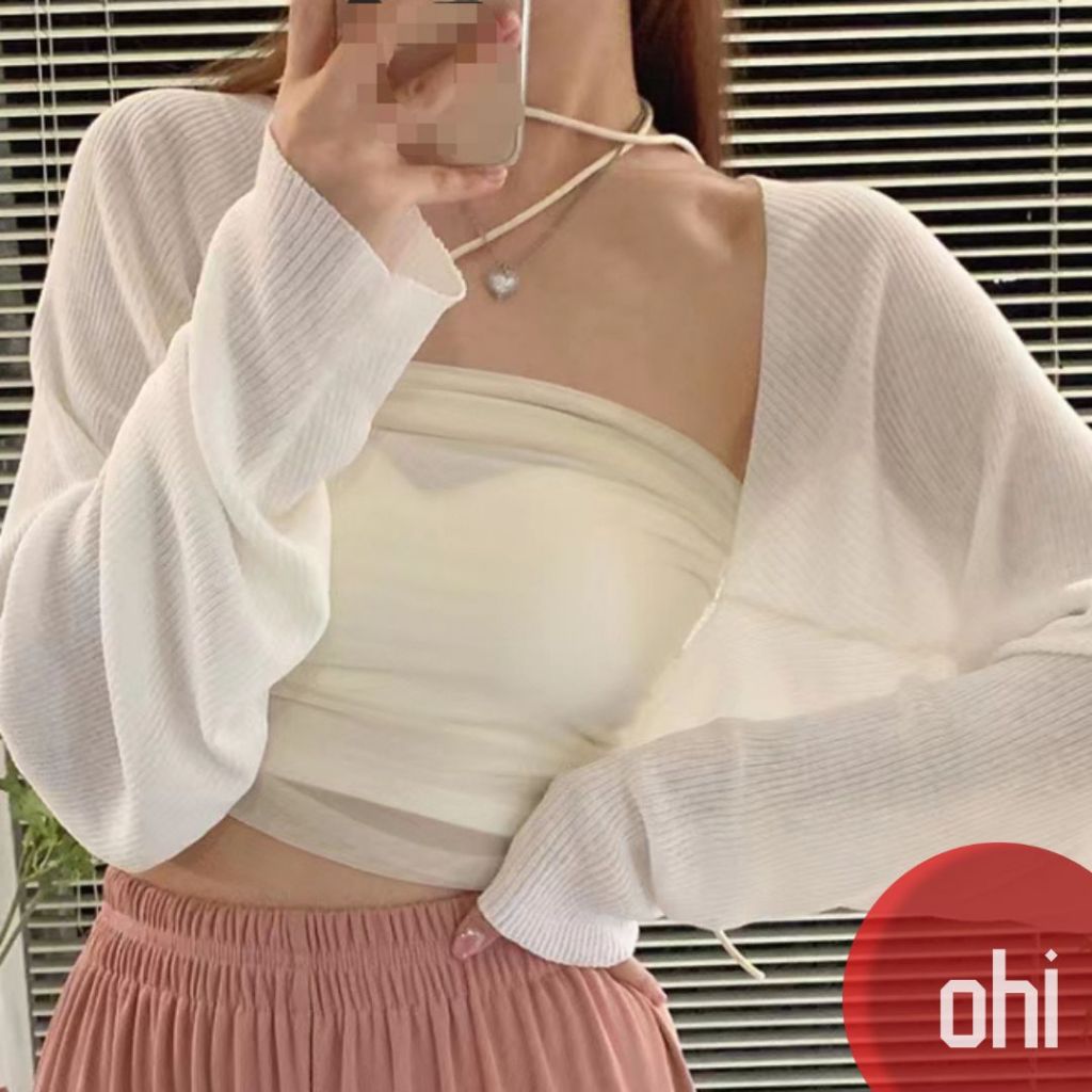 【ohi】必留春夏冰絲罩衫涼爽透氣薄款防曬罩衫披肩外搭冰絲短款上衣長袖罩衫小外套GWC5509白色|黑色OthersOHI衣著