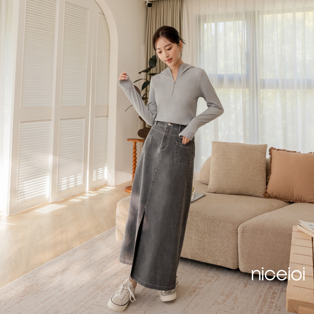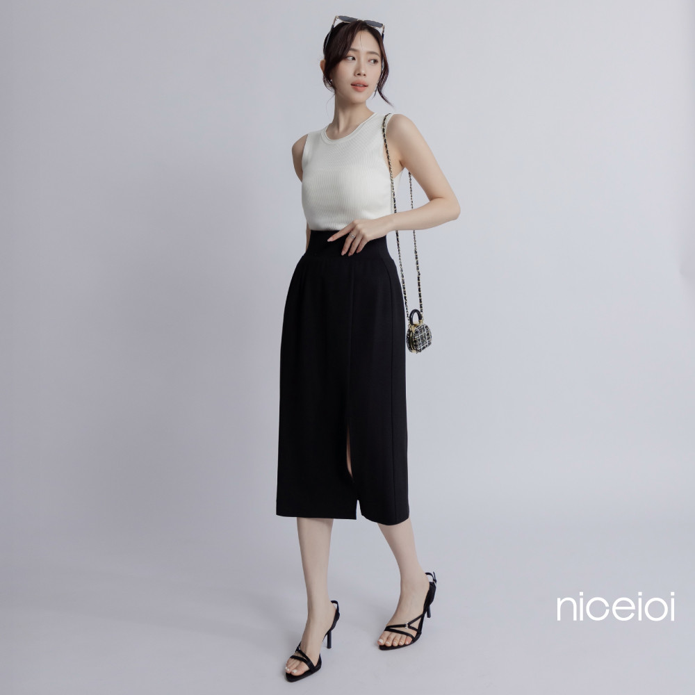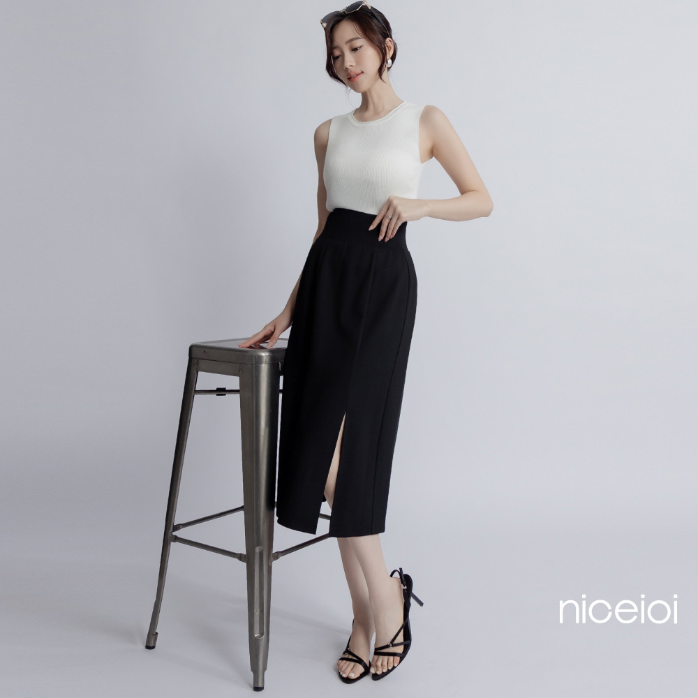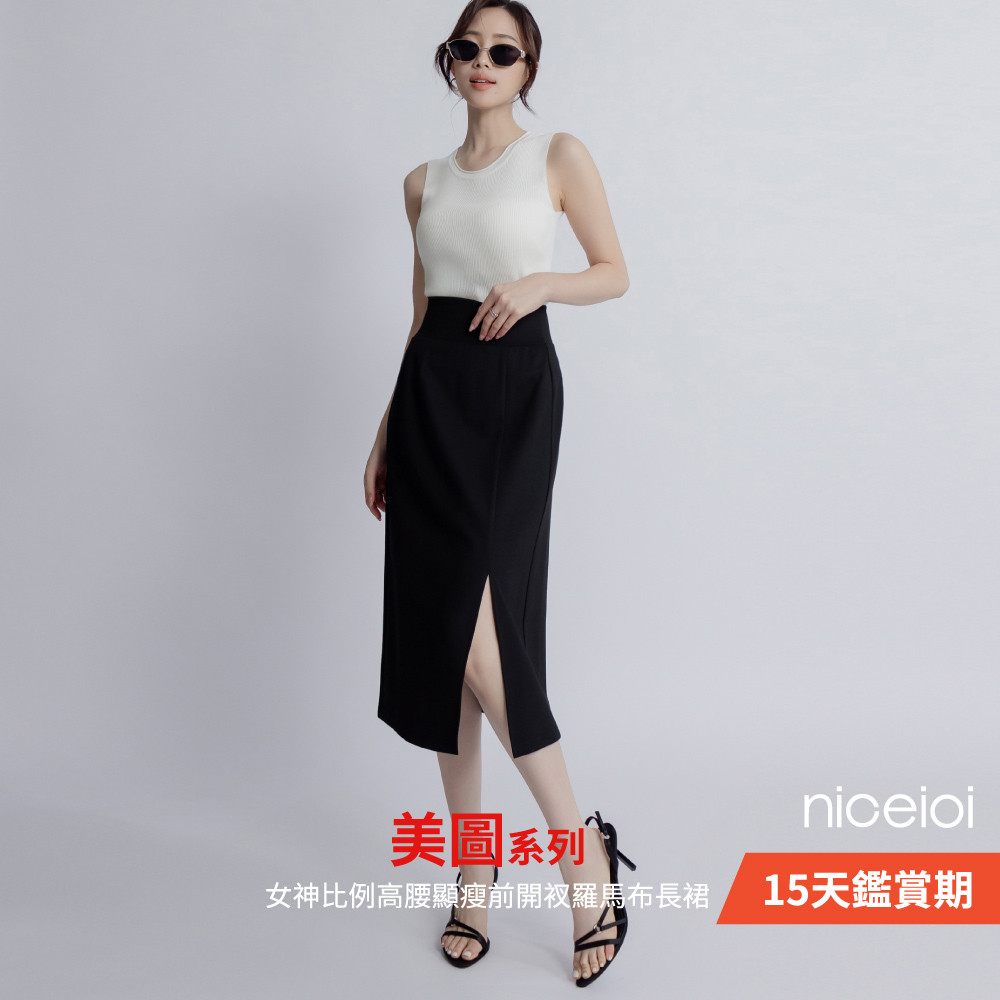 niceioi 半身裙 長裙 開衩長裙 黑色 [美圖系列 女神比例高腰顯瘦前開衩羅馬布長裙] 超值推薦 大尺碼女裝半身裙-黑,XXL|半身裙-黑,S|半身裙-黑,M|半身裙-黑,L|半身裙-黑,XLniceioi 官方旗艦店