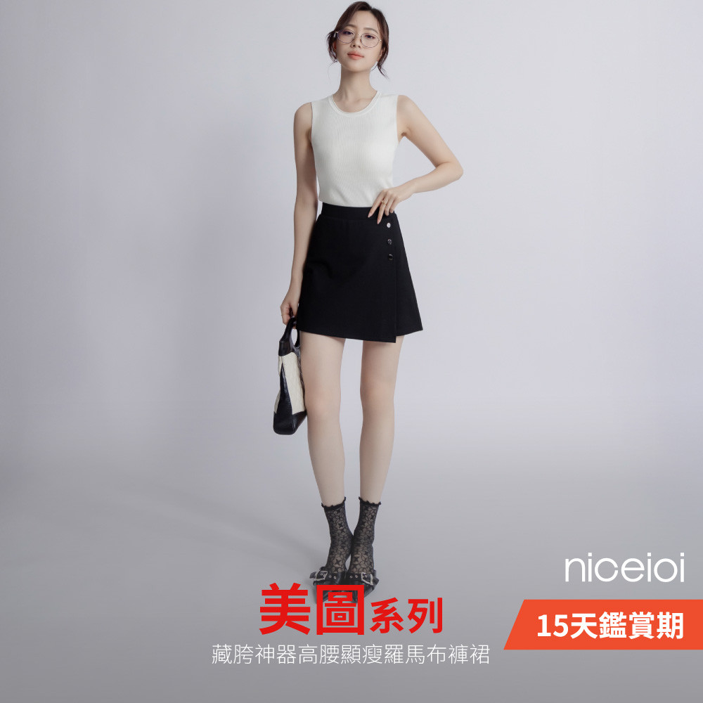 niceioi 高腰褲裙 褲裙 不規則短裙 黑色 [美圖系列 藏胯神器高腰顯瘦羅馬布褲裙] 超值推薦 大尺碼女裝高腰褲裙-黑,L|高腰褲裙-黑,XL|高腰褲裙-黑,XXL|高腰褲裙-黑,S|高腰褲裙-黑,Mniceioi 官方旗艦店