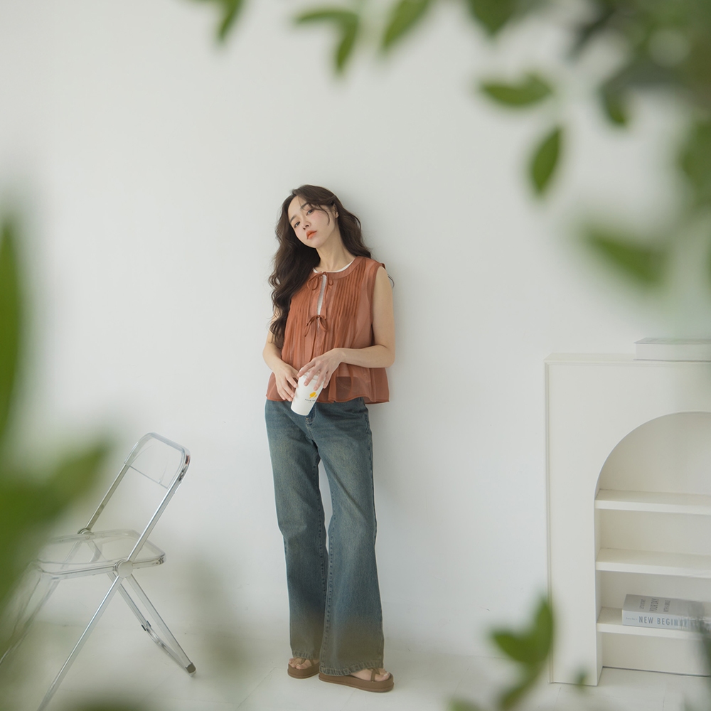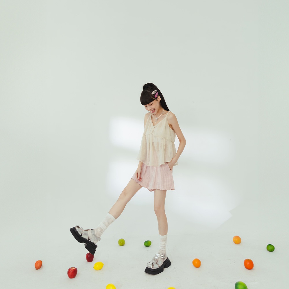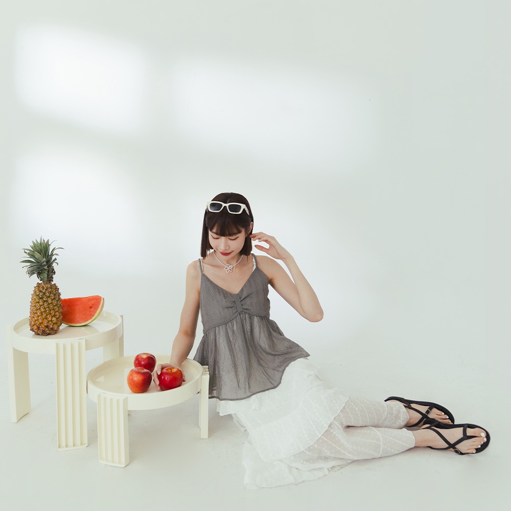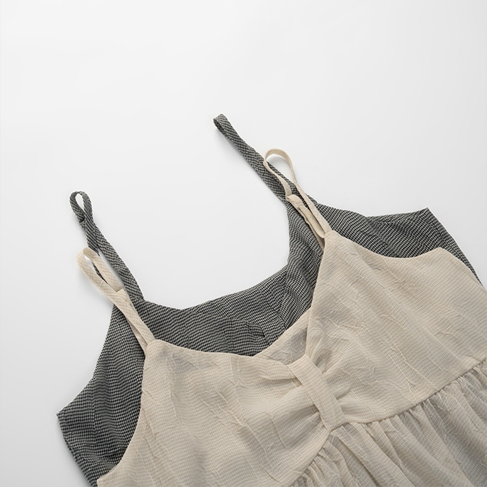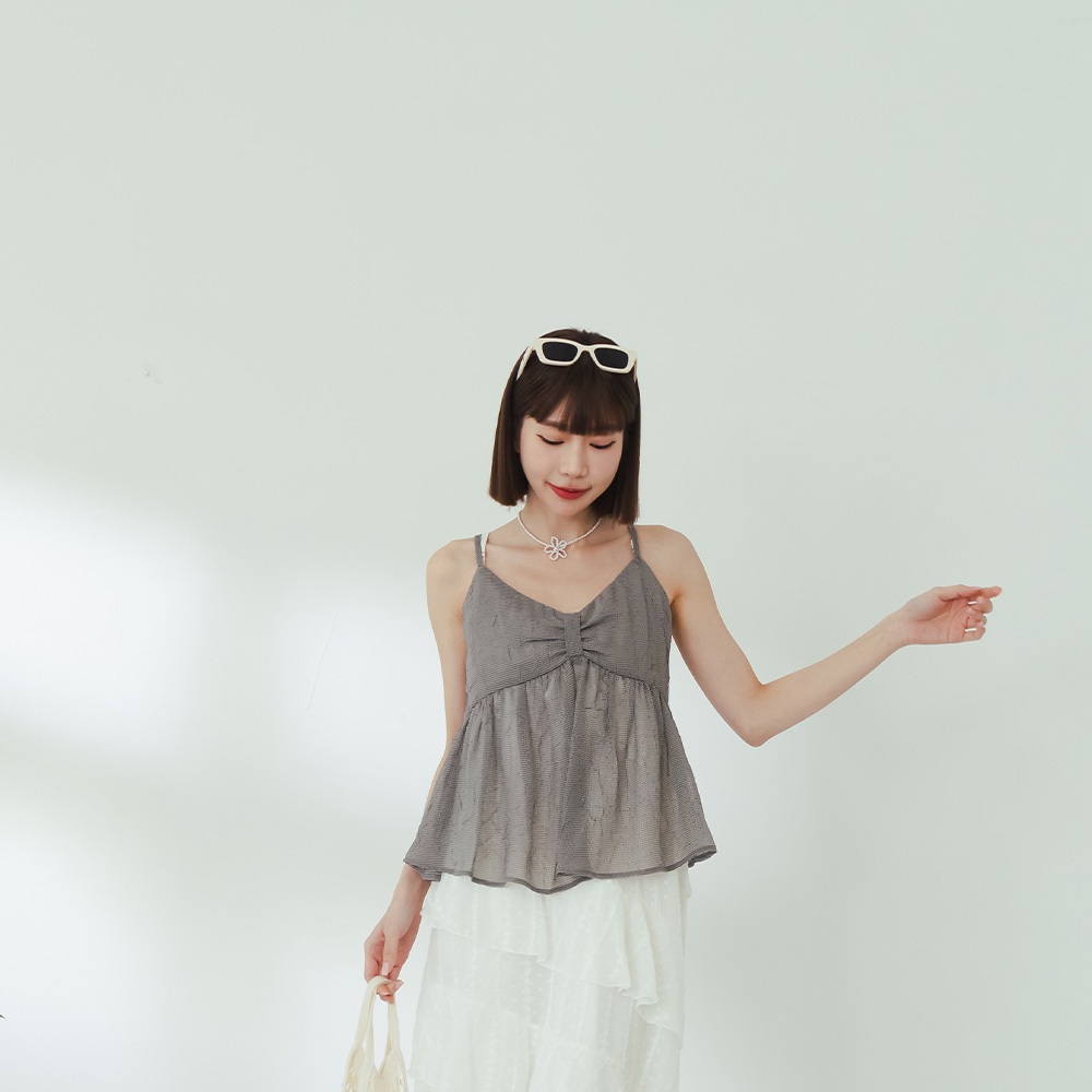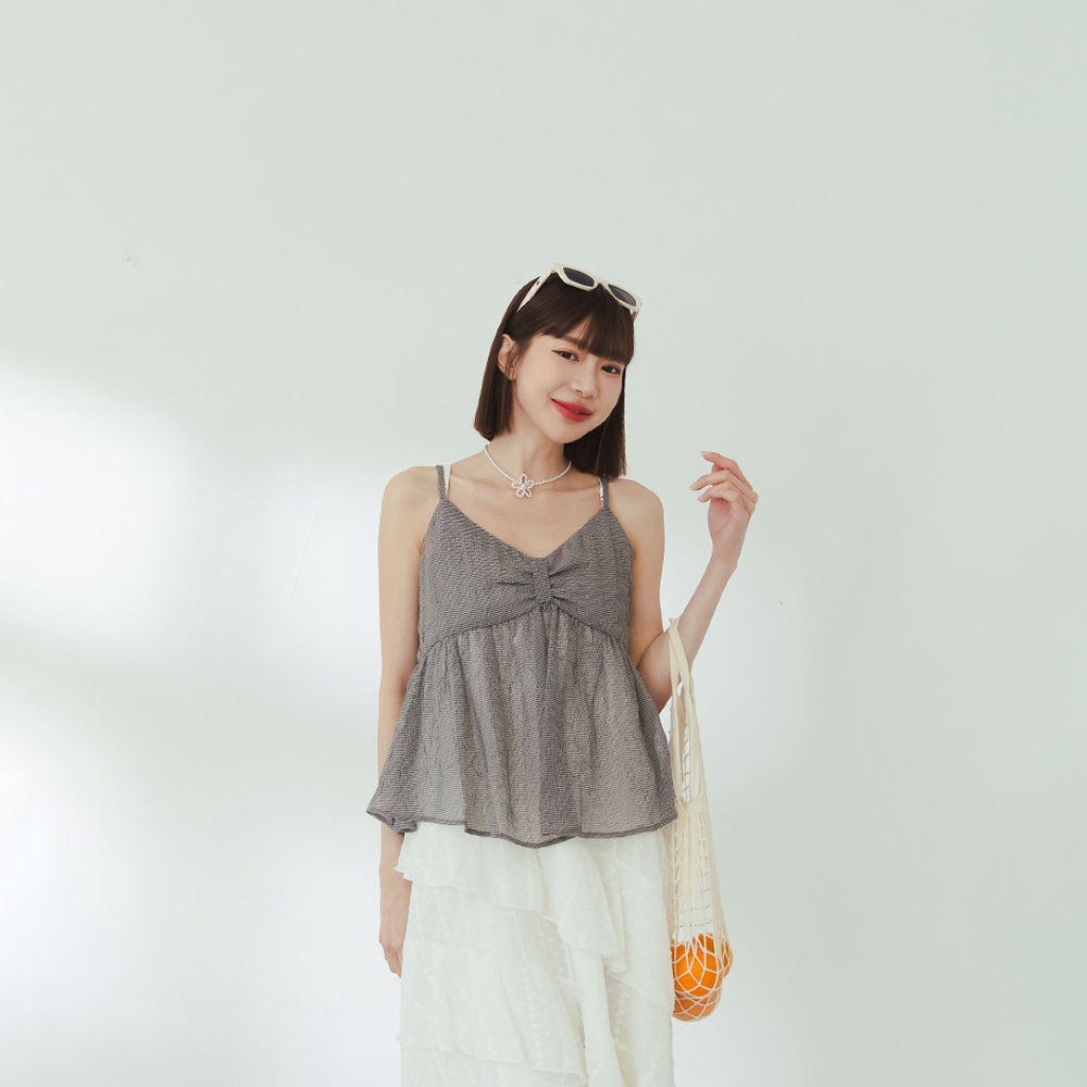 QUEENSHOP_ S 女裝 皺皺大蝴蝶結細格雪紡背心 兩色售 現+預 【01150468】黑|卡其Tanks & CamisolesQUEENSHOP