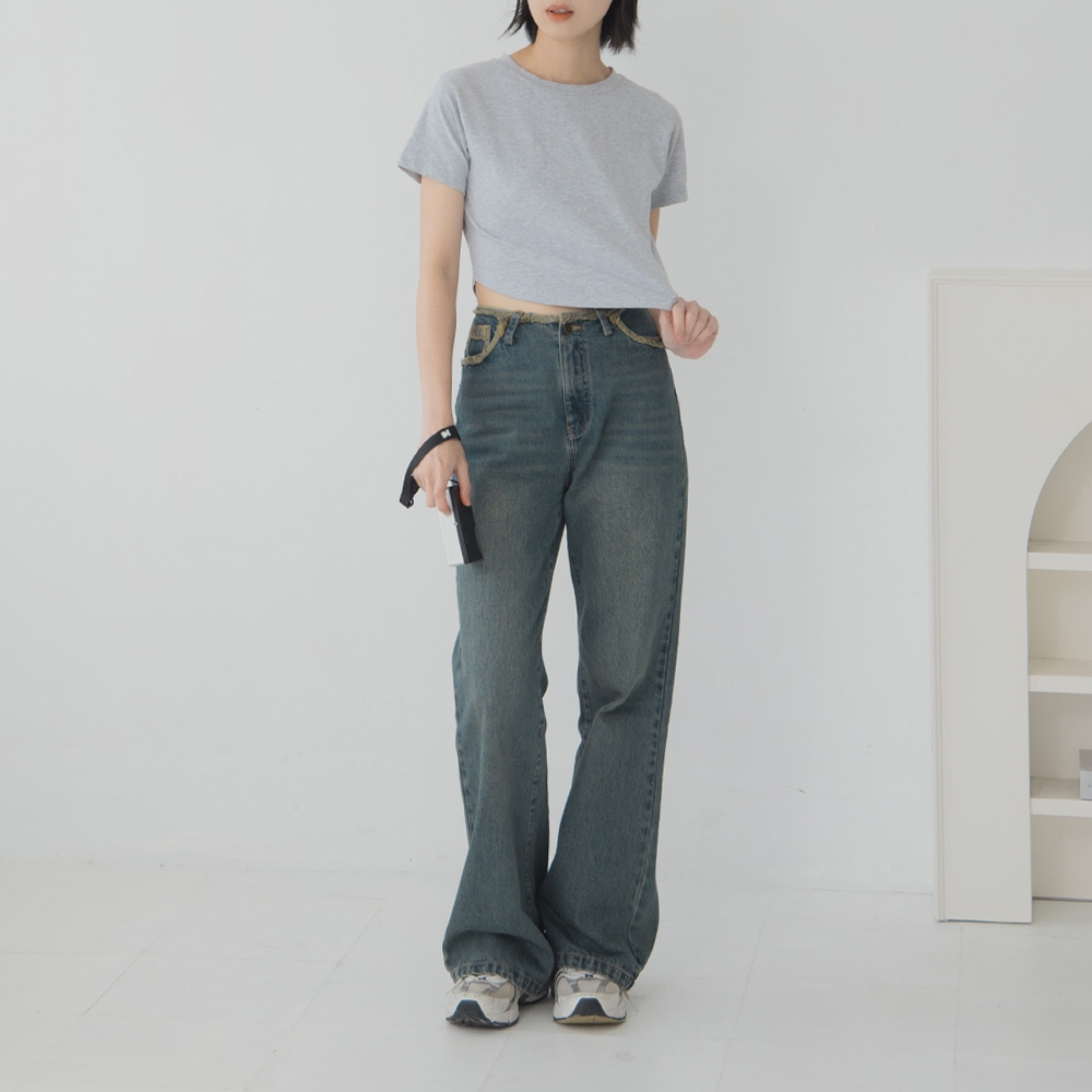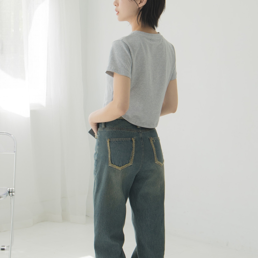 QUEENSHOP_ S 女裝 復古刷色抽鬚造型牛仔褲 S/M/L 現+預 【04011799】