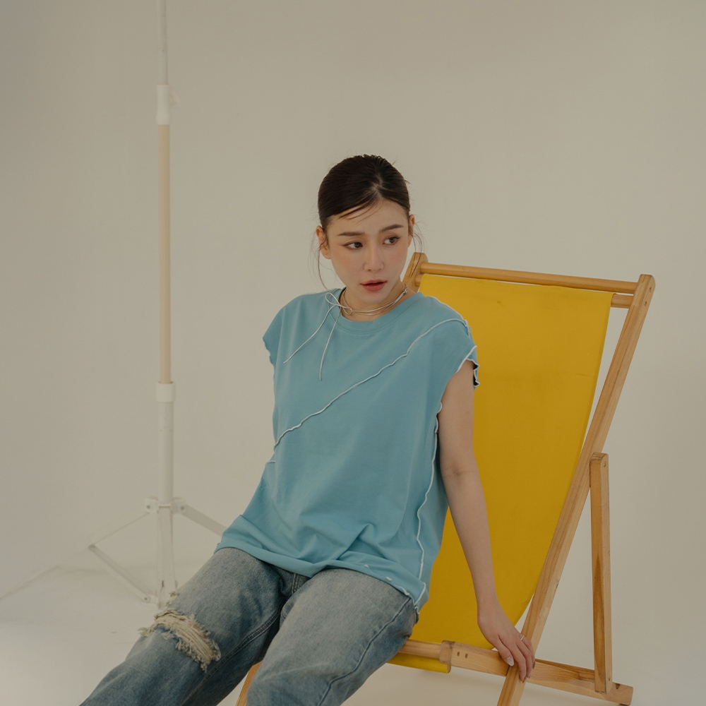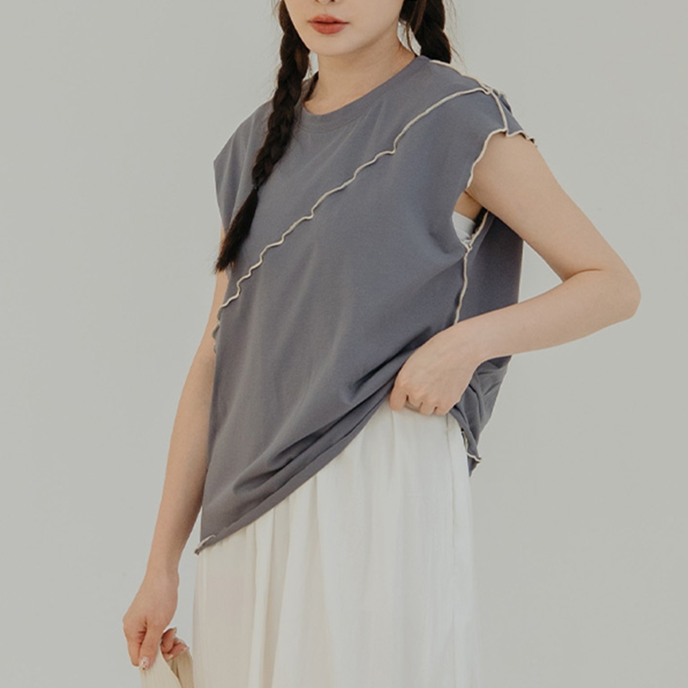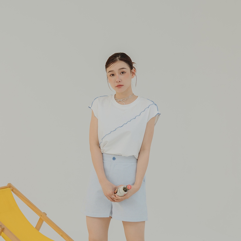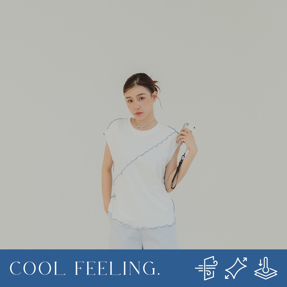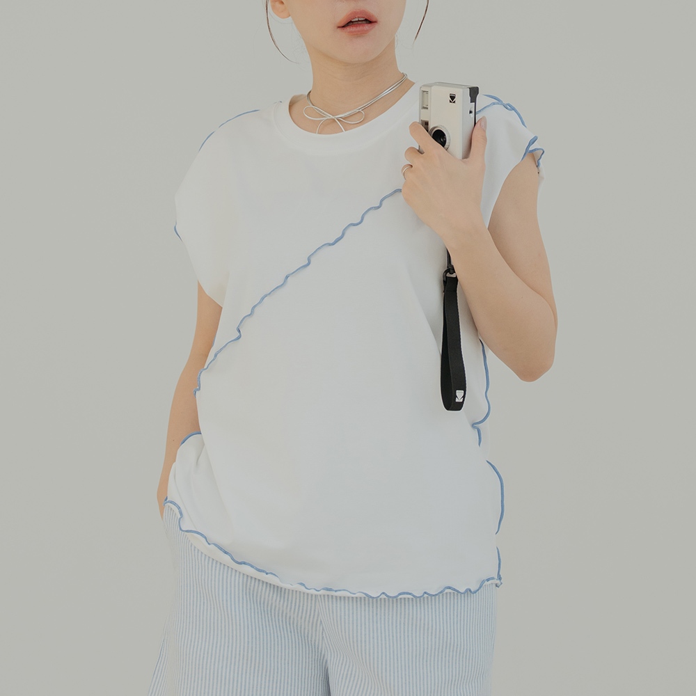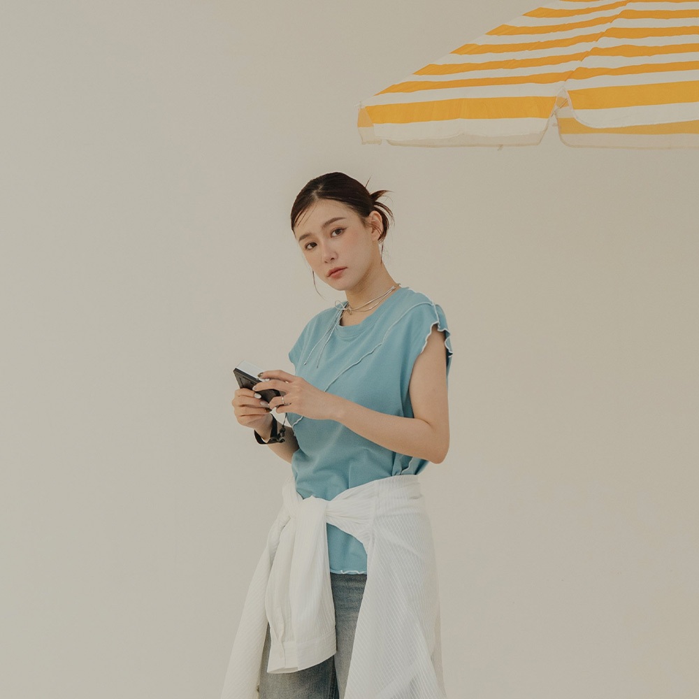 QUEENSHOP_ S 女裝 涼感木耳邊撞色無袖背心 三色售 現+預 【01150452】白|藍|灰藍OthersQUEENSHOP