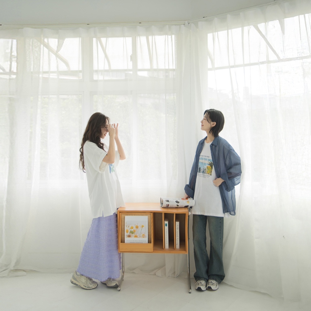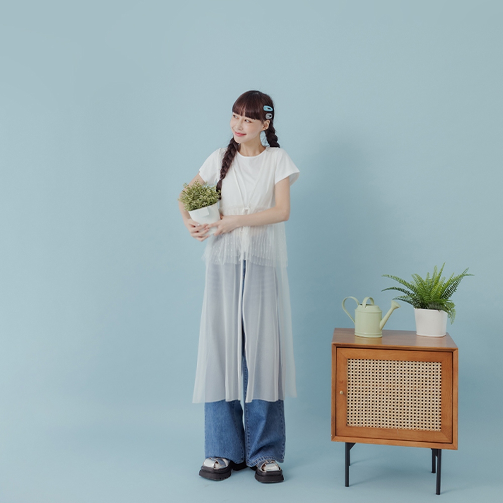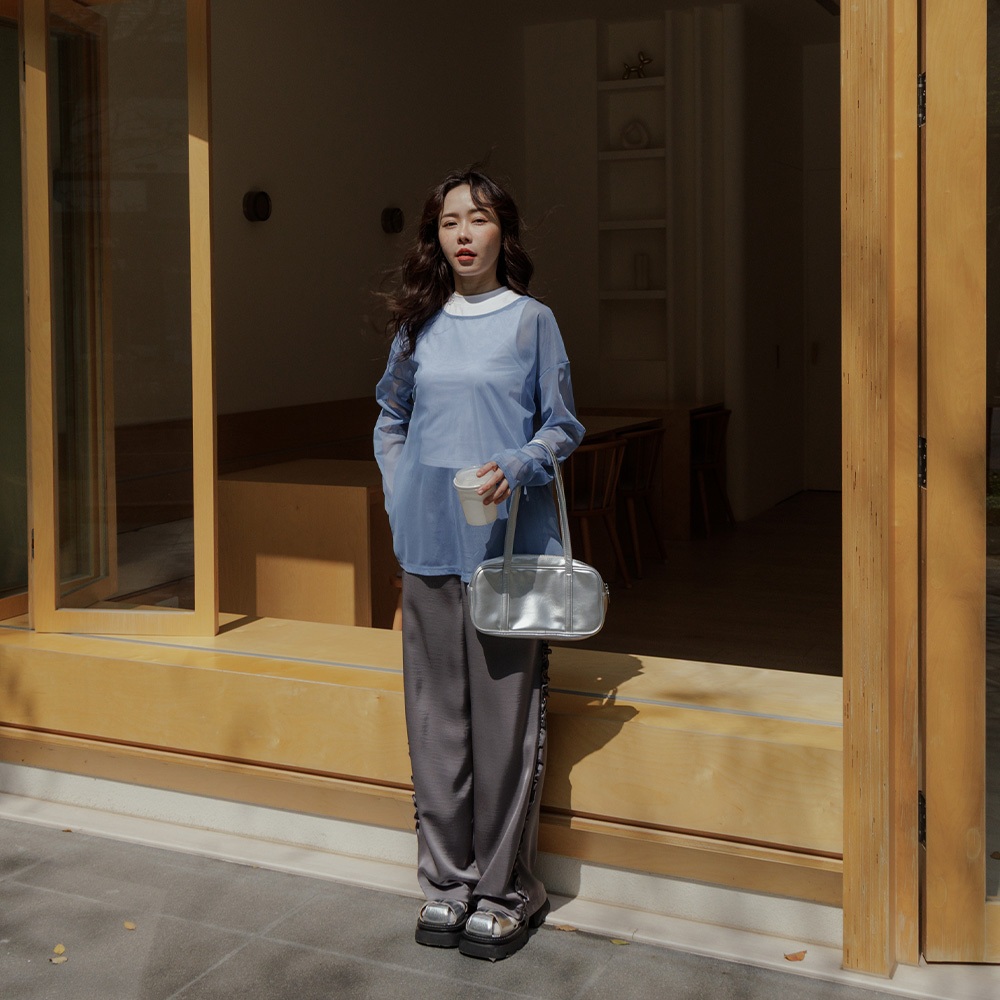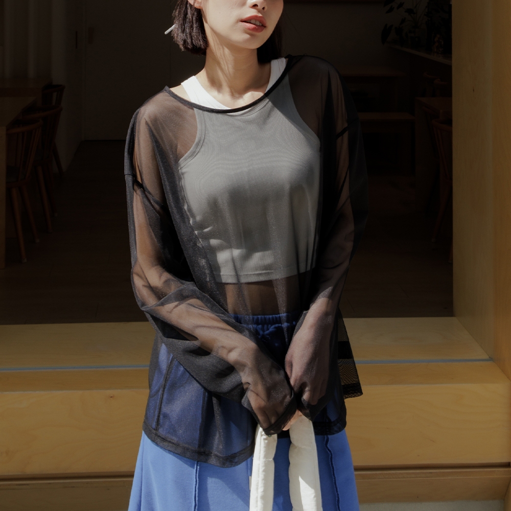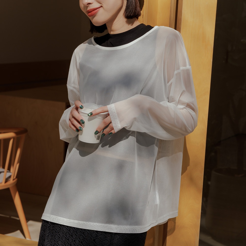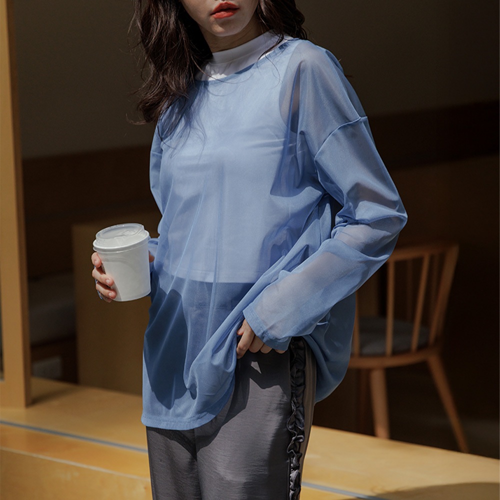 QUEENSHOP_ S 女裝 長袖 圓領透膚網紗寬版罩衫上衣 三色售 現+預 【01098850】黑|藍|米白OthersQUEENSHOP