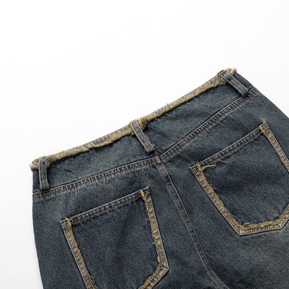 QUEENSHOP_ S 女裝 復古刷色抽鬚造型牛仔褲 S/M/L 現+預 【04011799】S|M|LQUEENSHOP