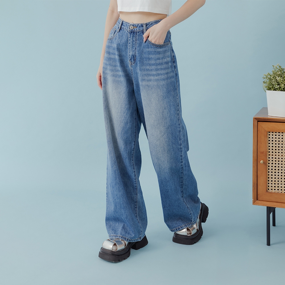 QUEENSHOP_ S 女裝 低腰水洗寬版牛仔長褲 S/M/L 現+預 【04011798】S|M|LQUEENSHOP