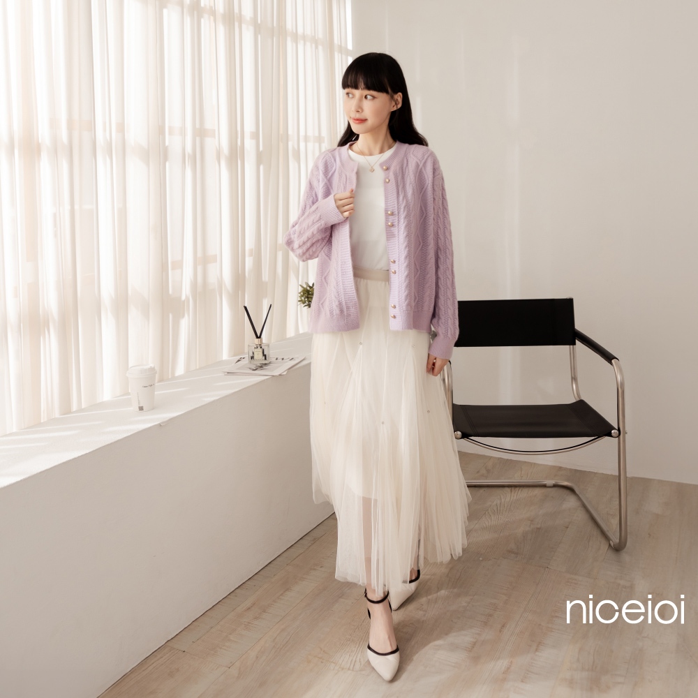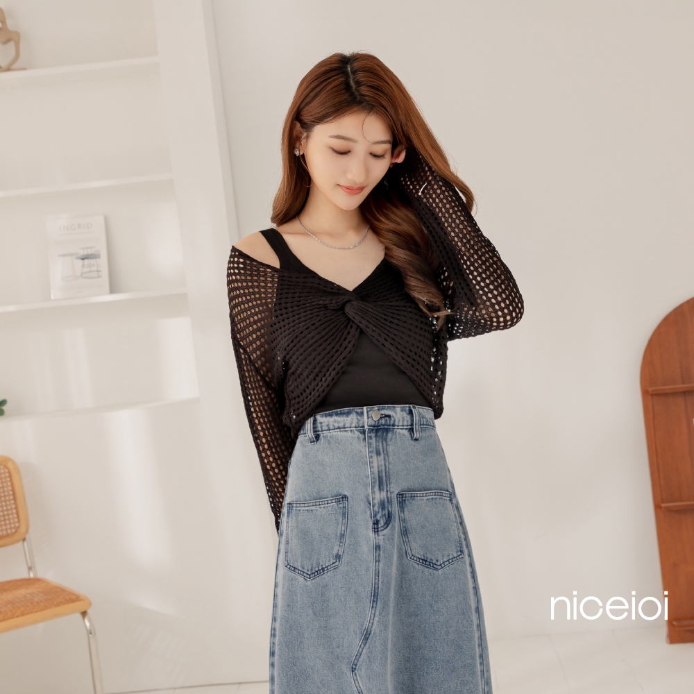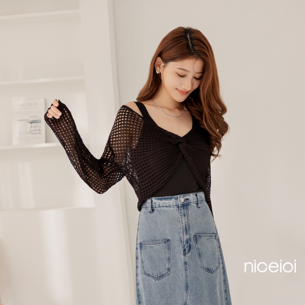 niceioi【特惠】氣質歐膩扭結洞洞針織上衣 (共3色) 女裝白,F|黑,F|粉,FOthersniceioi 官方旗艦店