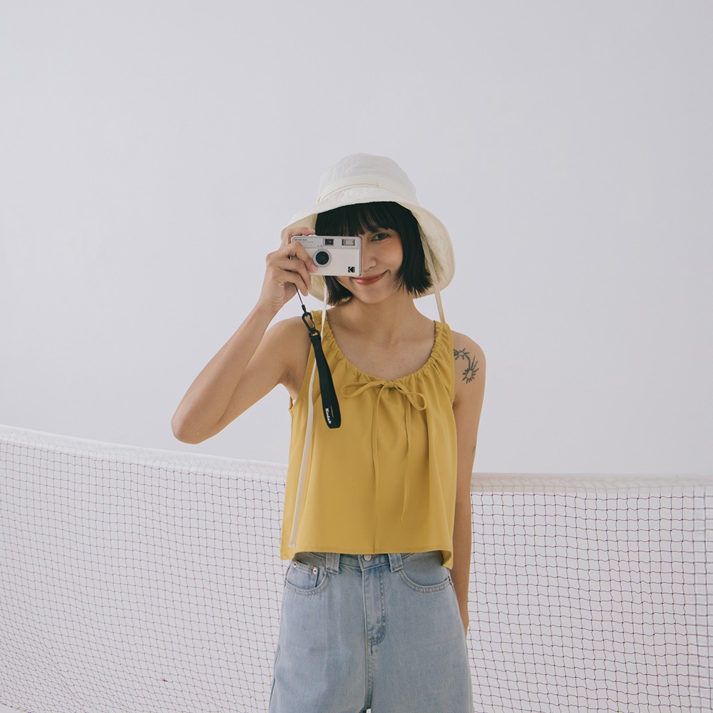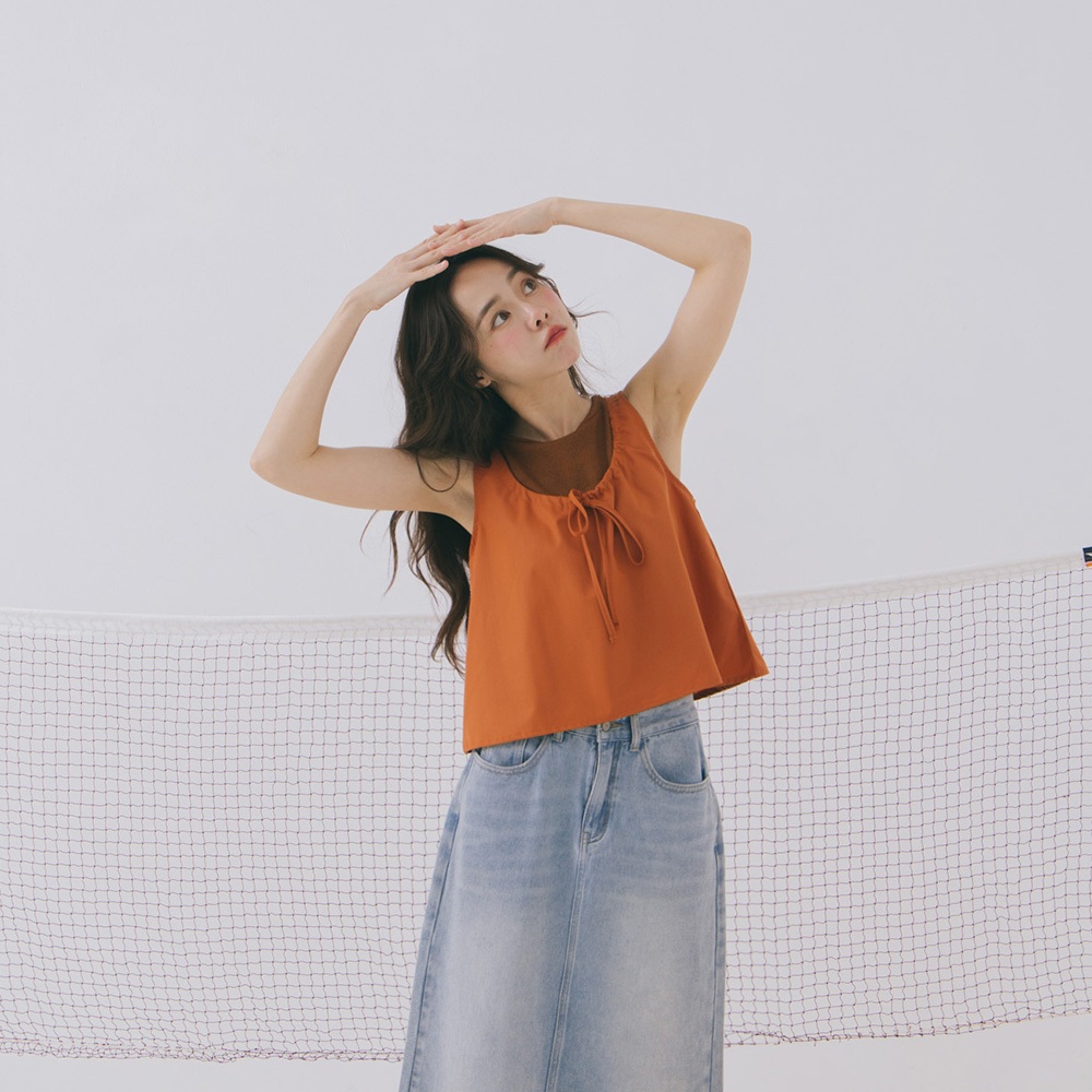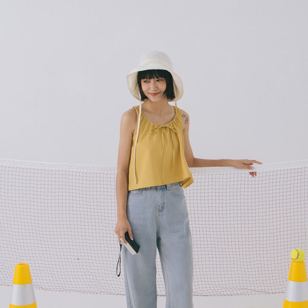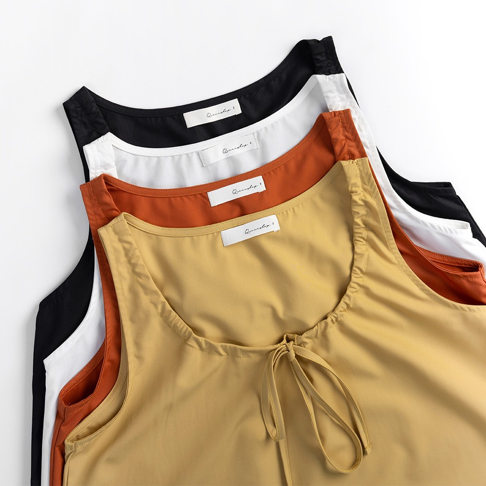 QUEENSHOP_ S 女裝 圓領抽繩綁帶傘擺無袖背心 四色售 現+預 【01098854】黑|白|黃|橘OthersQUEENSHOP