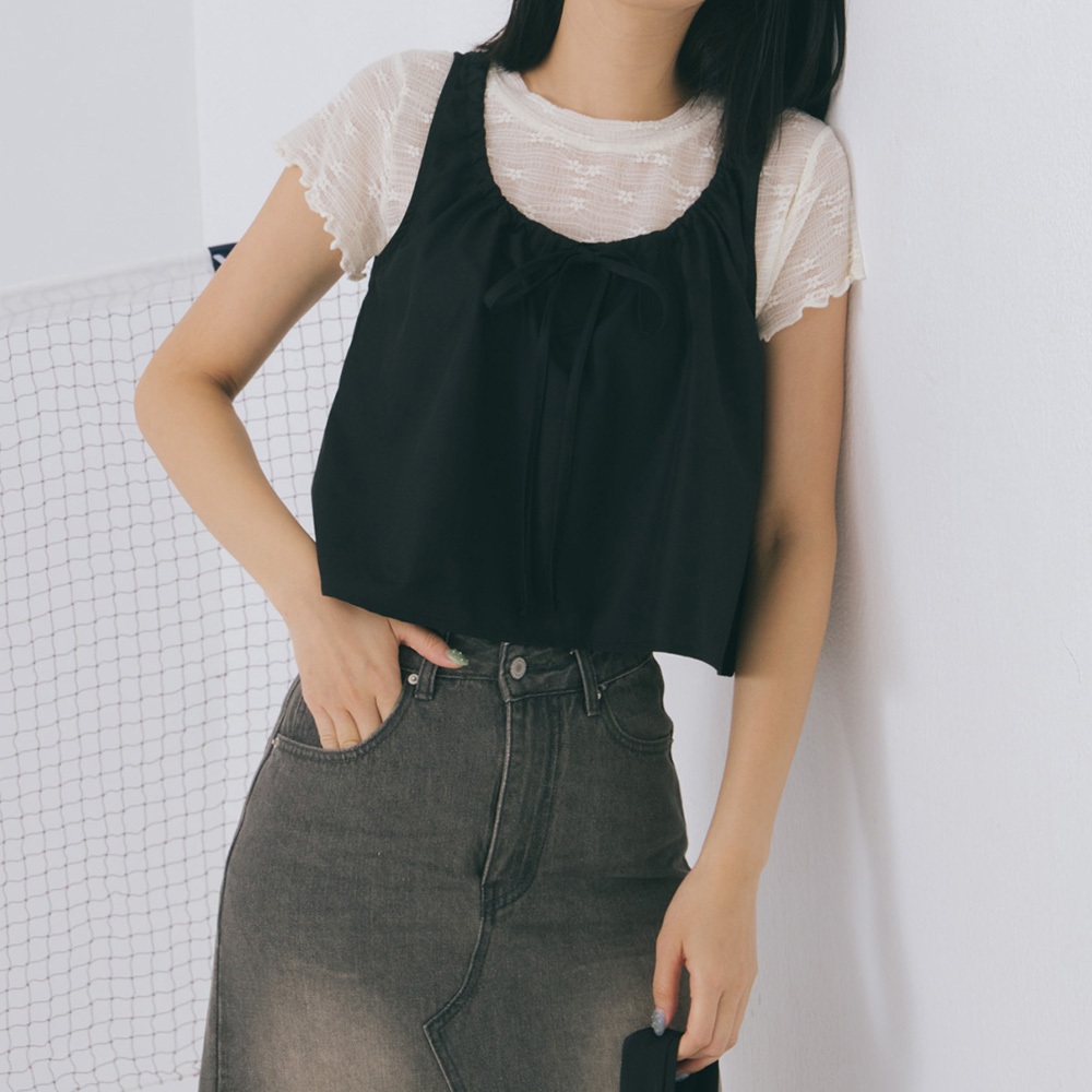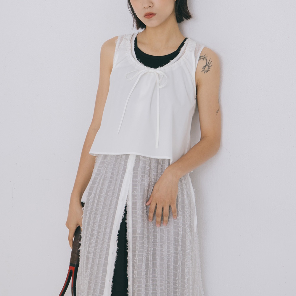 QUEENSHOP_ S 女裝 立體蝴蝶結羽毛綁帶網紗背心 兩色售 現+預 【01098873】黑|杏OthersQUEENSHOP