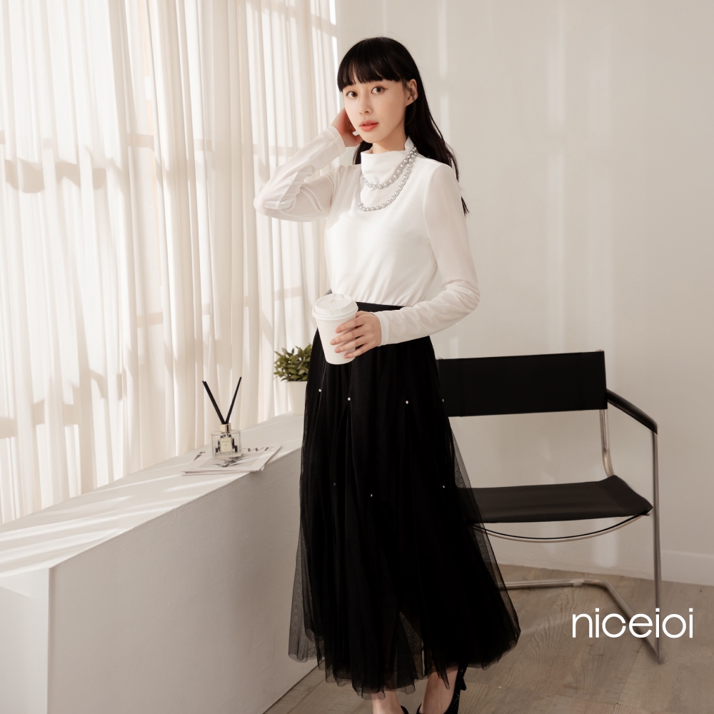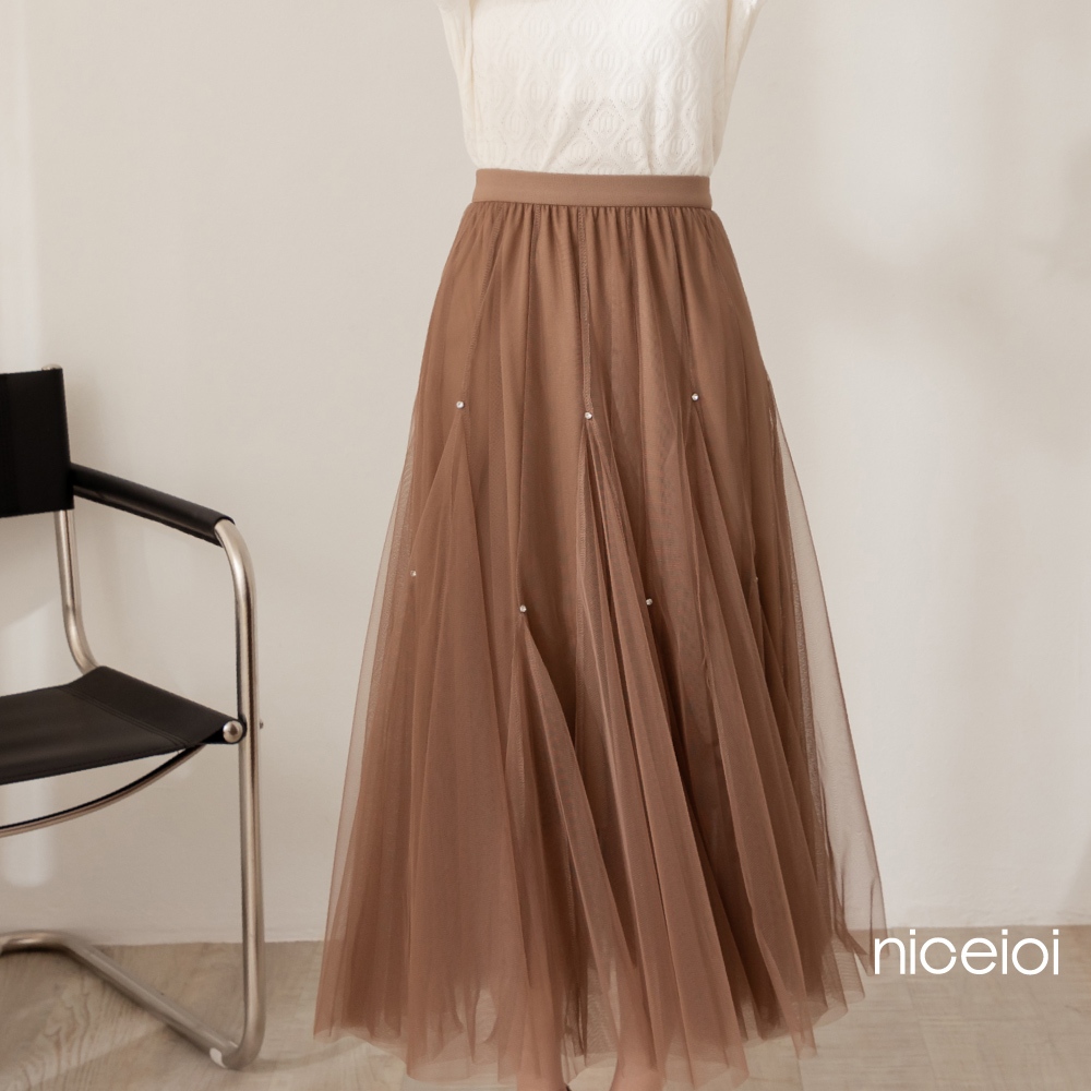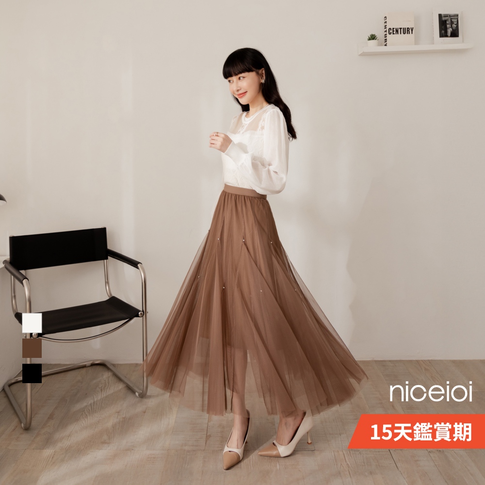 niceioi【特惠】鑽石閃耀不規則花瓣層次紗裙 (共3色) 女裝米白,F|黑,F|咖,Fniceioi 官方旗艦店