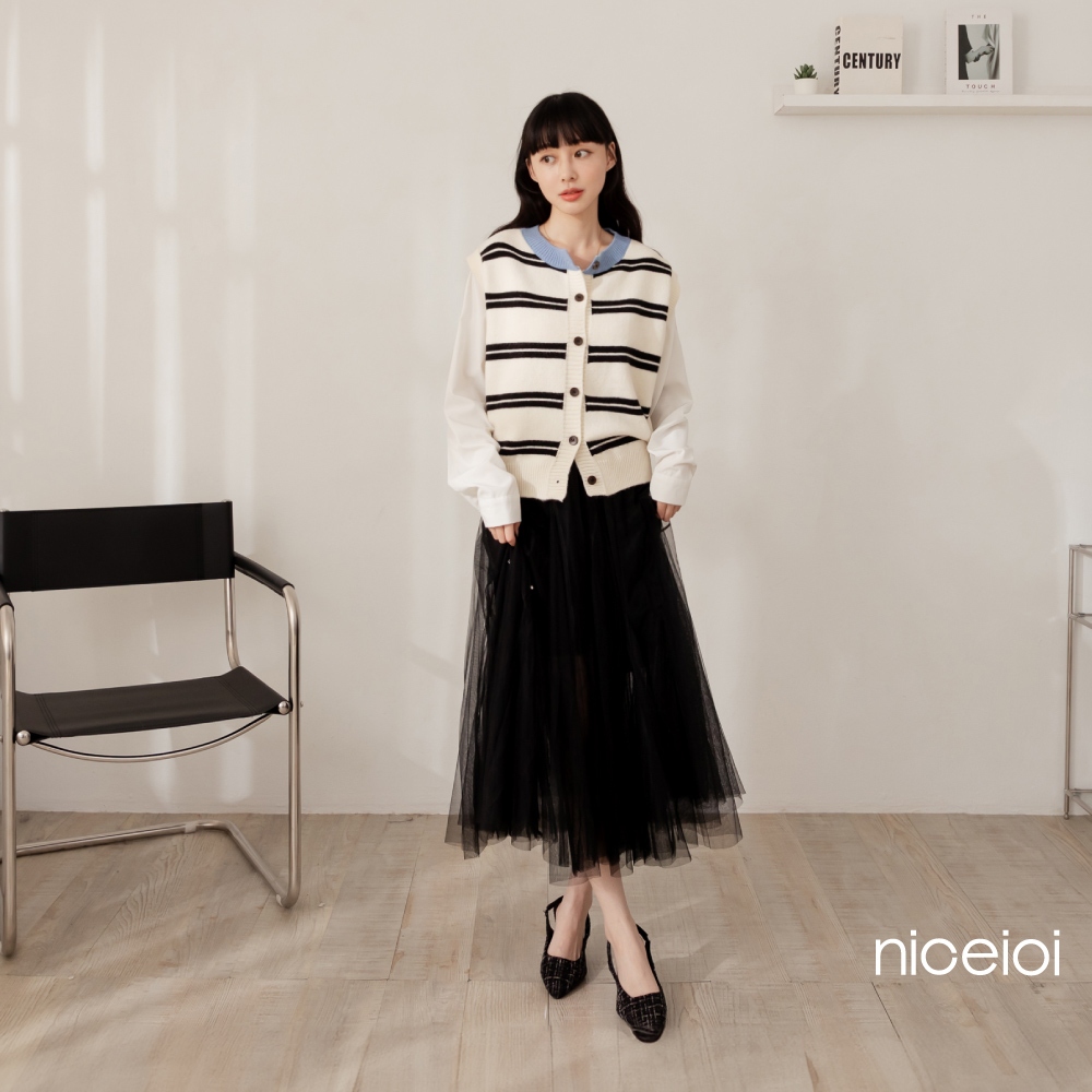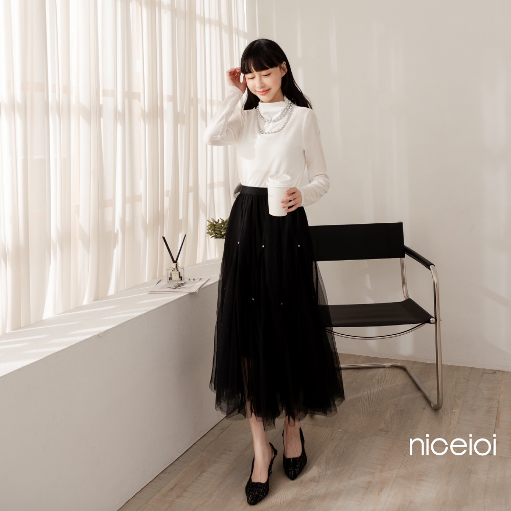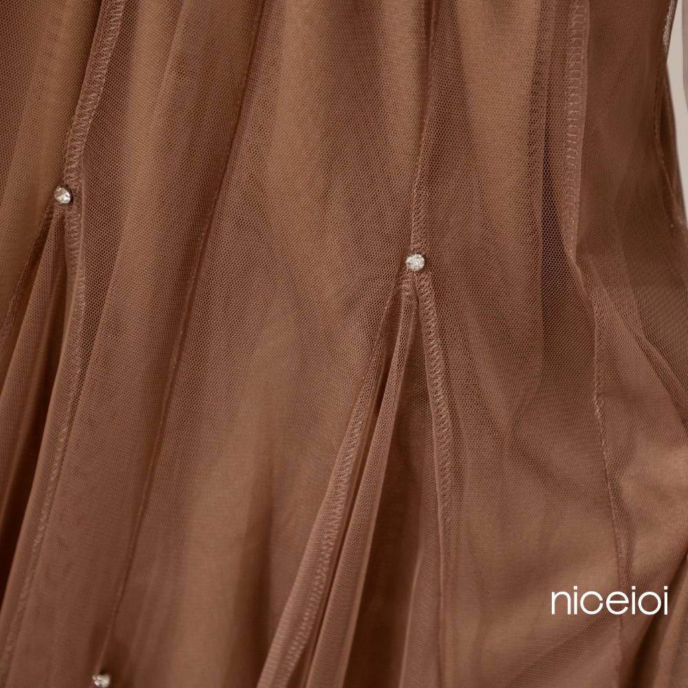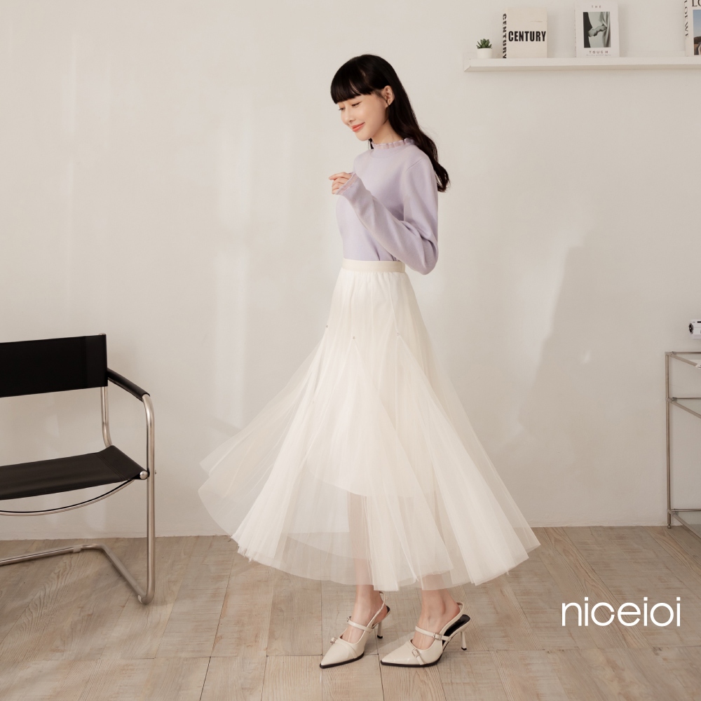 niceioi【特惠】鑽石閃耀不規則花瓣層次紗裙 (共3色) 女裝米白,F|黑,F|咖,Fniceioi 官方旗艦店