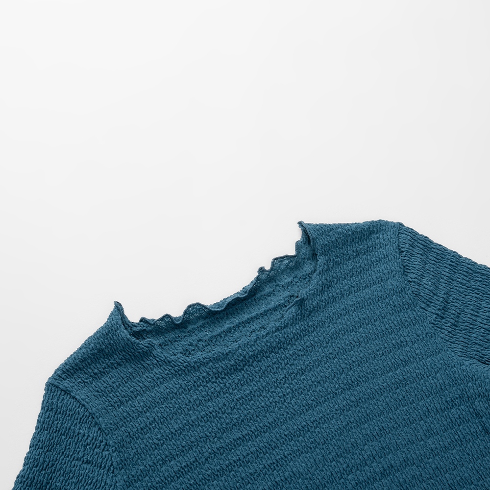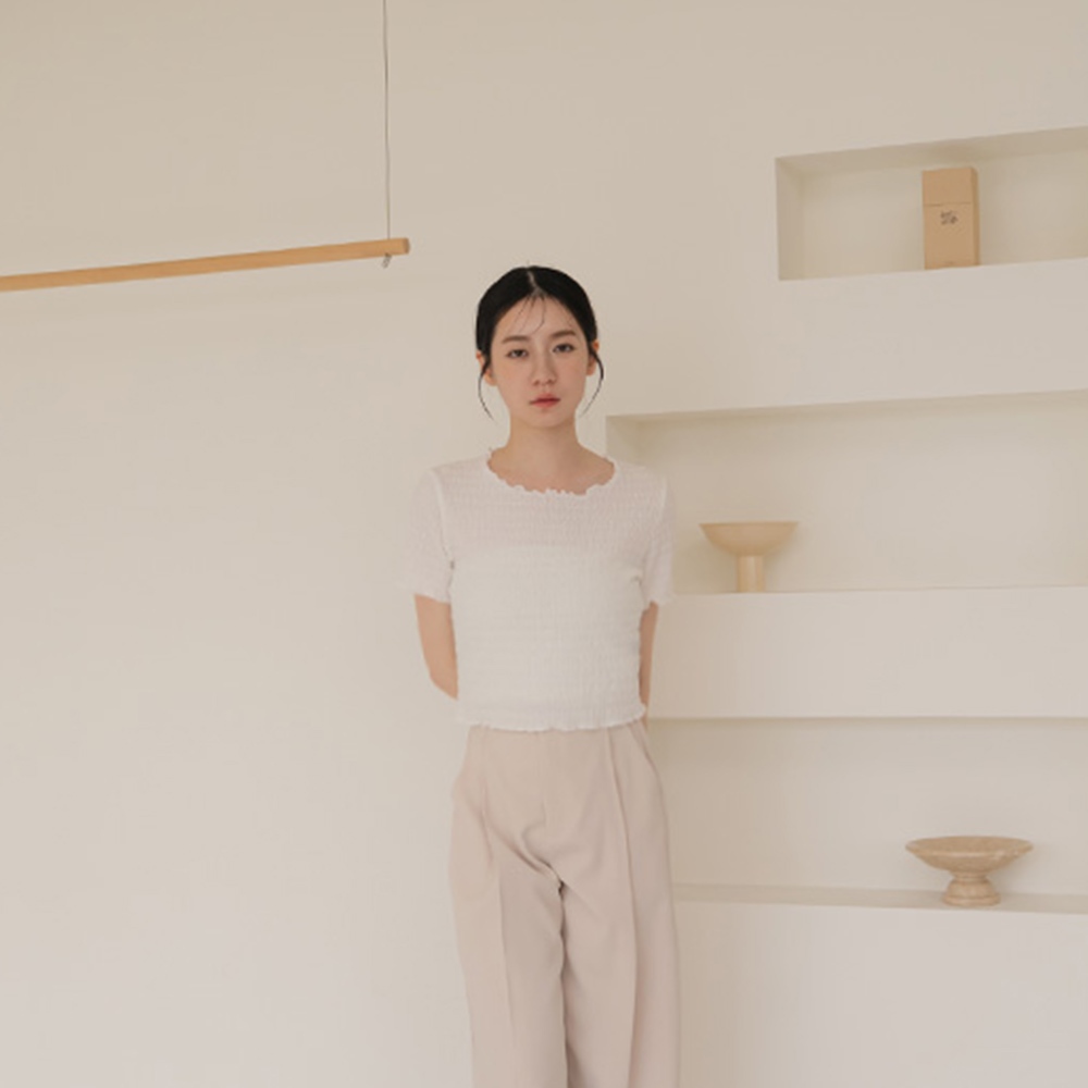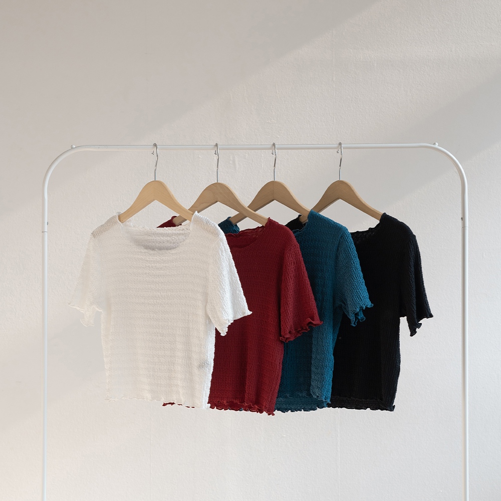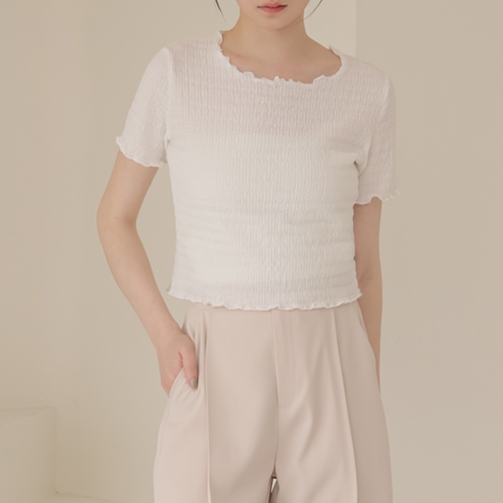 QUEENSHOP_ S 女裝 短袖 皺皺紋理木耳邊造型短版上衣-白 現+預 【01098965】白OthersQUEENSHOP