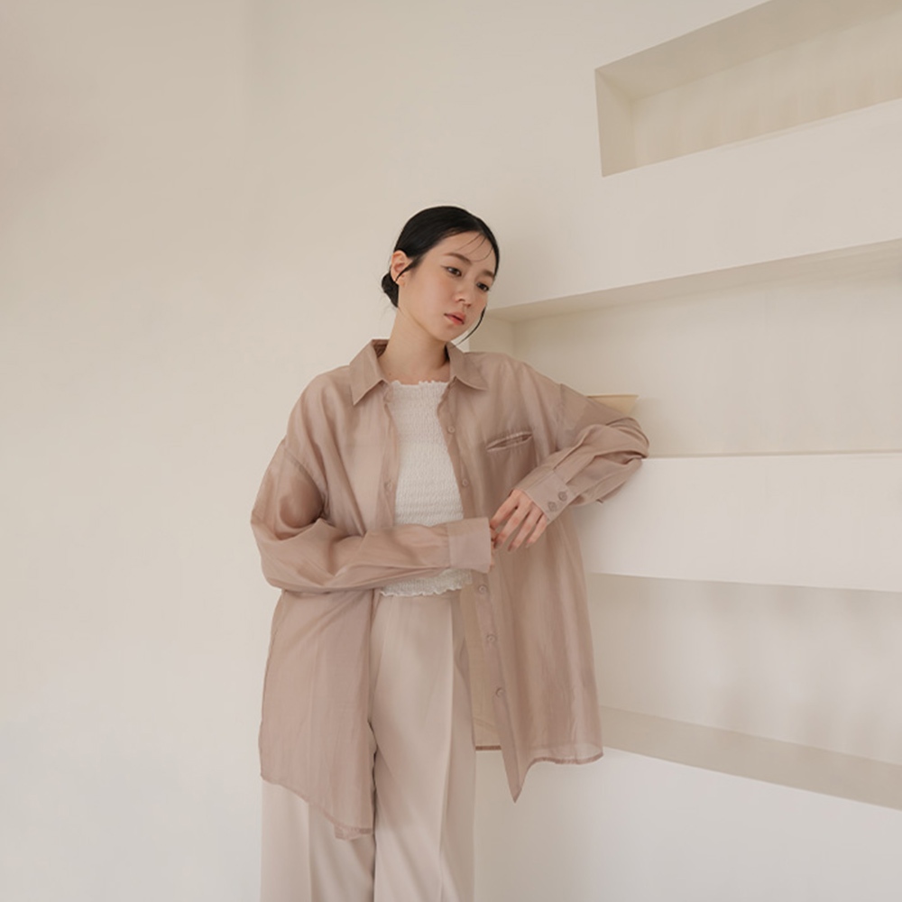 QUEENSHOP_ S 女裝 長袖 立體毛感格紋透膚寬版襯衫 兩色售 現+預 【01025596】白|藍Shirts & BlousesQUEENSHOP