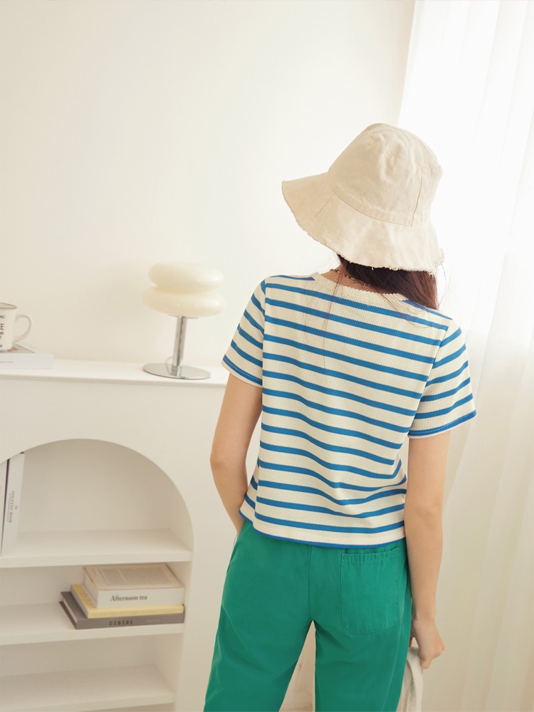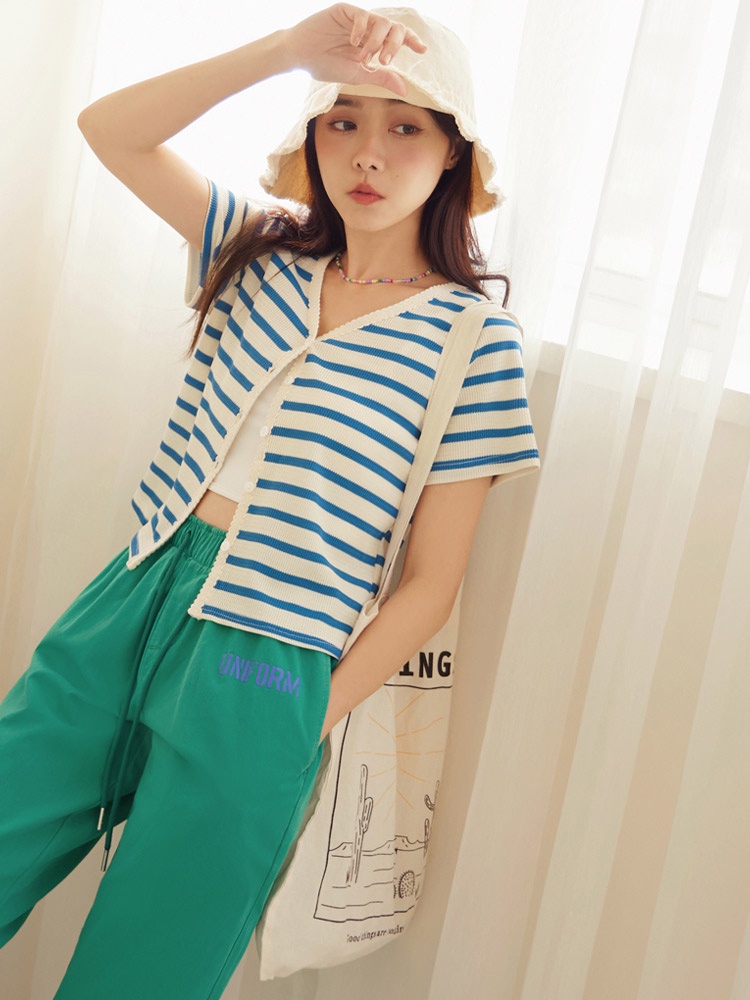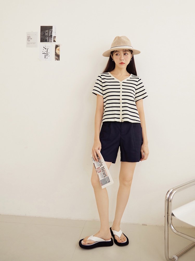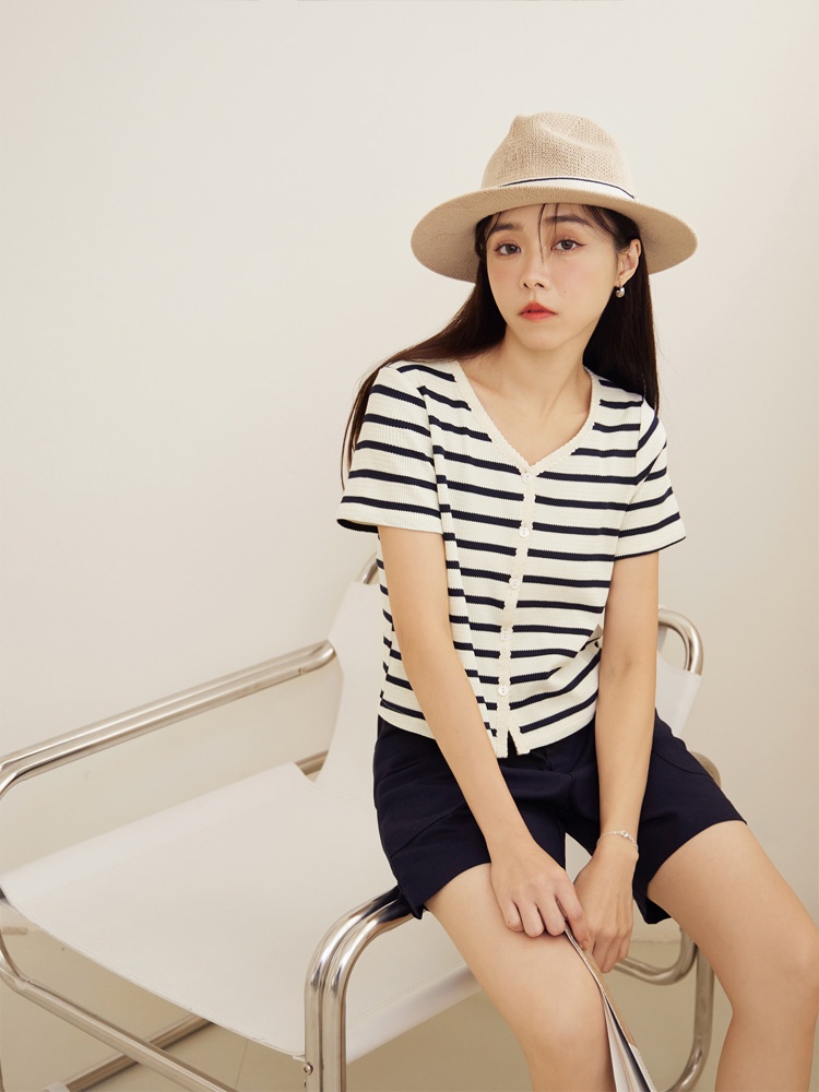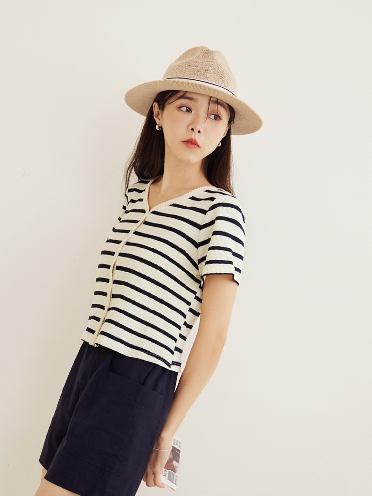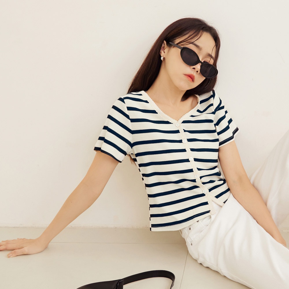 OB嚴選 條紋彈性針織滾邊織帶排釦短袖上衣 《AB18841》大尺碼/現貨/女裝黑,2L|深藍,S|深藍,M|深藍,L|深藍,3L|藍,M|黑,S|黑,XL|黑,3L|藍,3L|深藍,XL|深藍,2L|藍,L|藍,XL|藍,2L|黑,M|黑,L|藍,ST-shirtsOB嚴選官方旗艦店