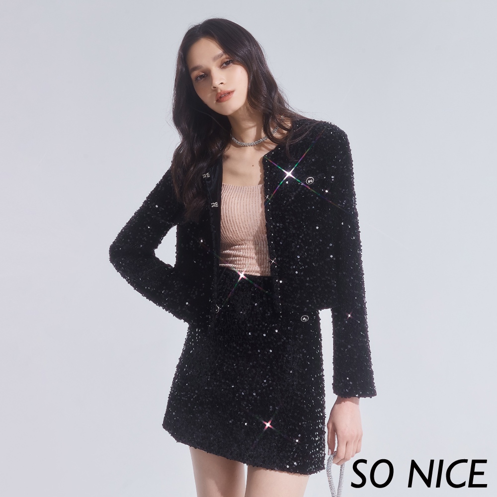 SO NICE【特惠】華麗亮片繡A字短裙|都會時尚女裝 【29343010】黑,34(XS)|黑,36(S)|黑,38(M)|黑,40(L)|黑,42(XL)SO NICE 官方旗艦店