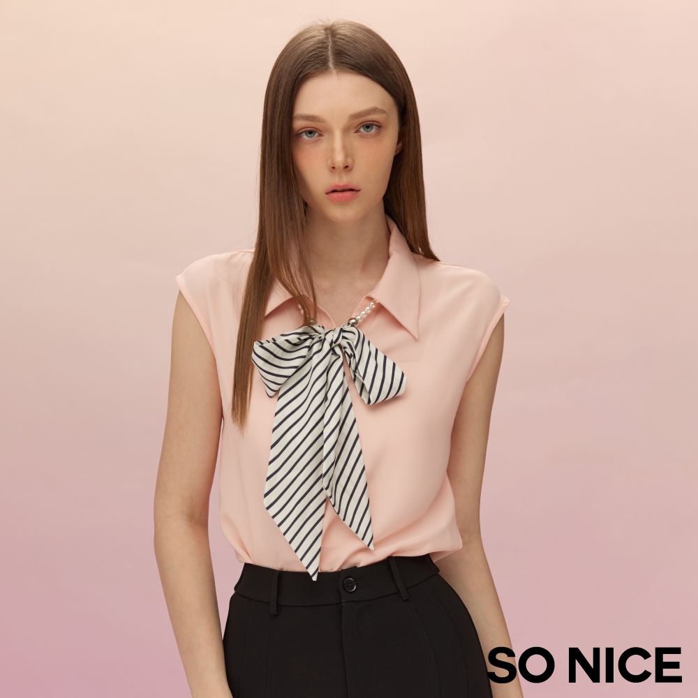 SO NICE 可拆式領巾雪紡蓋袖襯衫上衣|都會時尚女裝 【75531019】粉,40(L)|粉,42(XL)|粉,34(XS)|粉,36(S)|粉,38(M)Shirts & BlousesSO NICE 官方旗艦店