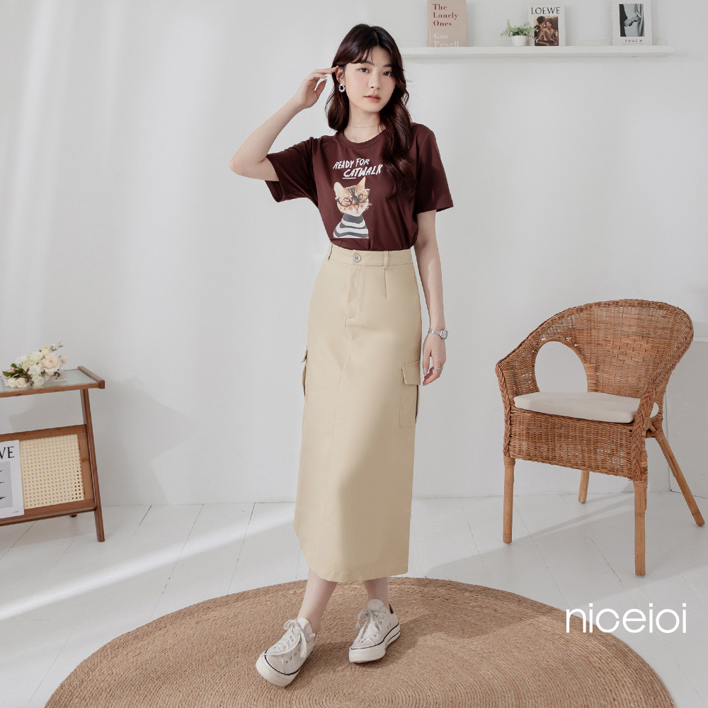 niceioi 率性日常修身工裝裙 女裝淺卡其,M|淺卡其,L|淺卡其,XL|淺卡其,Sniceioi 官方旗艦店