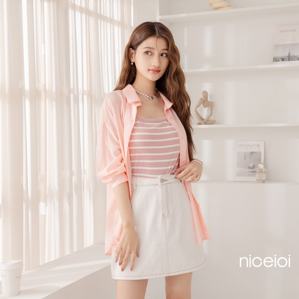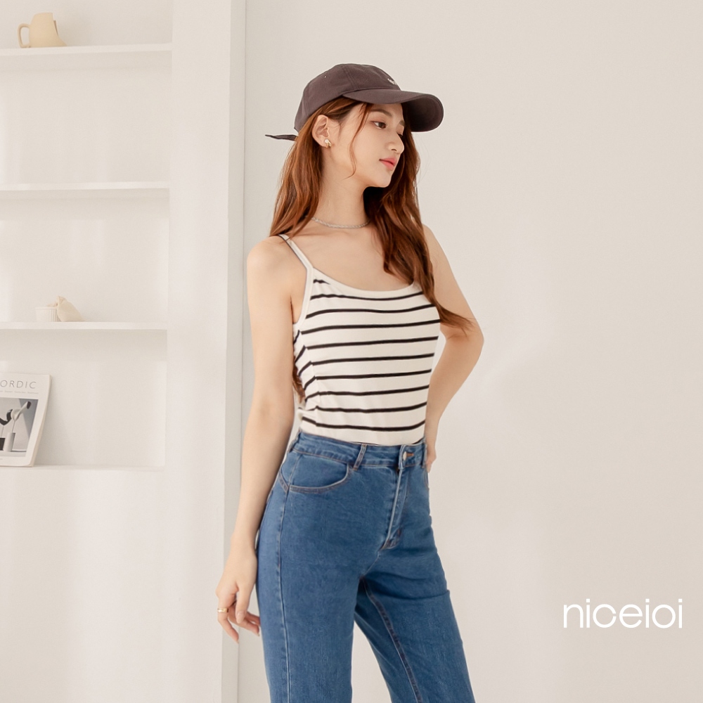 niceioi【特惠】清新撞色條紋細肩背心 (共2色) 女裝粉,M|粉,L|粉,XL|米,S|米,M|米,L|米,XL|粉,STanks & Camisolesniceioi 官方旗艦店