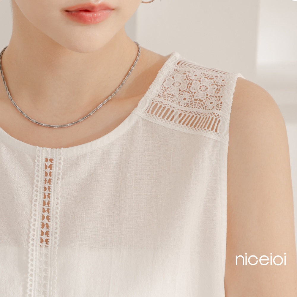 niceioi【特惠】清新純白鏤空蕾絲棉麻背心 女裝白,S|白,M|白,L|白,XLT-shirtsniceioi 官方旗艦店