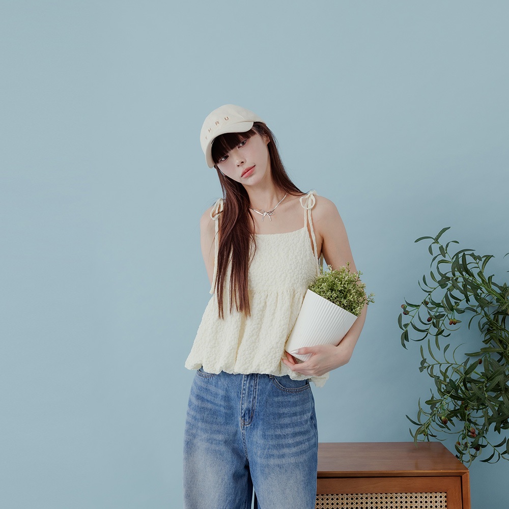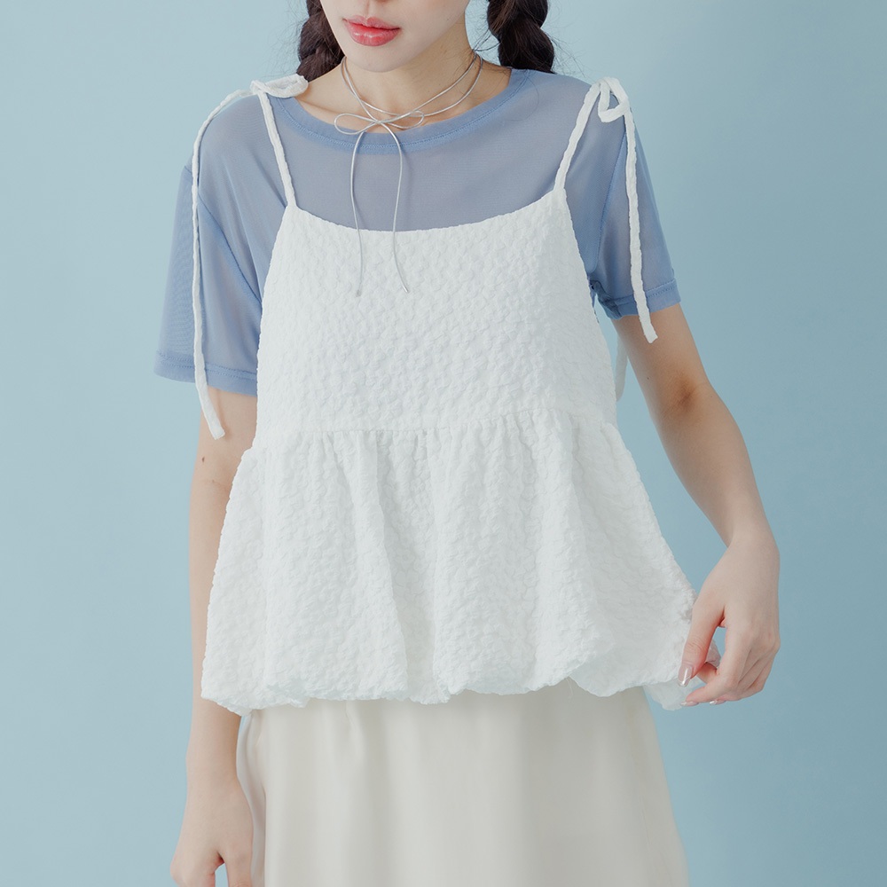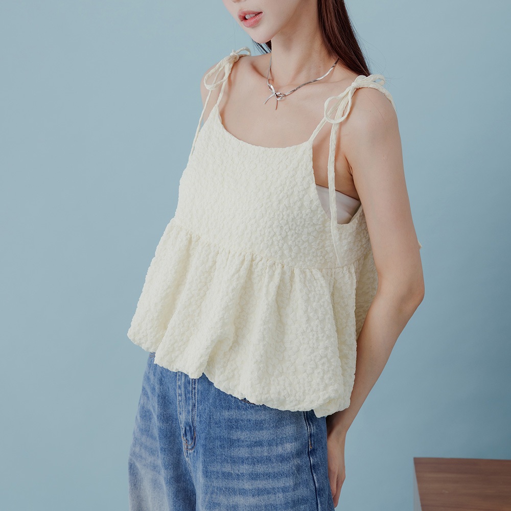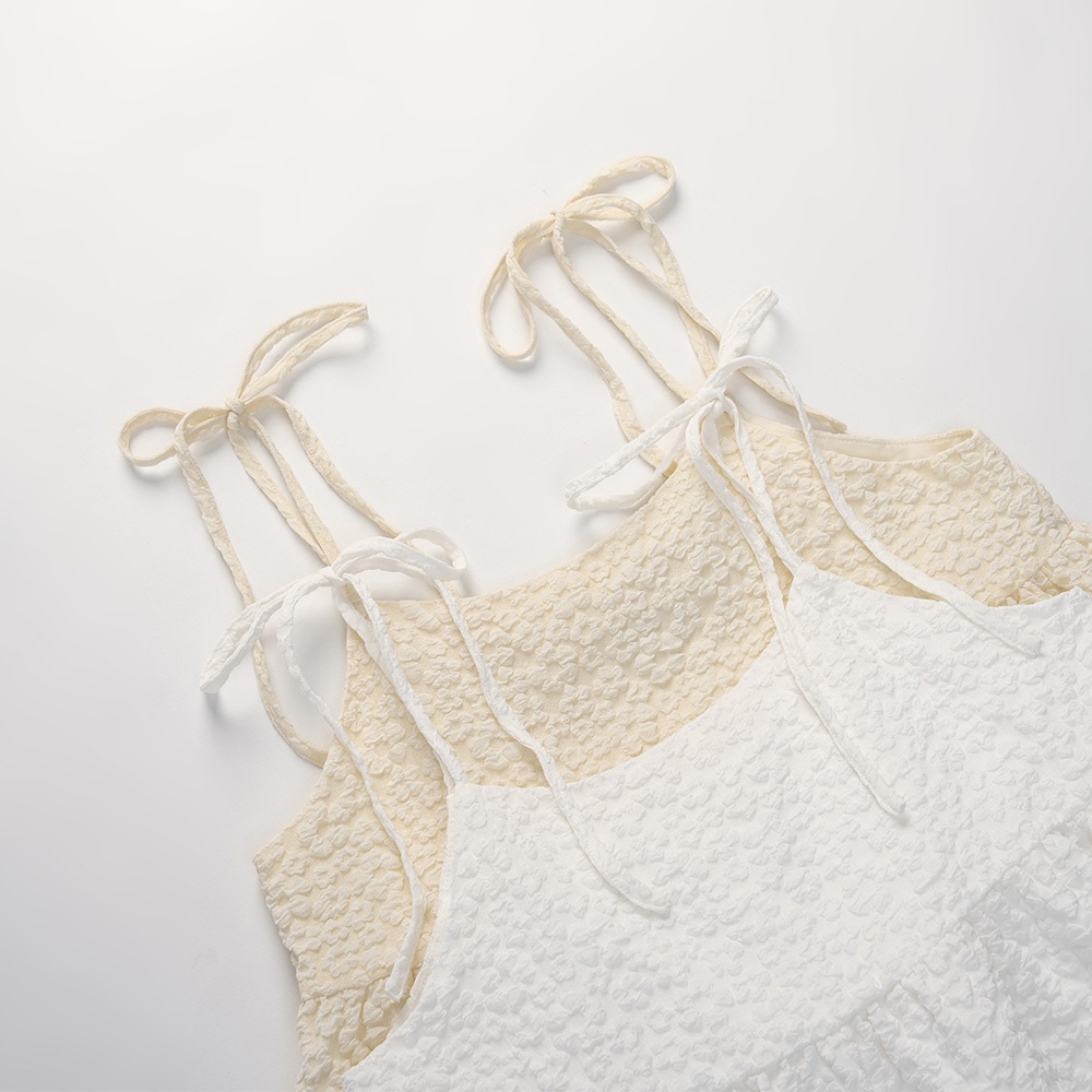 QUEENSHOP_ S 女裝 下擺花苞立體緹花細肩罩衫背心 兩色售 現+預 【01099044】白|黃Tanks & CamisolesQUEENSHOP