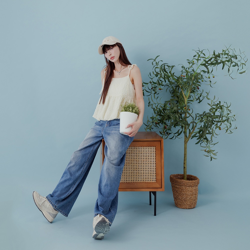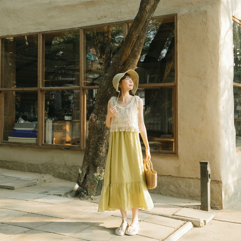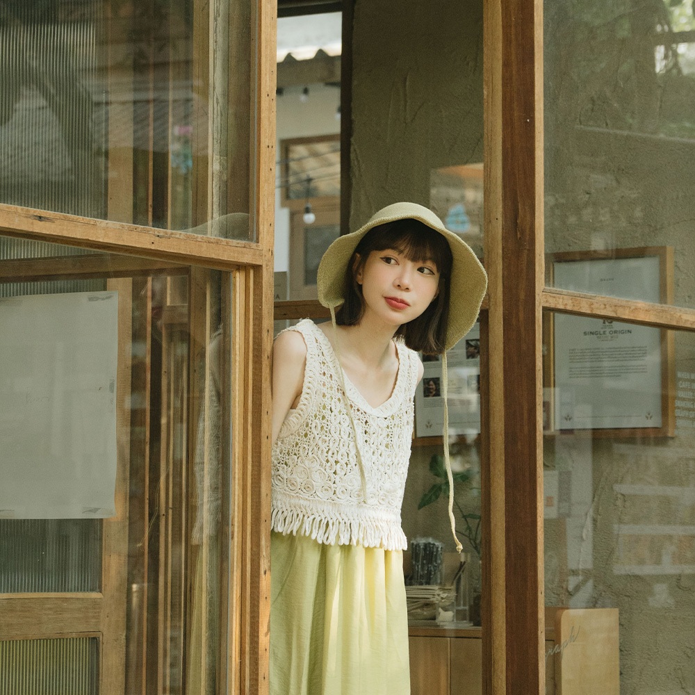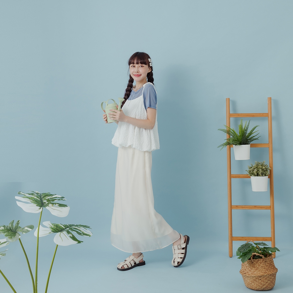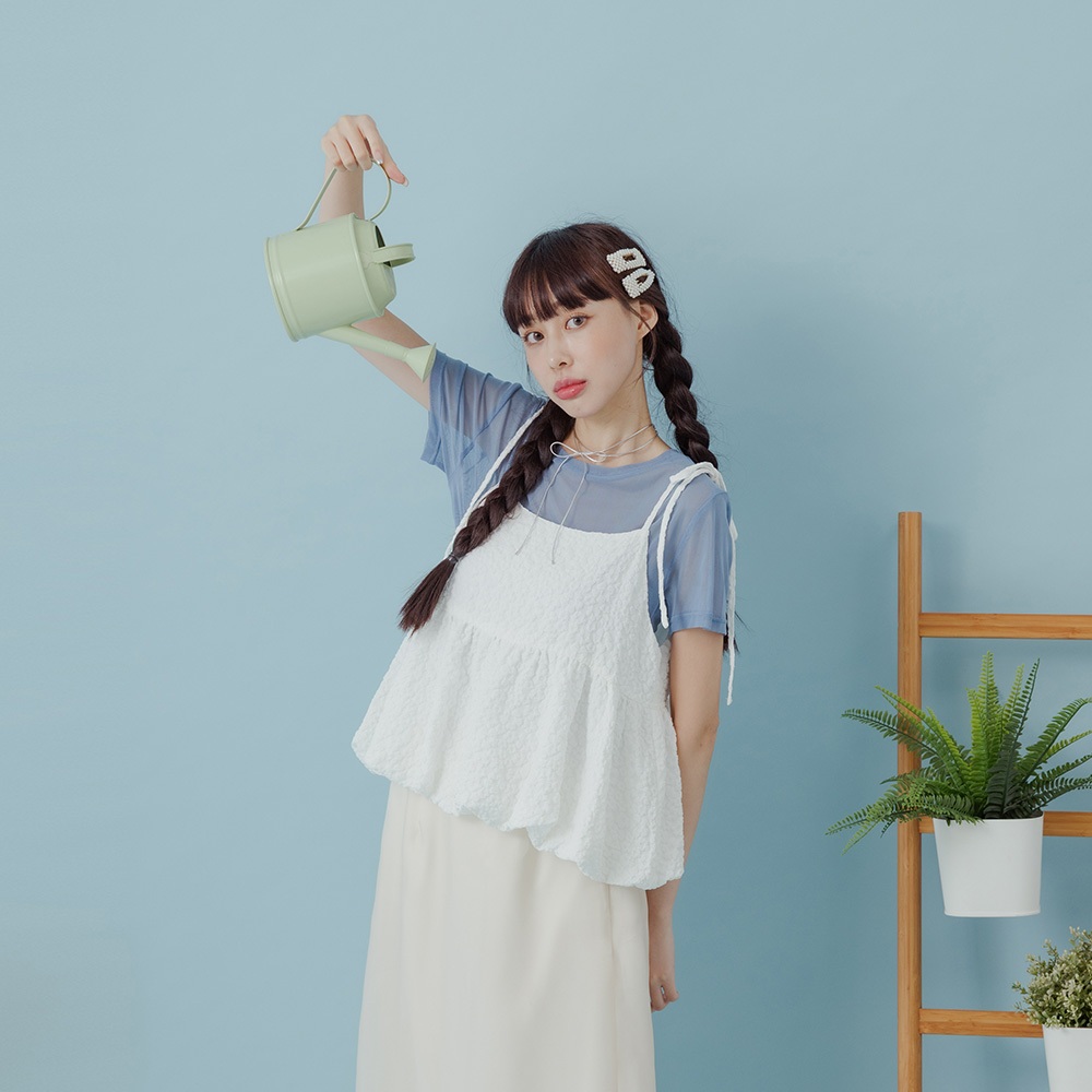 QUEENSHOP_ S 女裝 下擺花苞立體緹花細肩罩衫背心 兩色售 現+預 【01099044】白|黃Tanks & CamisolesQUEENSHOP