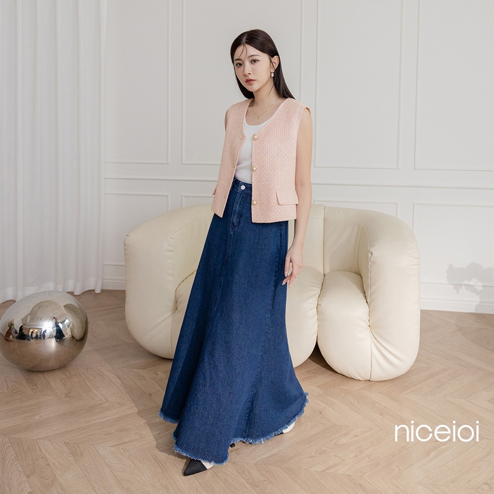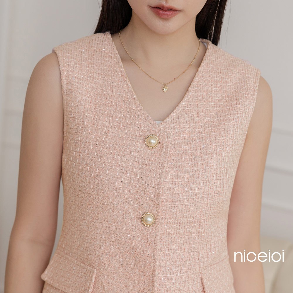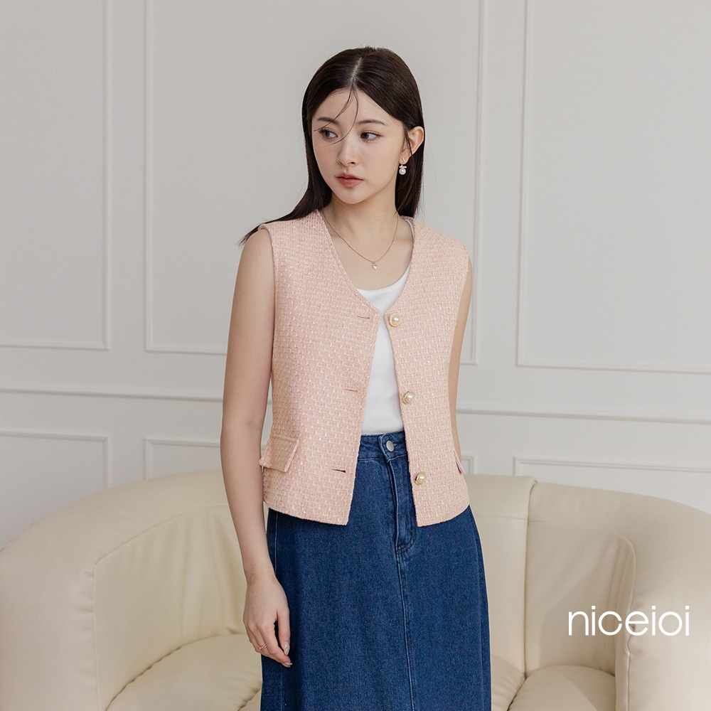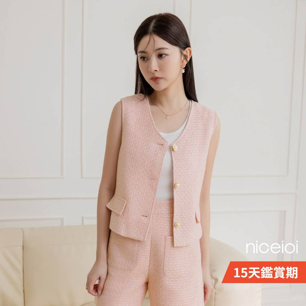 niceioi【特惠】草莓牛奶小香織紋無袖珍珠排釦背心 女裝粉,L|粉,XL|粉,S|粉,MVestsniceioi 官方旗艦店