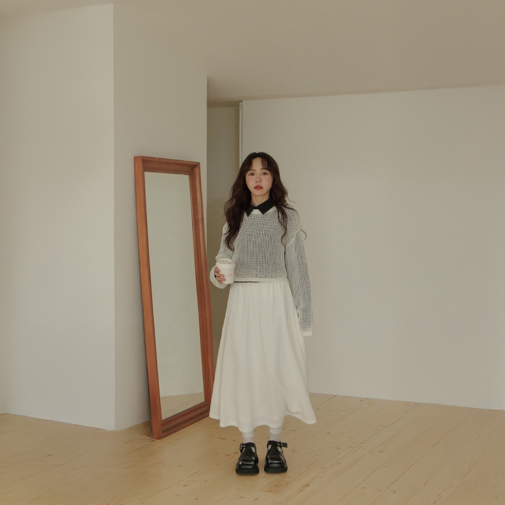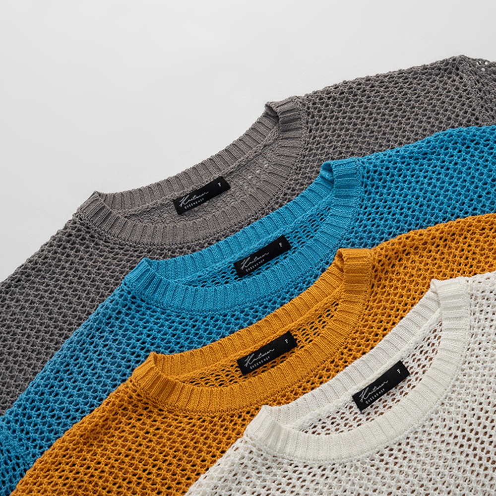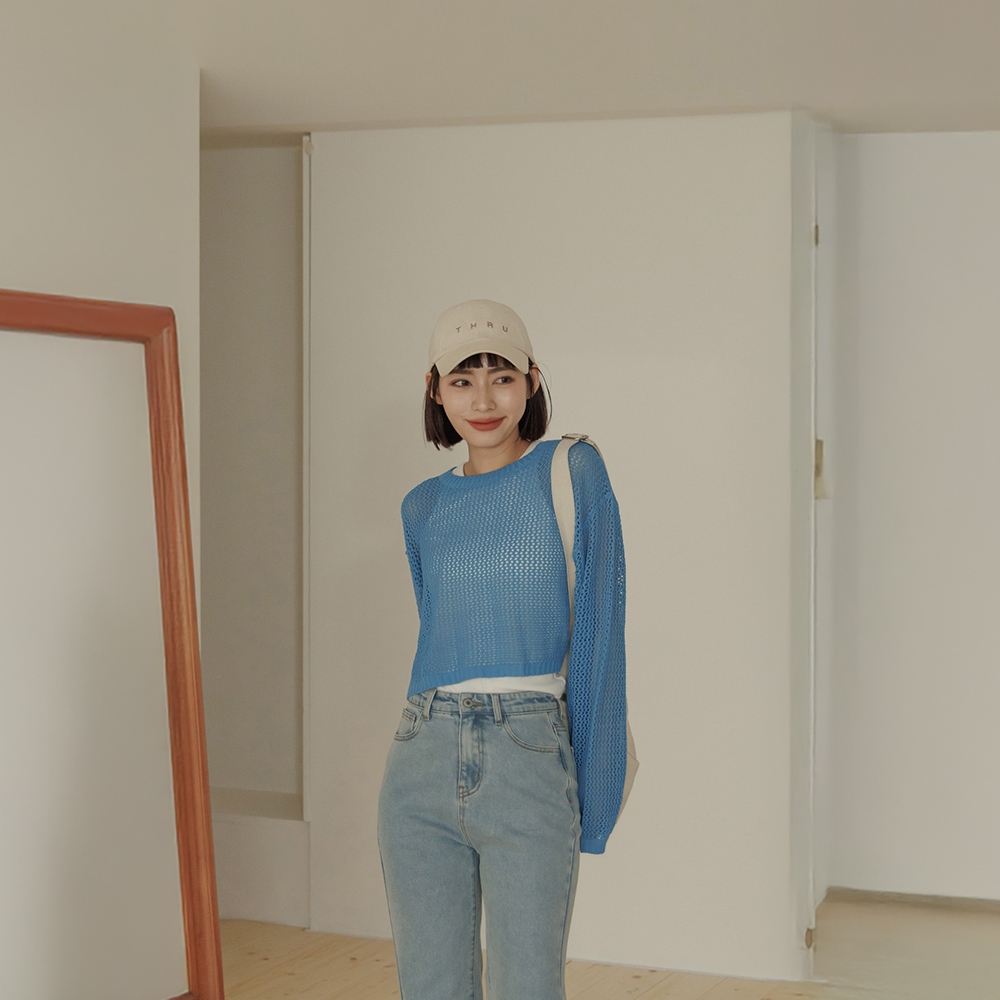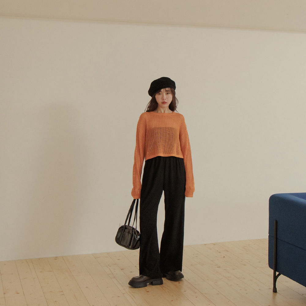 QUEENSHOP_ S 女裝 長袖 簡約鏤空洞洞針織短版上衣 四色售 現+預 【01013422】灰|藍|橘|米白QUEENSHOP