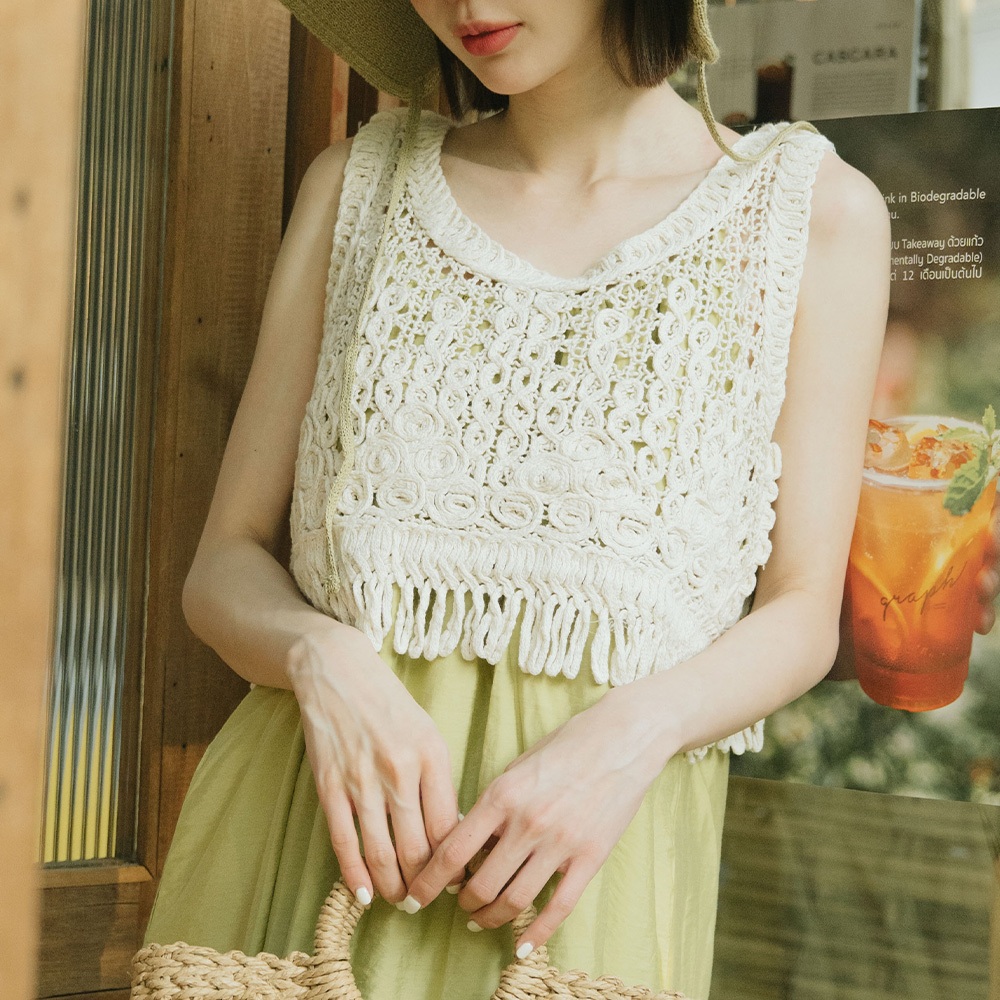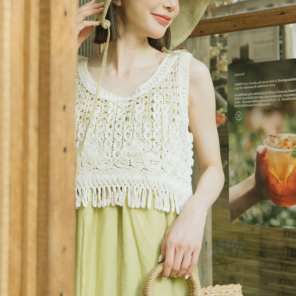 QUEENSHOP_ S 女裝 下擺流蘇編織短版背心罩衫 現+預【01013448】
