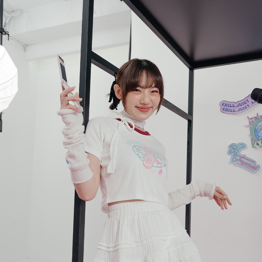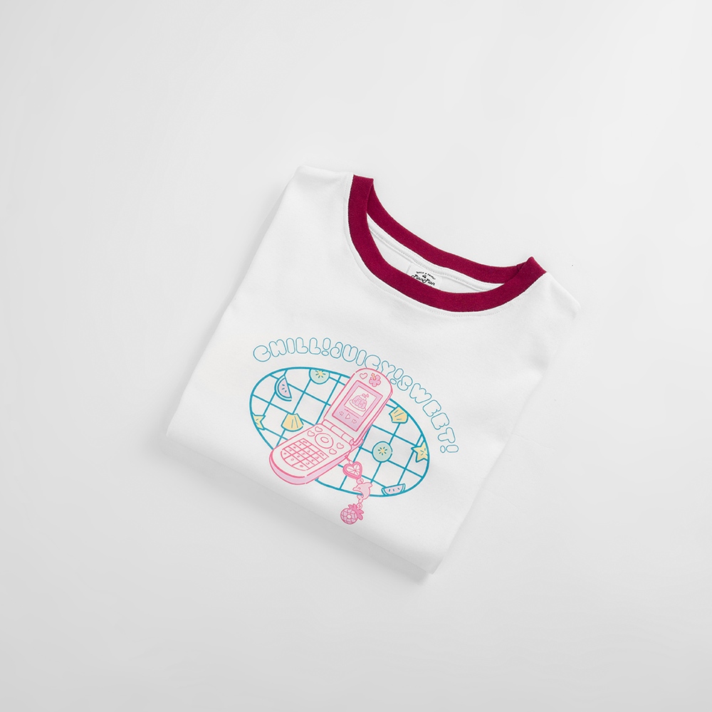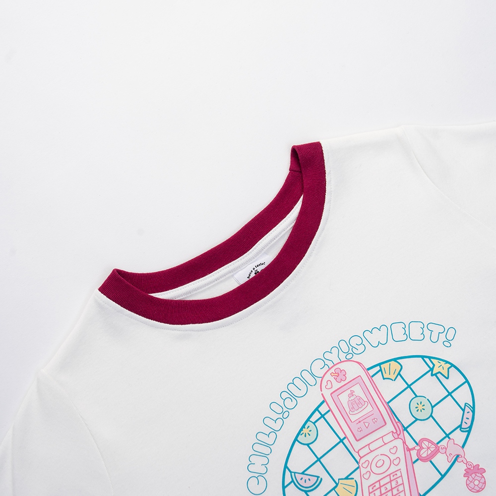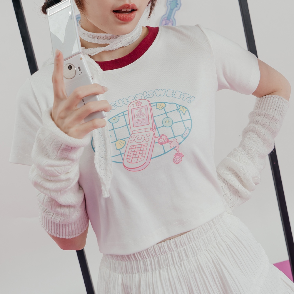 QUEENSHOP_ S 女裝 短袖 MIT 寬片片 領邊撞色手機印圖短版上衣 現+預 【01190213】依賣場T-shirtsQUEENSHOP