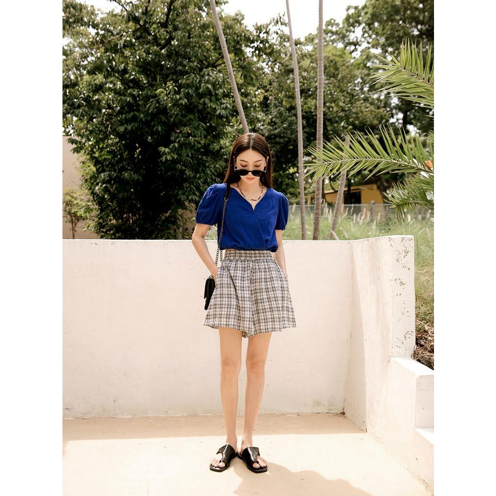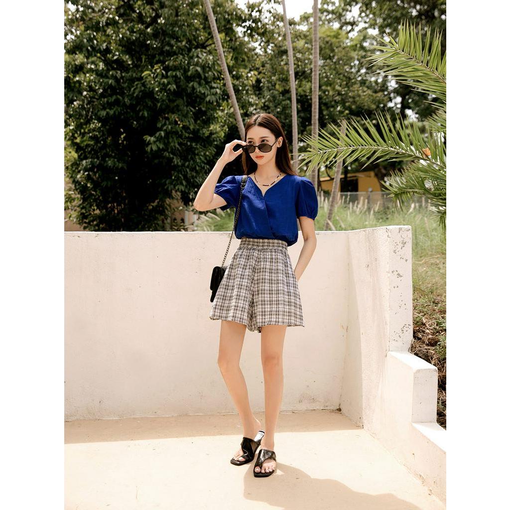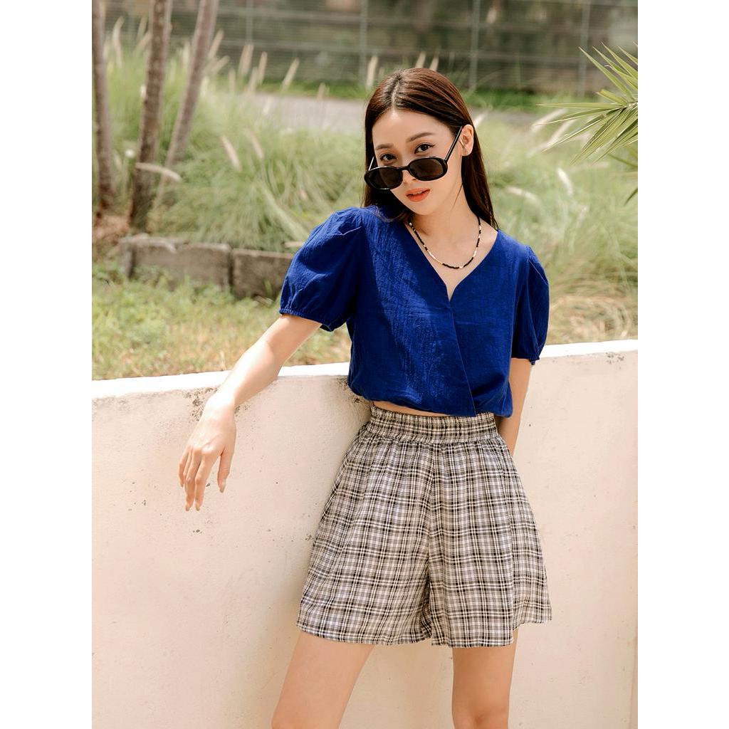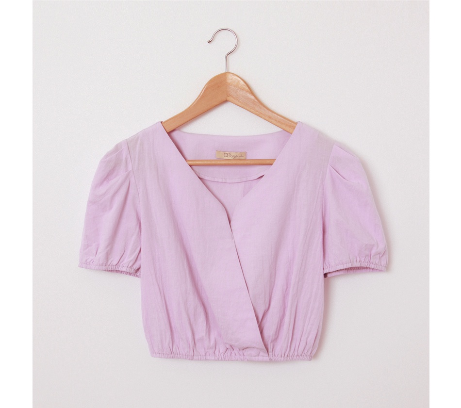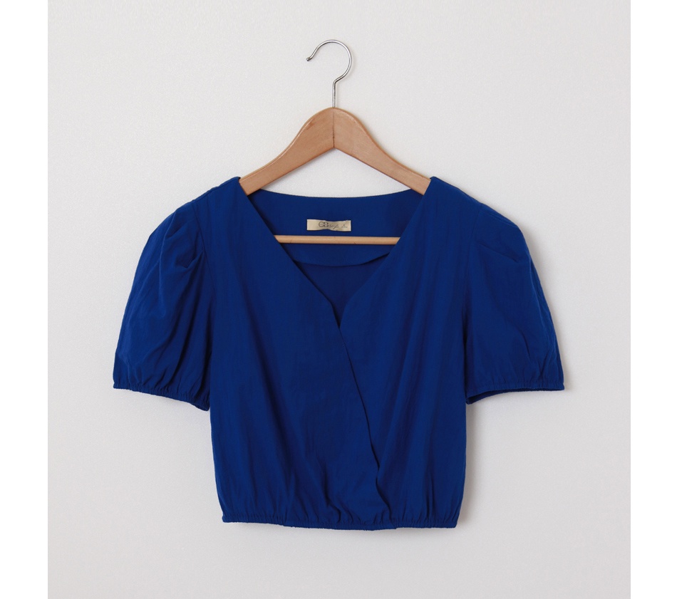 OB嚴選 純棉素色V領短版澎袖上衣 《AB17351》大尺碼/現貨/女裝寶藍,L|寶藍,XL|粉紫,S|粉紫,XL|粉紫,2L|寶藍,S|寶藍,M|寶藍,2L|粉紫,M|粉紫,LT-shirtsOB嚴選官方旗艦店