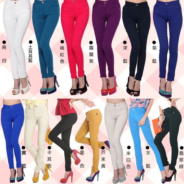 RHJEANS / 褲頭超彈力繽紛新時尚顯瘦長褲 彈性褲 女 顯瘦褲 百搭桃紅|深藍|寶藍|卡其|黑|白|土耳其藍|玫紅|羅蘭紫|紫藍|水藍|芥末黃|米白|翡翠綠RH JEANS官方旗艦店