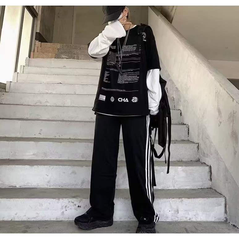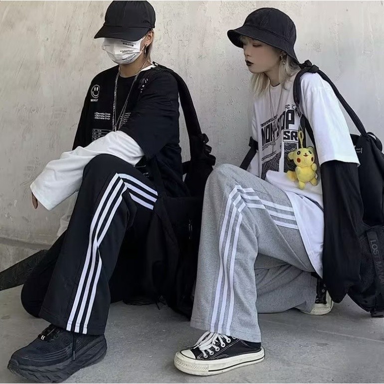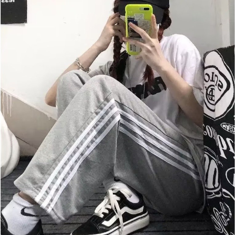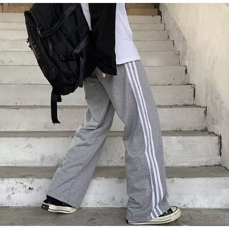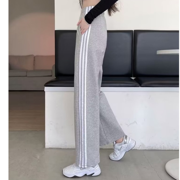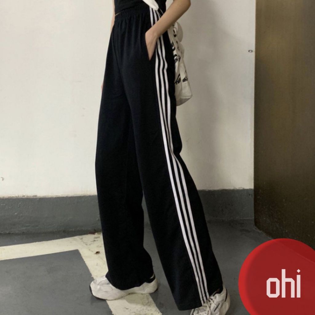 【ohi】限時下殺 韓版寬鬆闊腿褲顯瘦直筒褲休閒長褲 寬褲 高腰條紋拼色褲子 女長褲 氣質百搭褲子BPG32灰色,M|灰色,L|灰色,3XL|黑色,2XL|黑色,3XL|灰色,XL|灰色,2XL|黑色,M|黑色,L|黑色,XLPantsOHI衣著