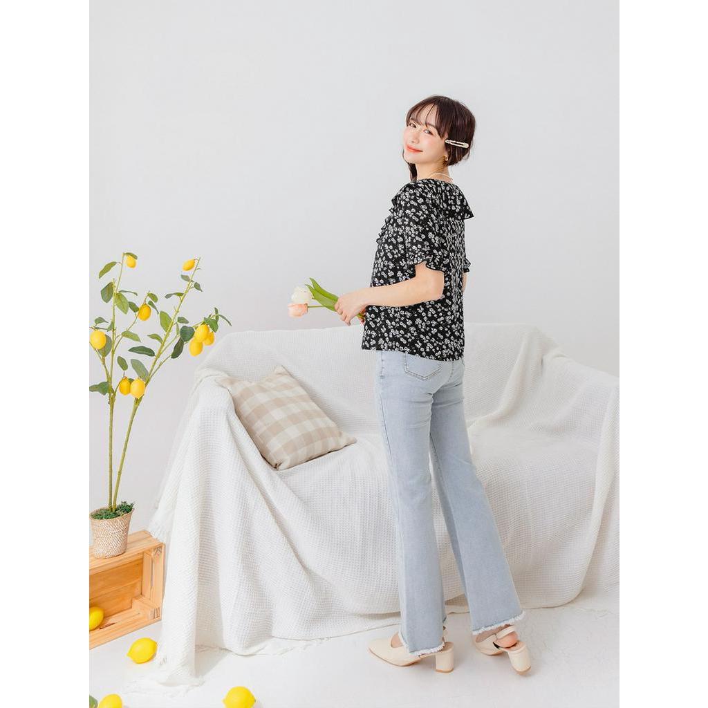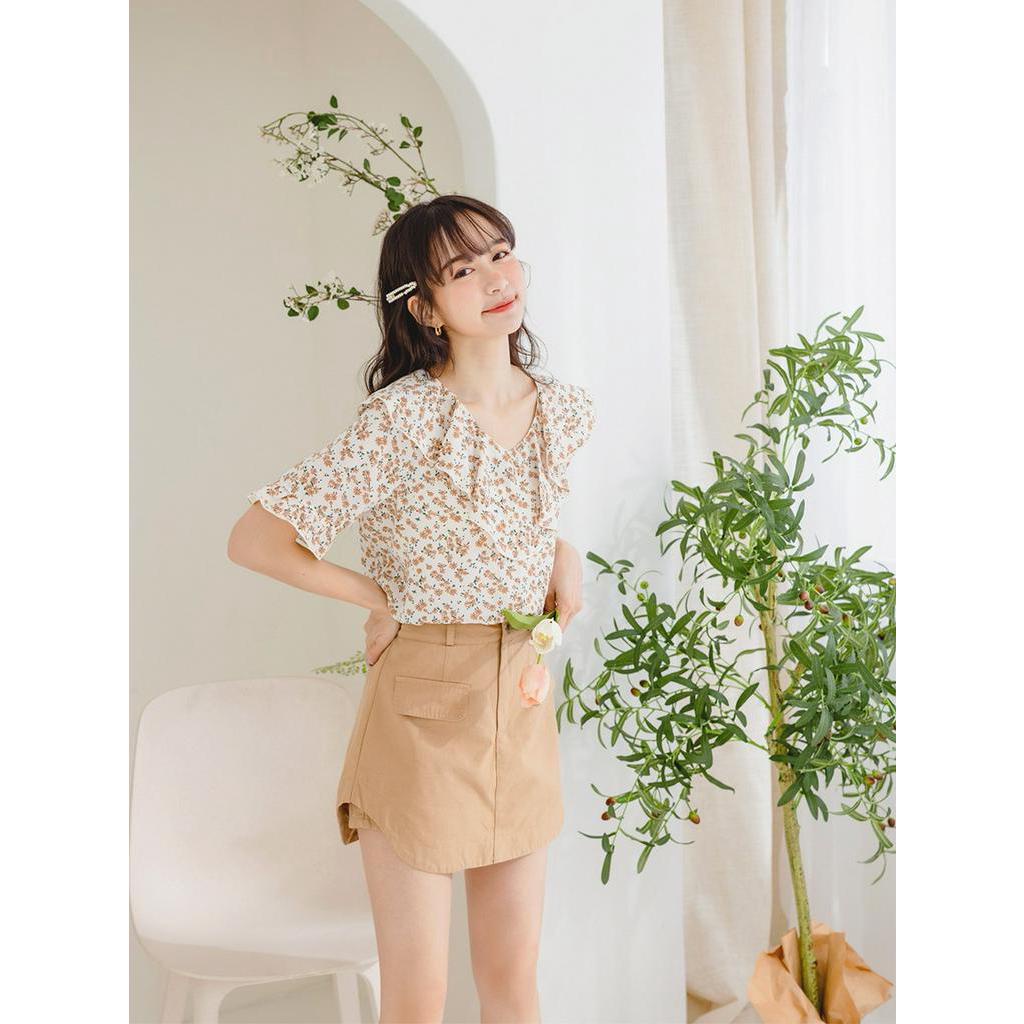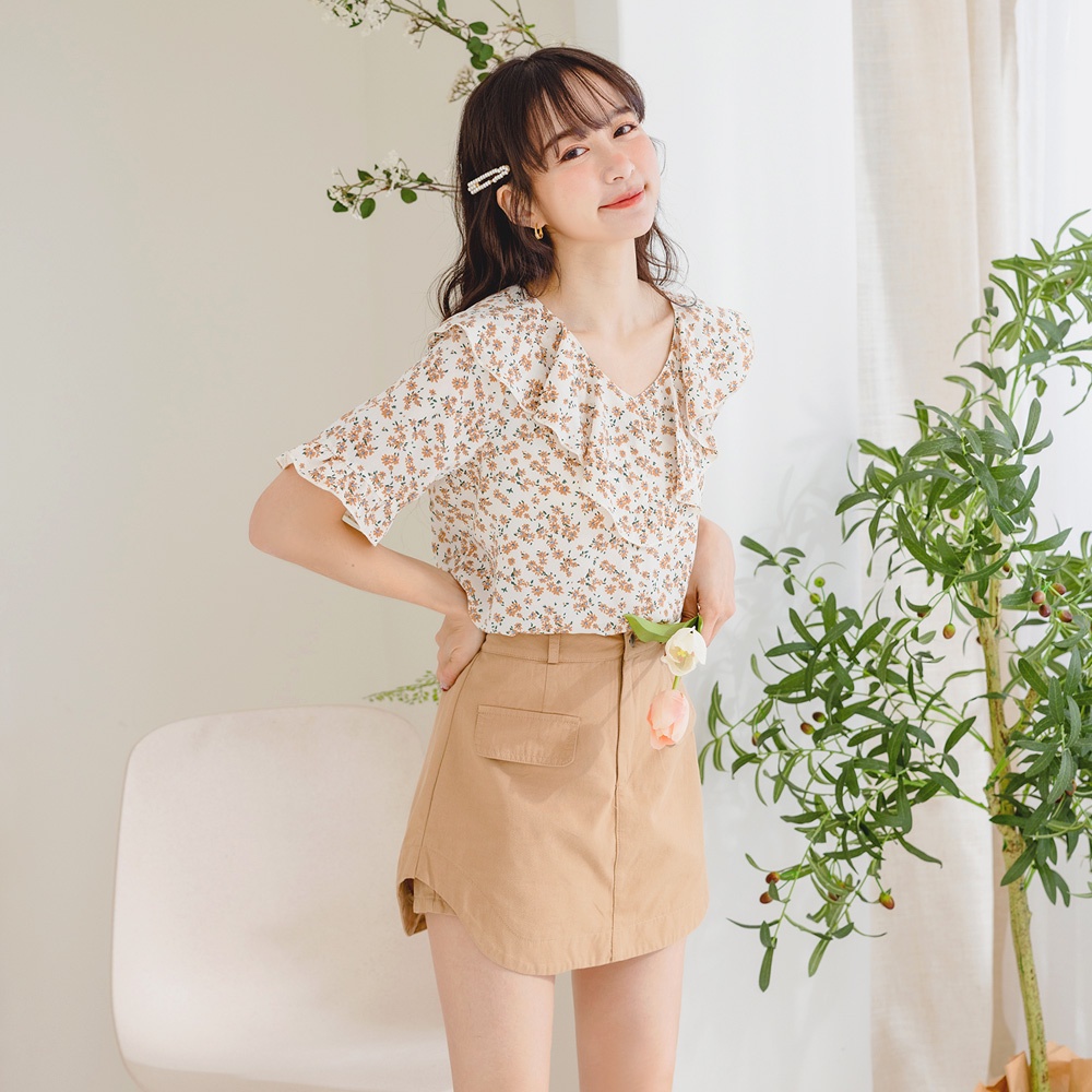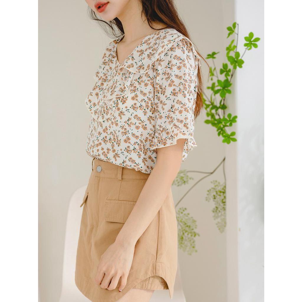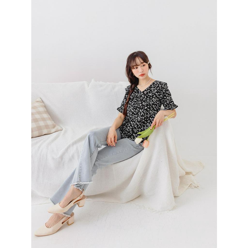 OB嚴選 小V臉.V領碎花荷葉造型上衣 《AB18269》大尺碼/現貨/女裝黑,3L|白,L|白,M|白,XL|白,2L|白,3L|黑,S|黑,M|黑,L|白,S|黑,2L|黑,XLT-shirtsOB嚴選官方旗艦店